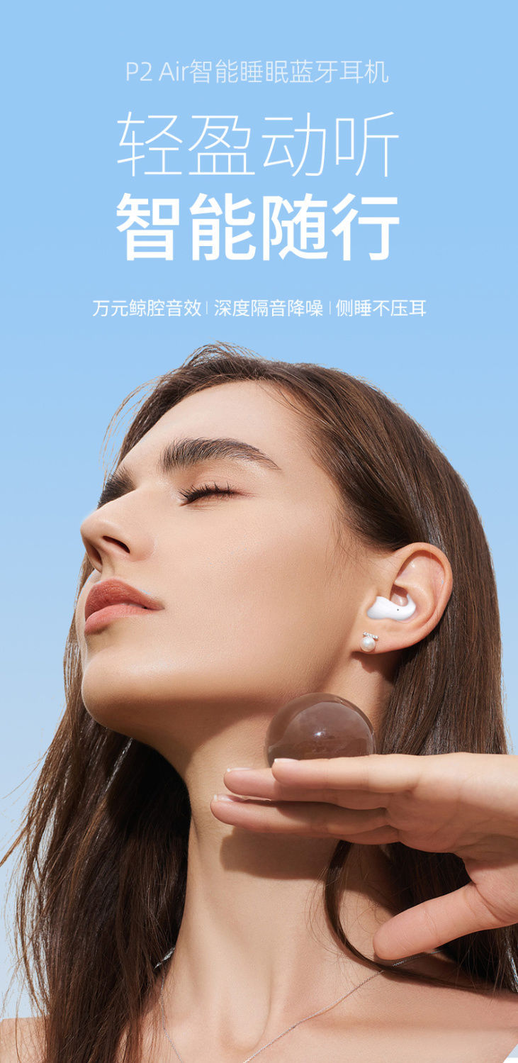 P2 개인 모델 국경 간 수면 블루투스 헤드셋 측면 수면 경량 무선 바이노럴 보이지 않는 미니 긴 배터리 수명 비감각 착용스토어 가기