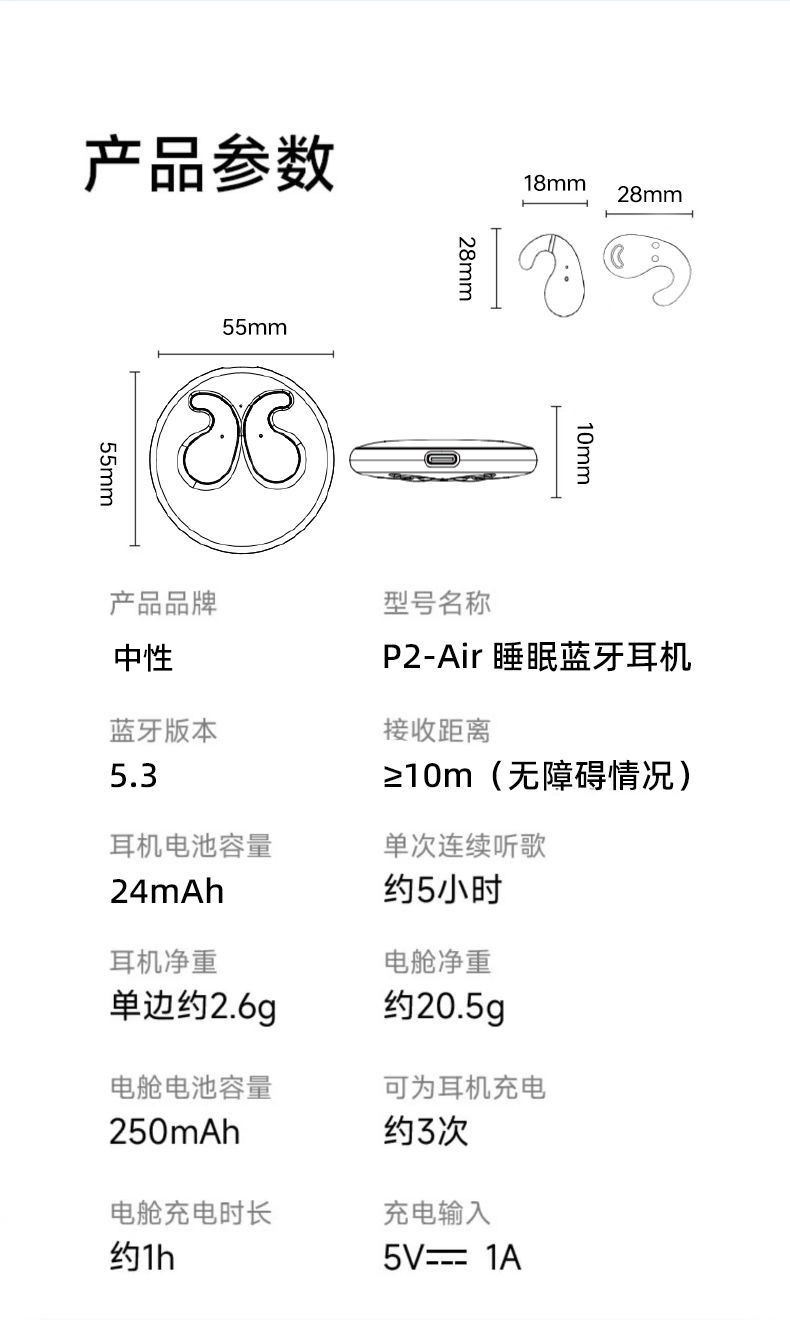 P2 개인 모델 국경 간 수면 블루투스 헤드셋 측면 수면 경량 무선 바이노럴 보이지 않는 미니 긴 배터리 수명 비감각 착용