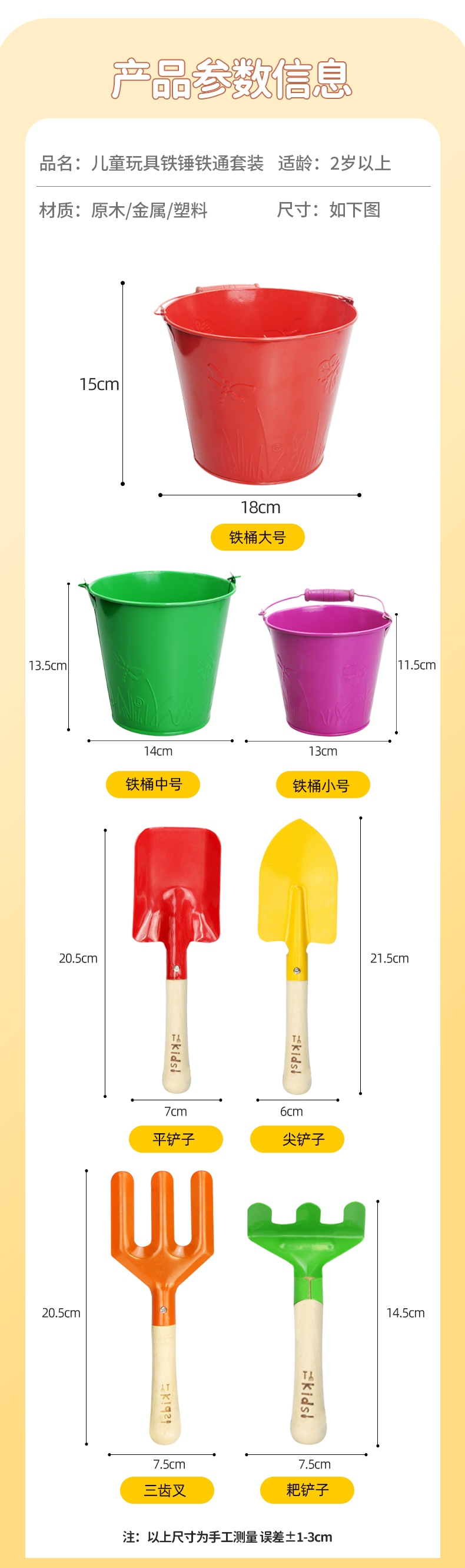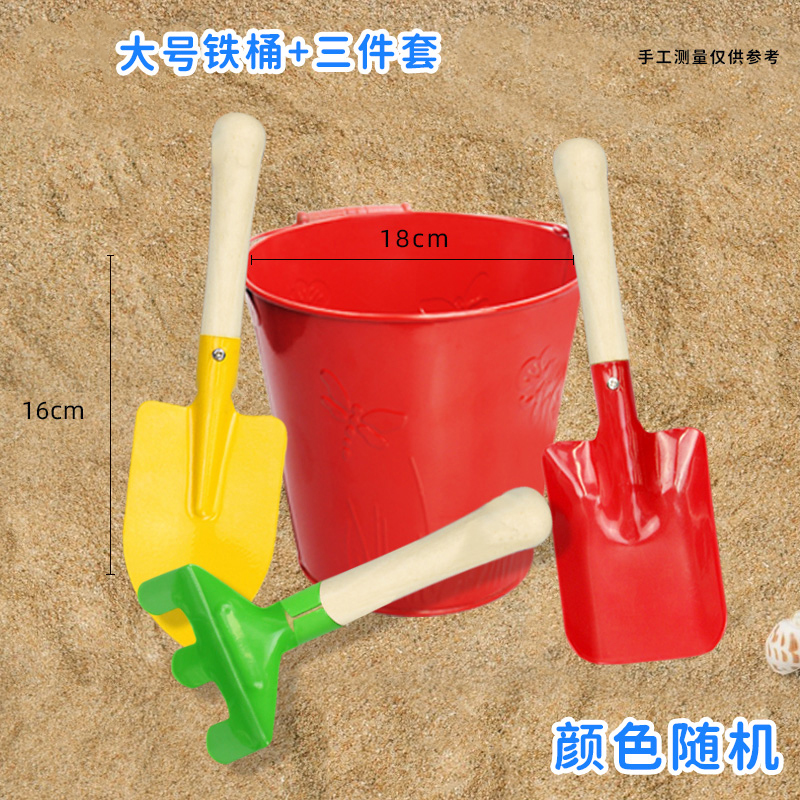 어린이 모래 조각 철 삽 철 양동이 해변 장난감 세트 아기 발굴 대형 원예 도구