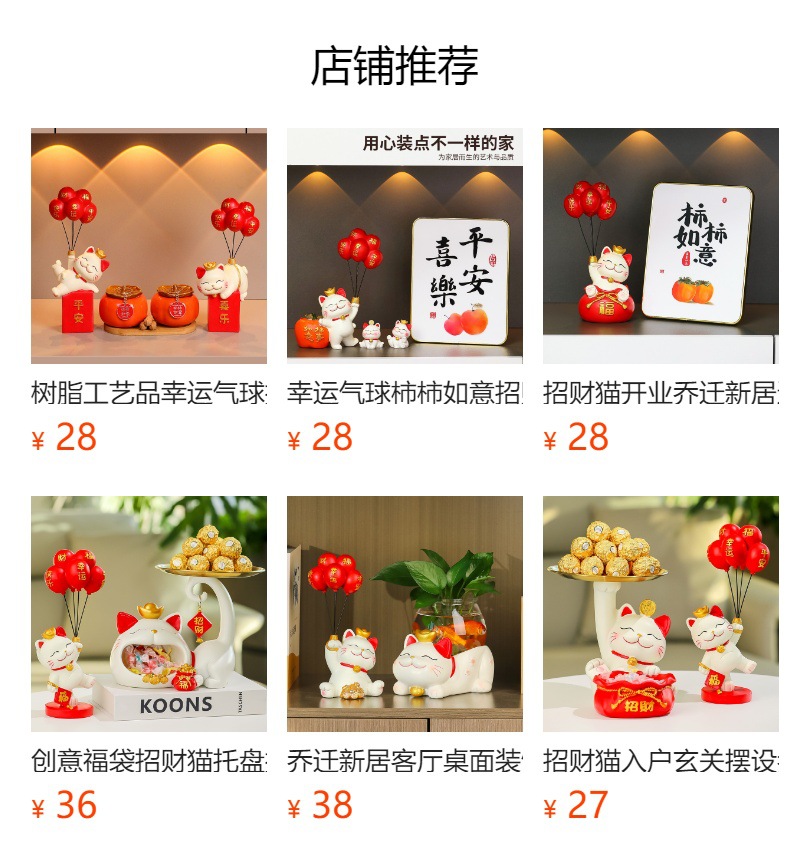 招财猫可爱手工摆件树脂工艺品礼物喜庆礼品装饰新款桌面小摆件