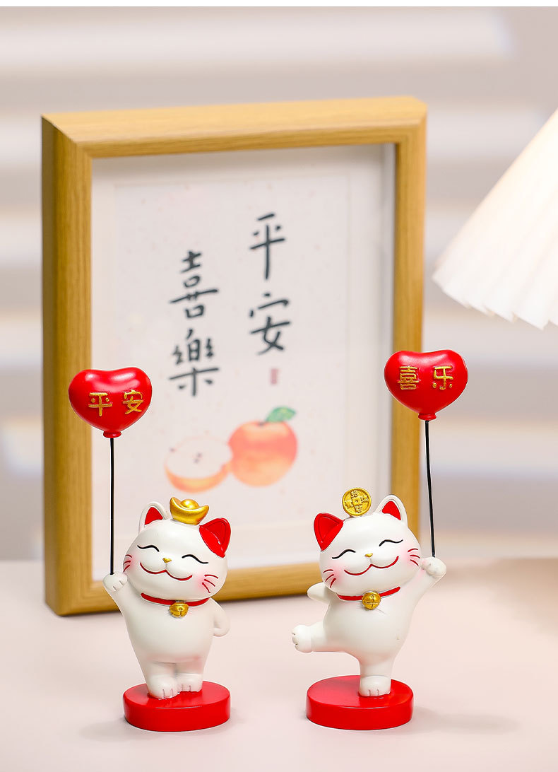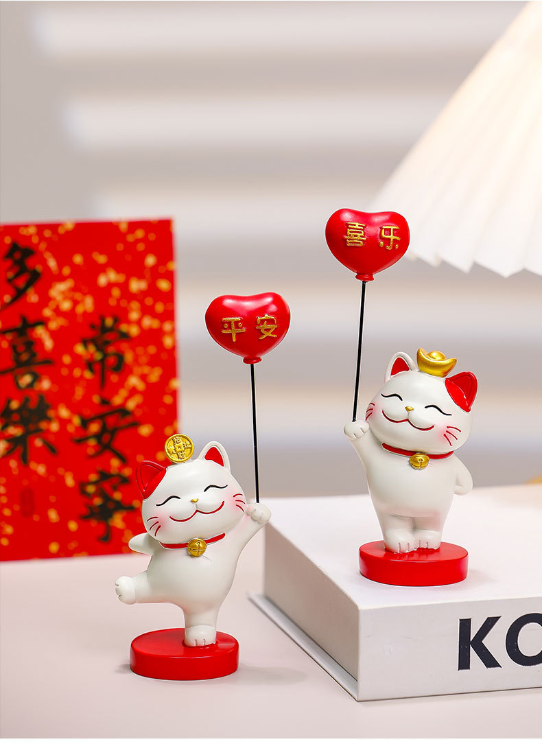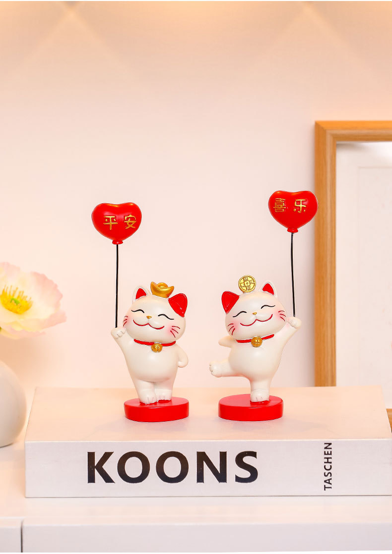 招财猫乔迁新居礼品平安幸运气球猫入户玄关电视柜摆台新房布置品
