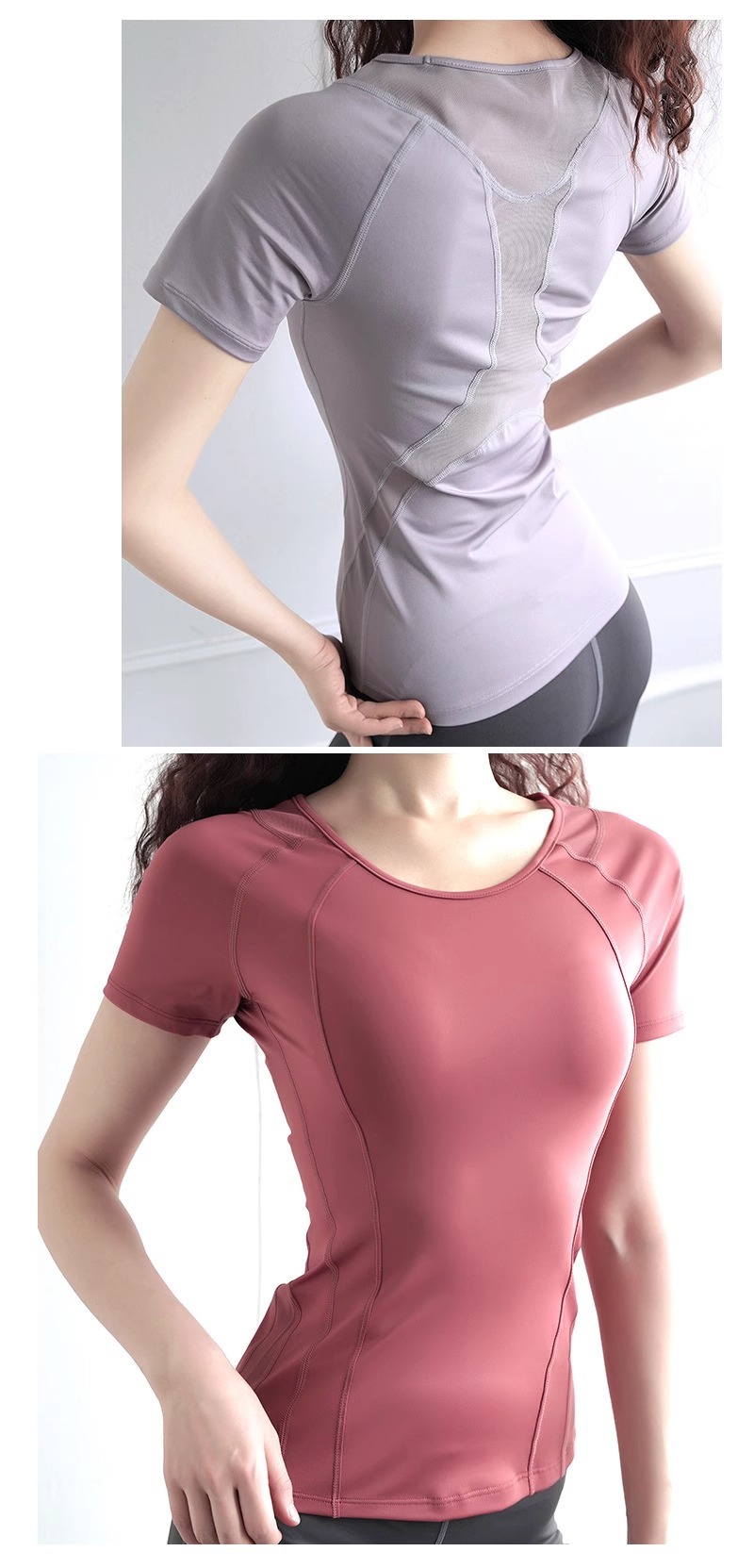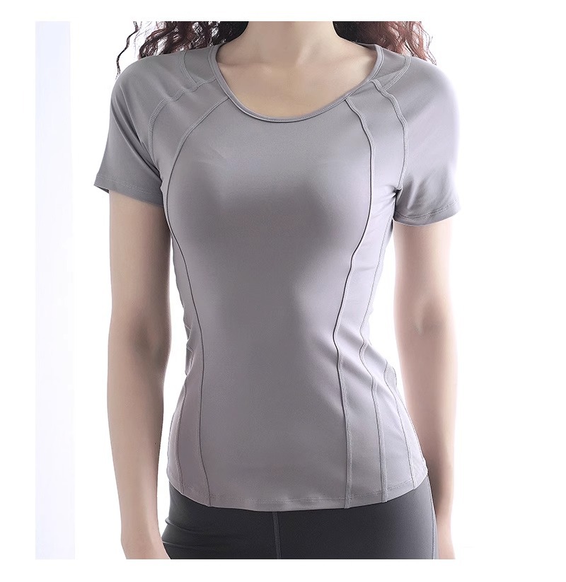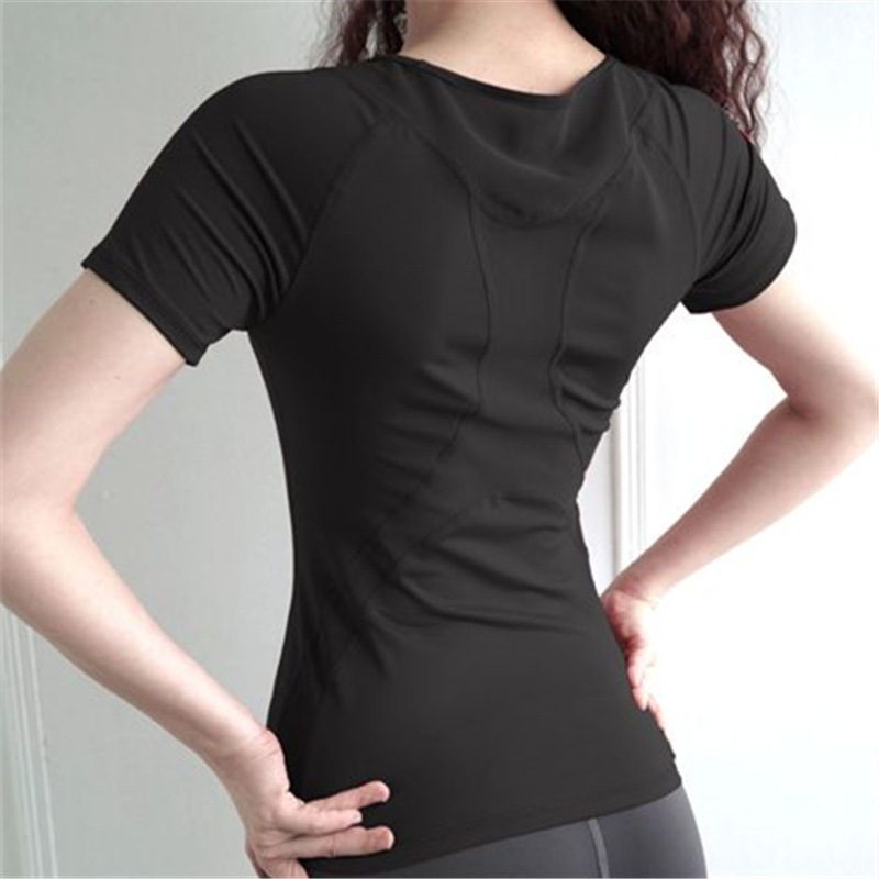 국경 간 퀵 드라이 스트레치 요가 세트 꽉 끼는 스포츠 탑 여성 여름 슬림 핏 통기성 반팔 피트니스 러닝 티셔츠스토어 가기