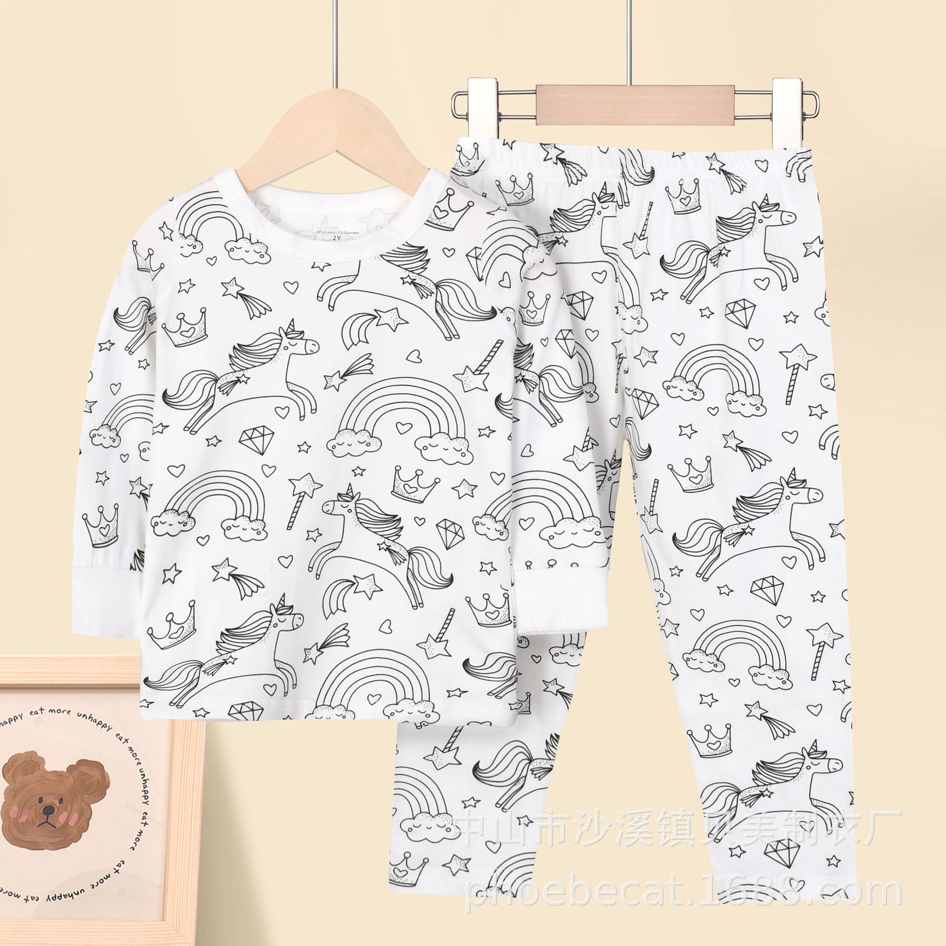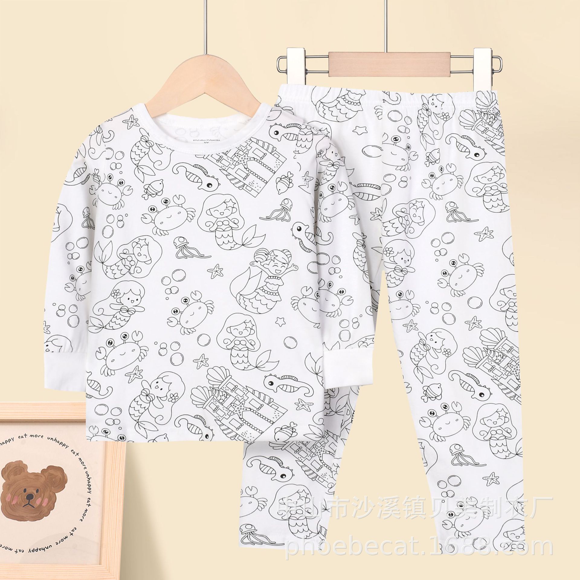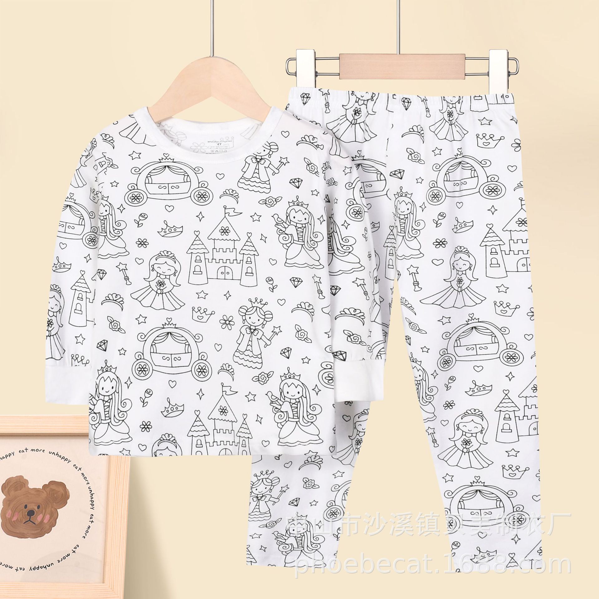 외국 무역 독립 웹사이트 라자이 면 소재 여아용 스케치 색칠 편안한 아동복 세트 재미있는 DIY 핸드페인팅 A급 그래피티
