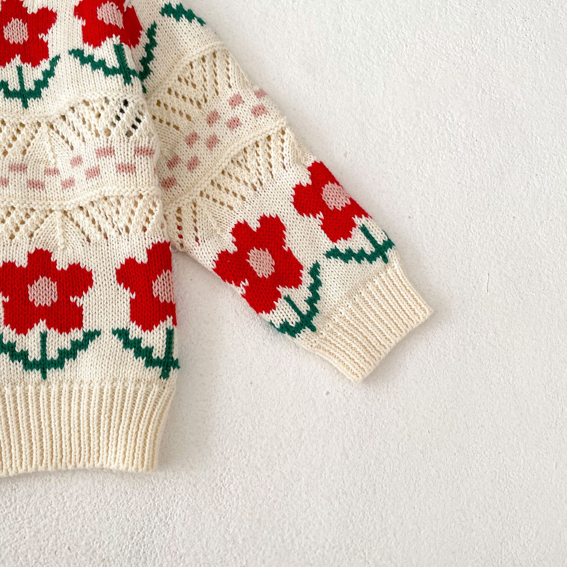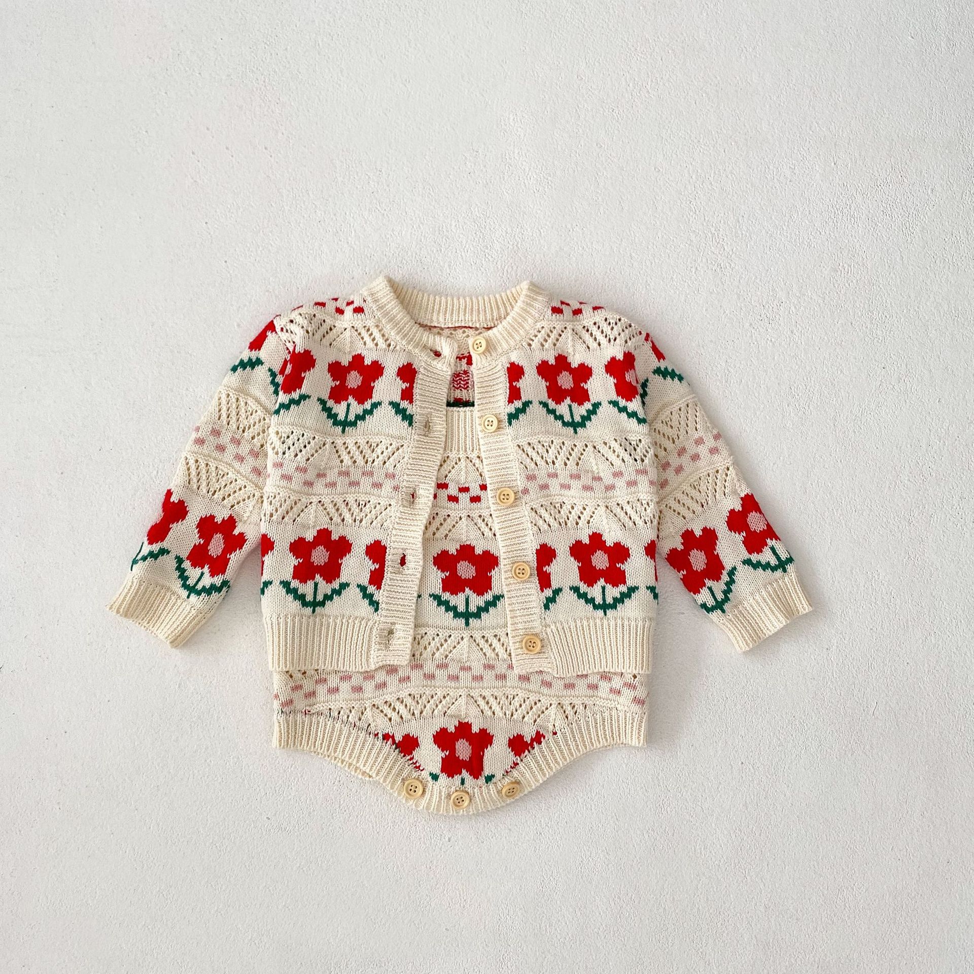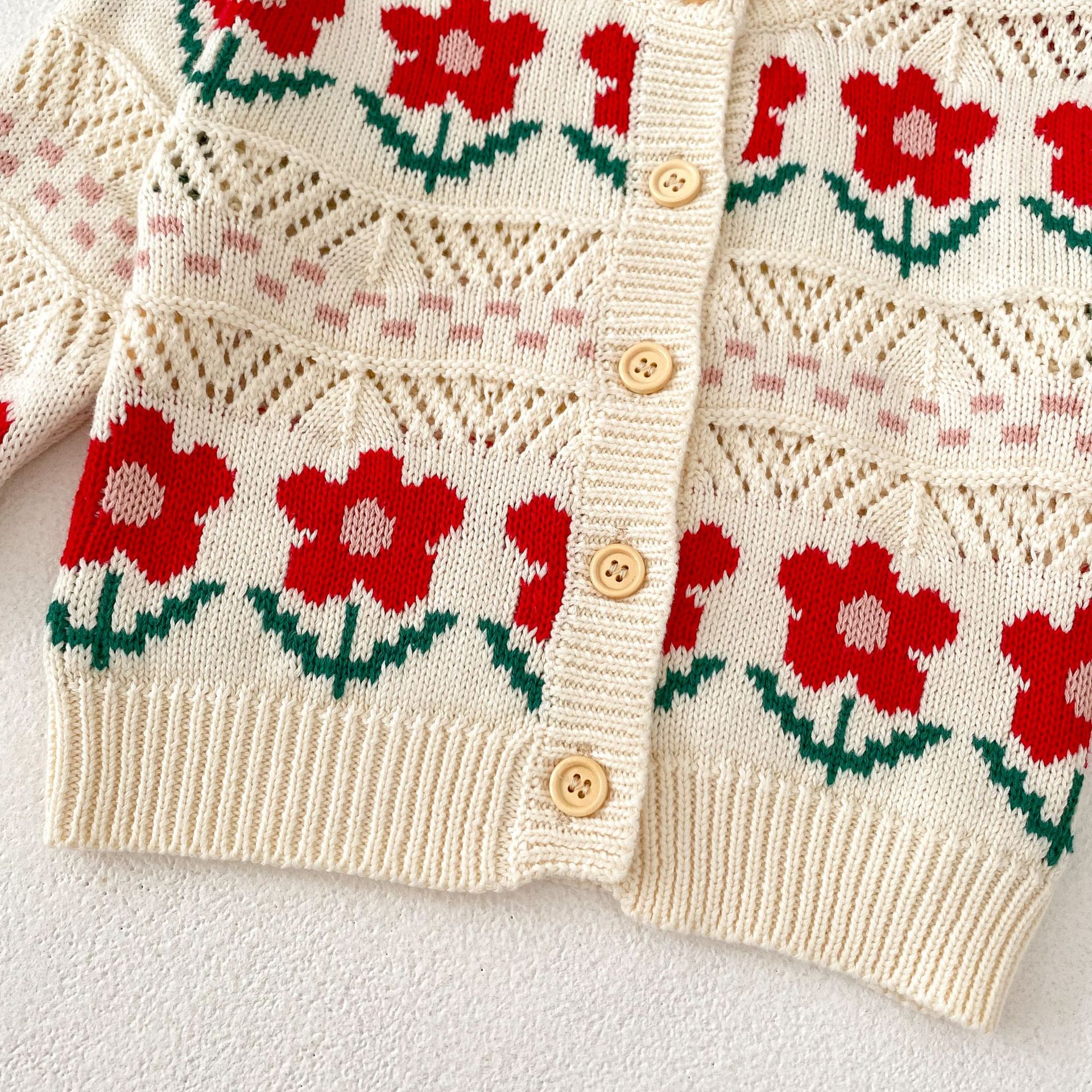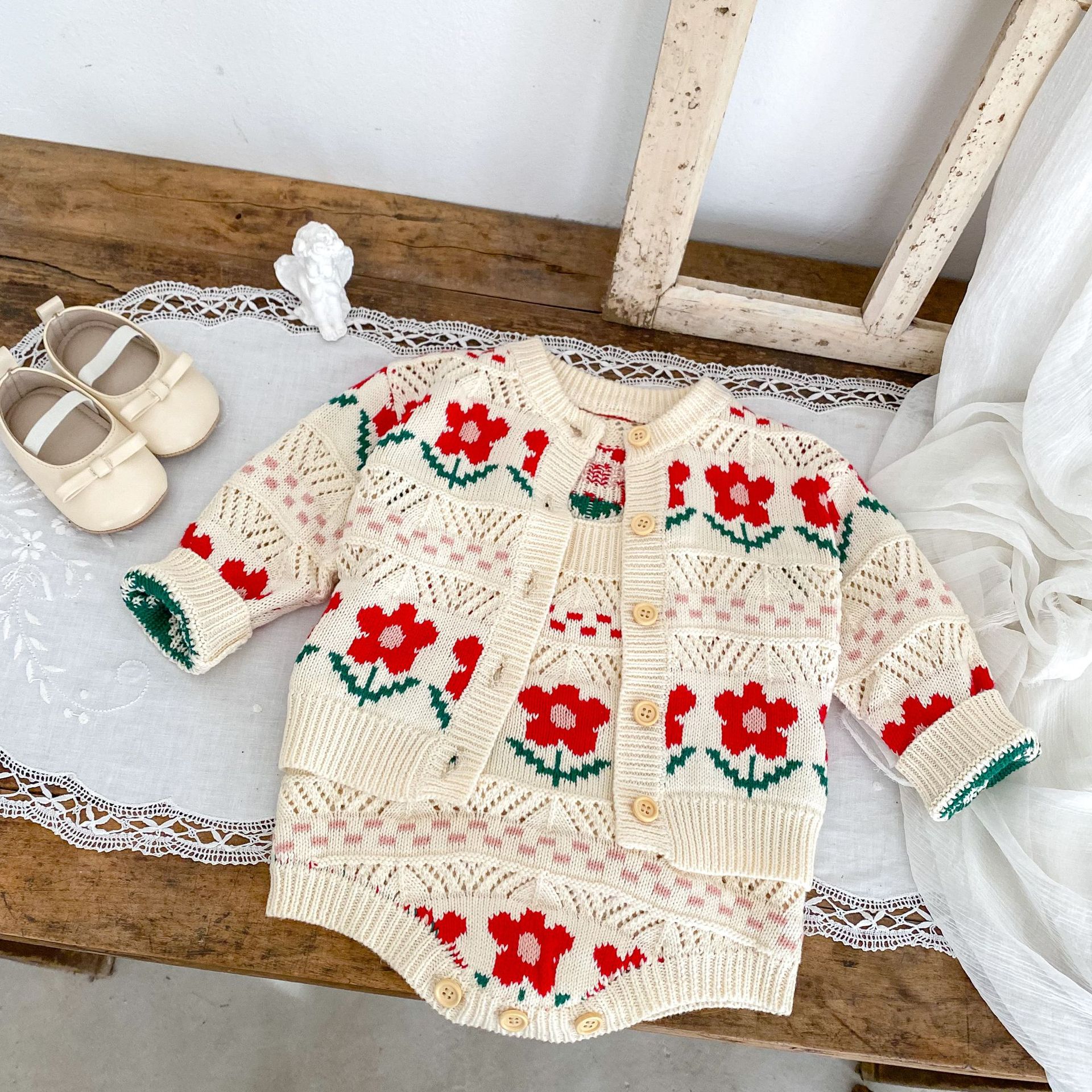 2025 가을 의류 유아 및 어린이 아기 소녀 스웨터 니트 카디건 옷 + 작은 붉은 꽃 자카드 가운 2 피스 양복스토어 가기