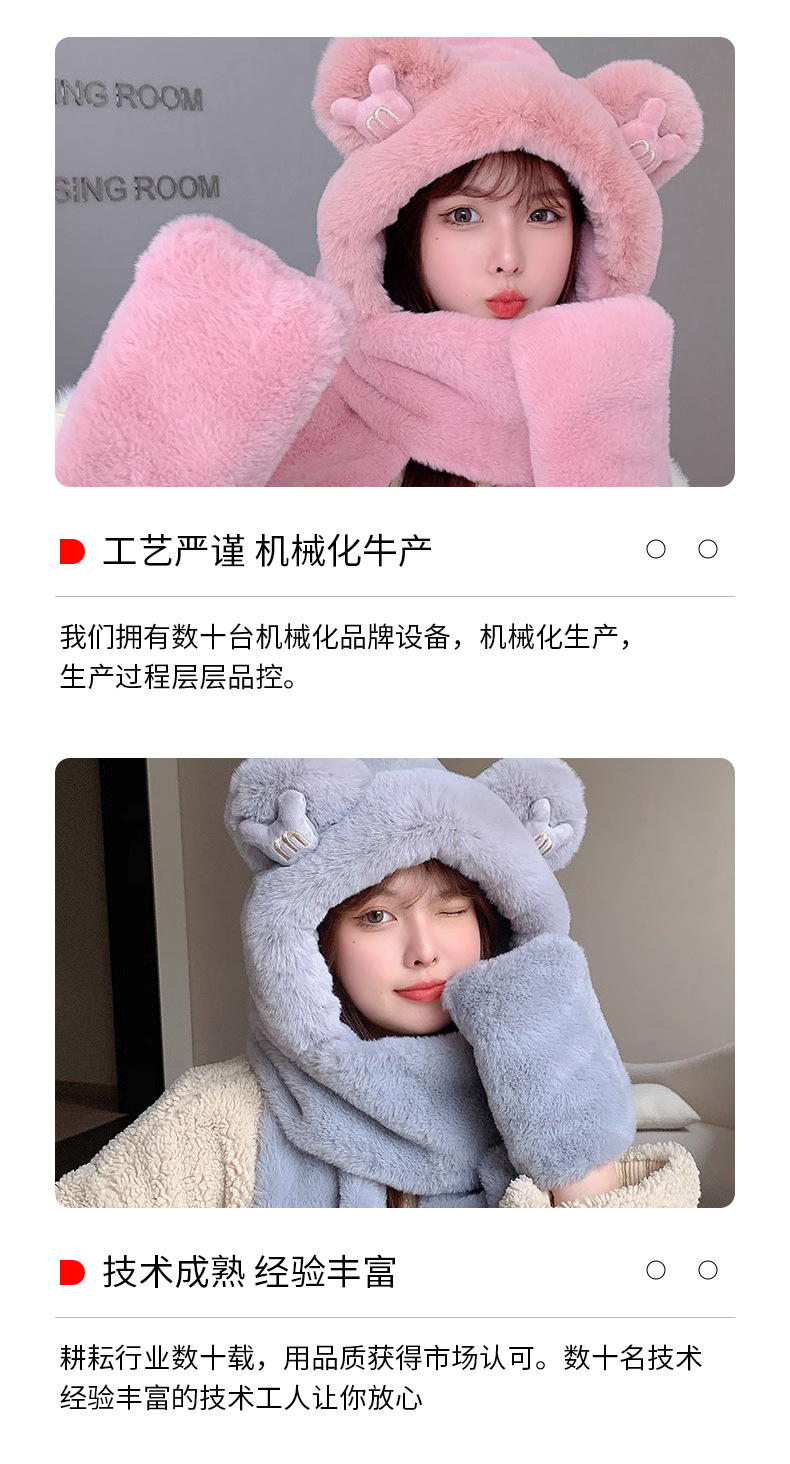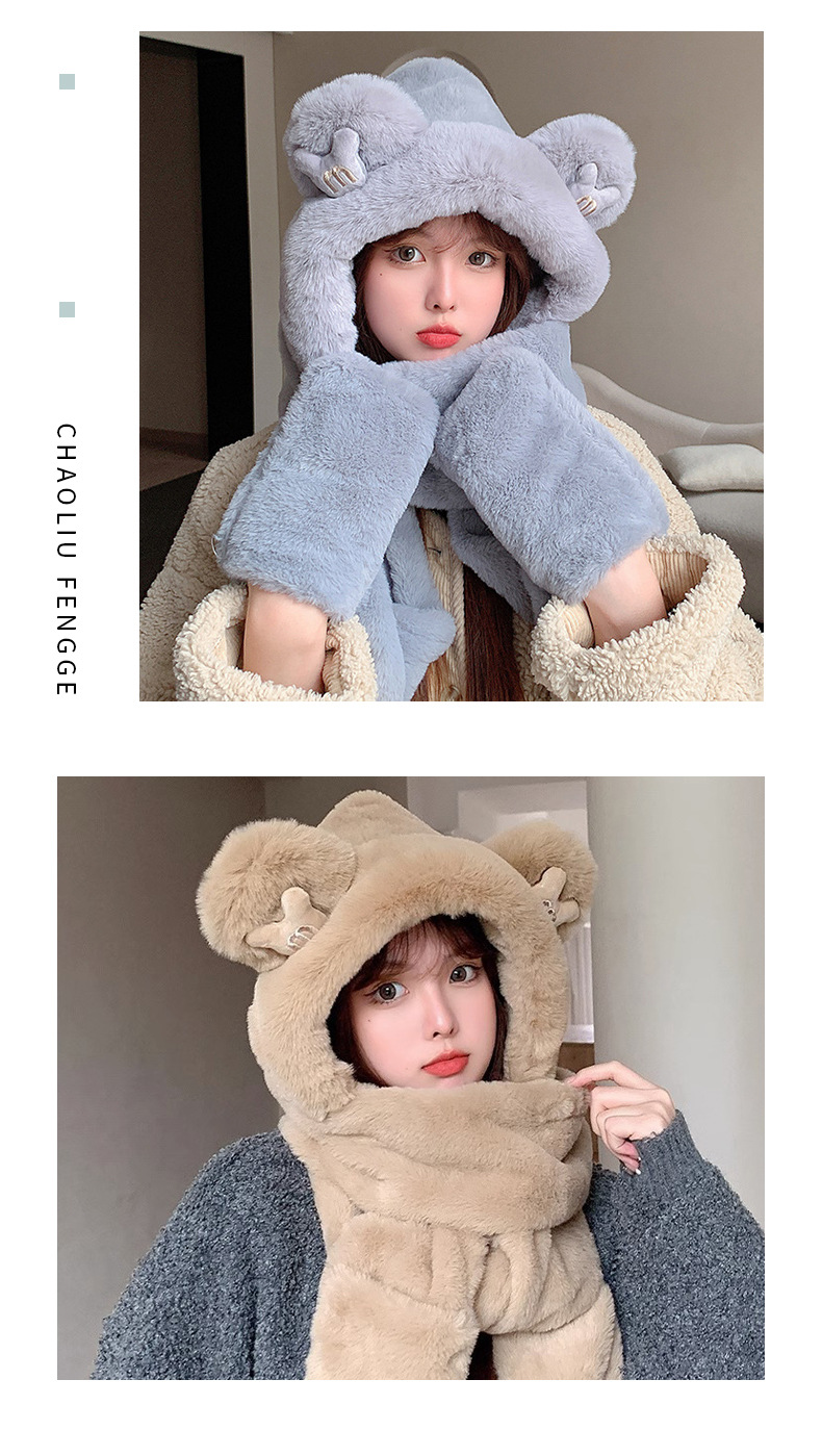 컵스 성인 모자 어린이 겨울 세 조각 귀여운 봉제 후드 스카프 원피스 두꺼운 장갑 귀 보호 스카프스토어 가기
