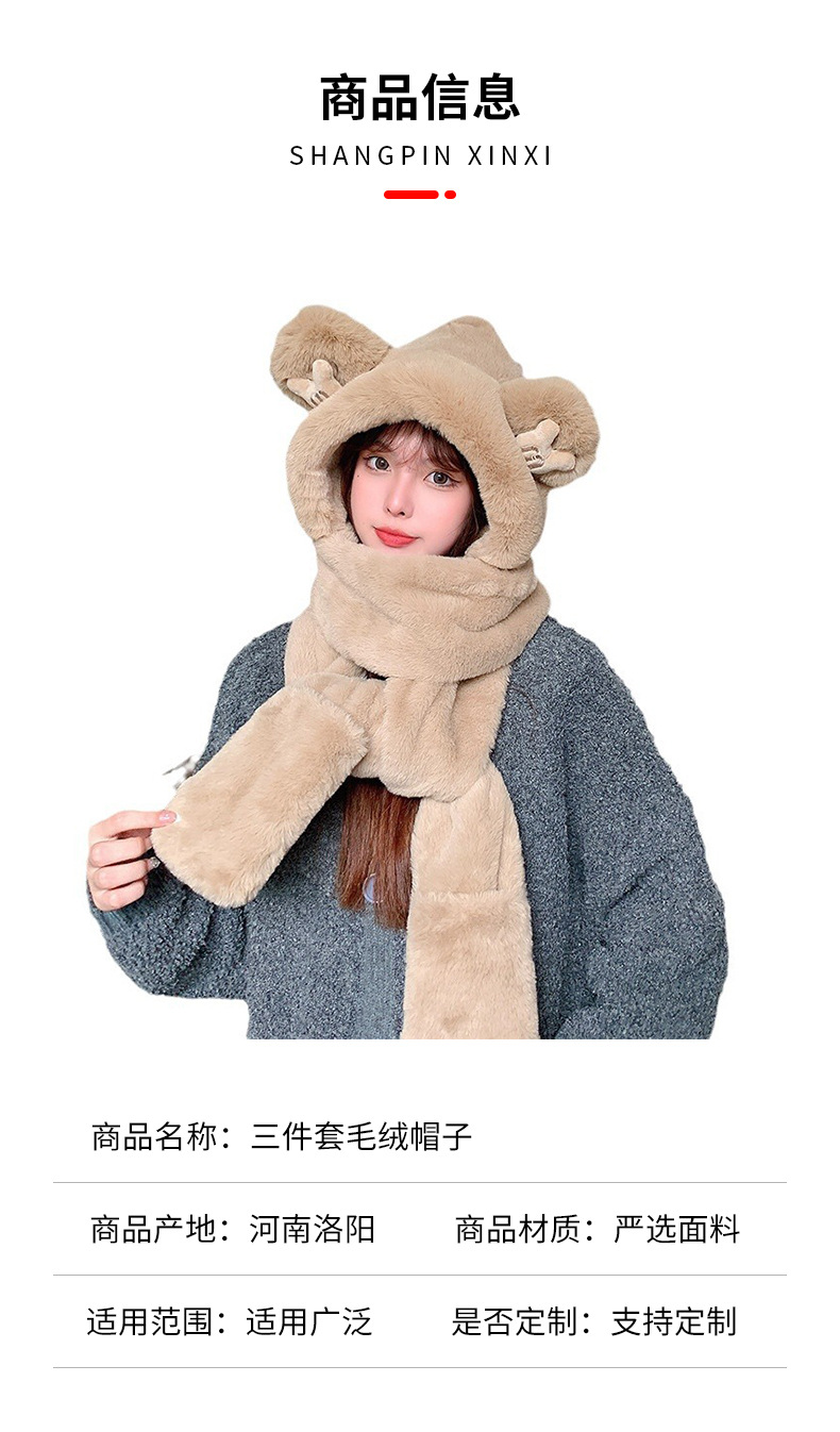 컵스 성인 모자 어린이 겨울 세 조각 귀여운 봉제 후드 스카프 원피스 두꺼운 장갑 귀 보호 스카프