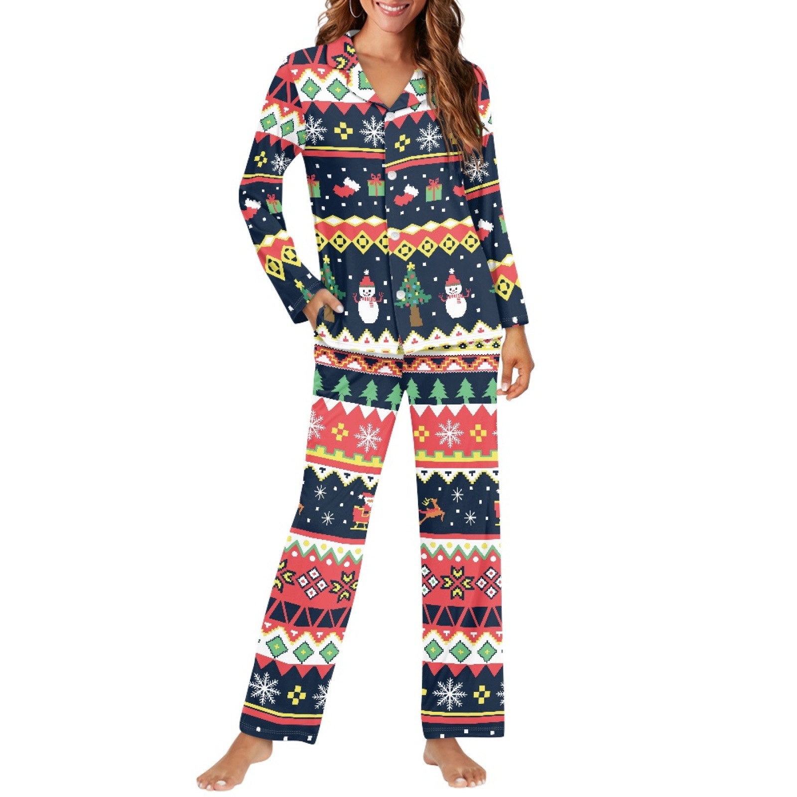 아마존 대외 무역 국경 성인 느슨한 잠옷 크리스마스 트리 눈사람 인쇄 파자마 셔츠 바지 최소 주문 세트스토어 가기