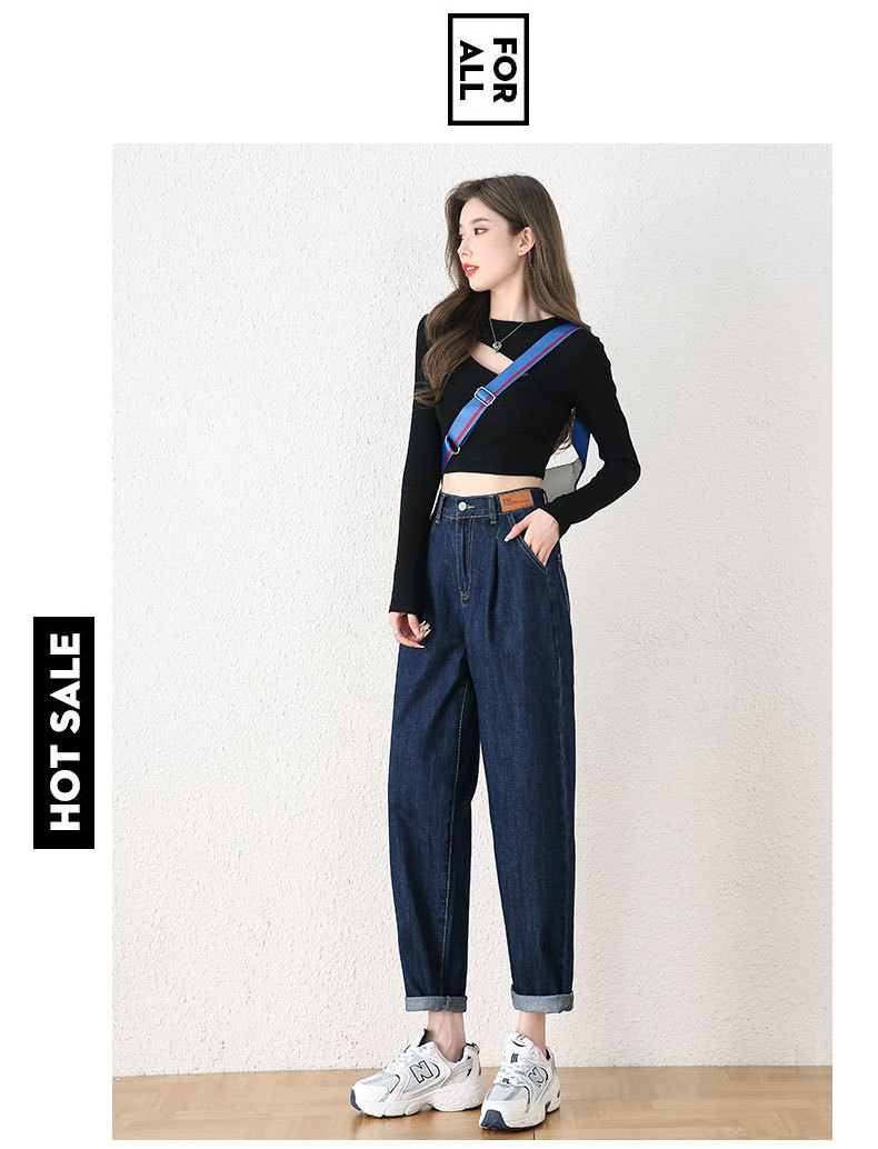 하렘 청바지 여성 봄, 가을 얇은 2025 새로운 하이 웨이스트 루즈 스트레이트 겨울 당근 바나나 아빠 바지스토어 가기