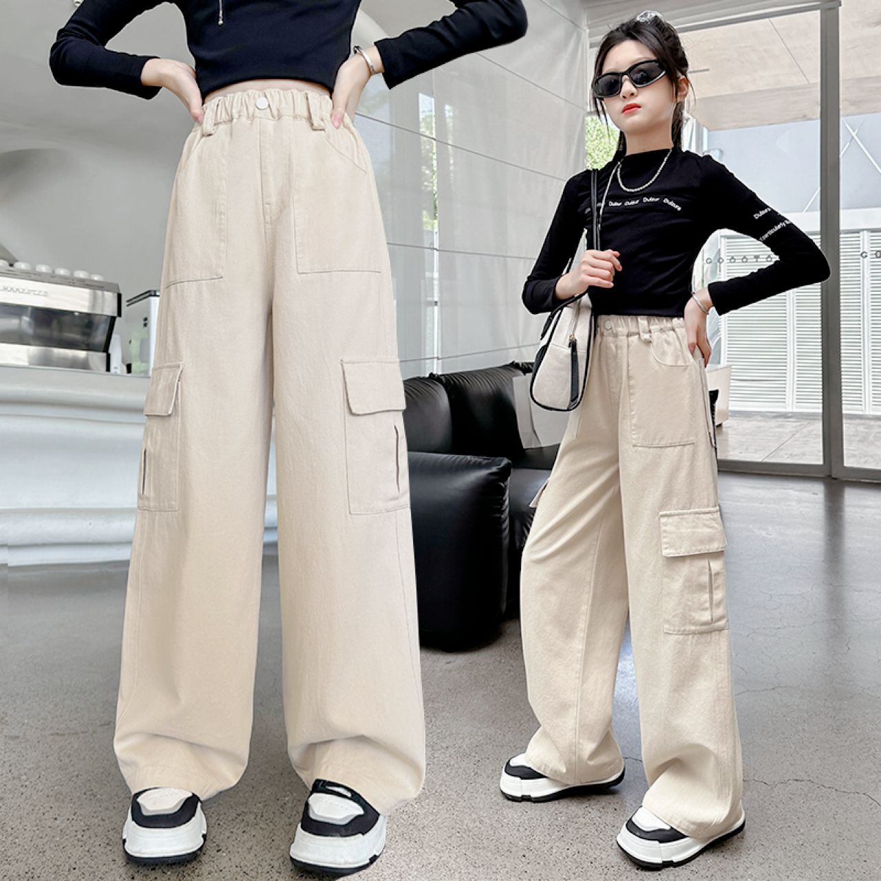소녀 바지 바지 가을 새로운 큰 어린이 큰 주머니 넓은 다리 바지 대외 무역 어린이 바지 스트레이트 바지 패션 2024 가을스토어 가기