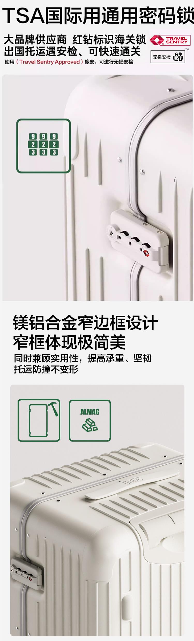 CECE2024 새로운 도착 수하물 케이스 여성의 대용량 두꺼운 알루미늄 프레임 가방 남성 학생 넥타이 막대 암호 가죽 케이스