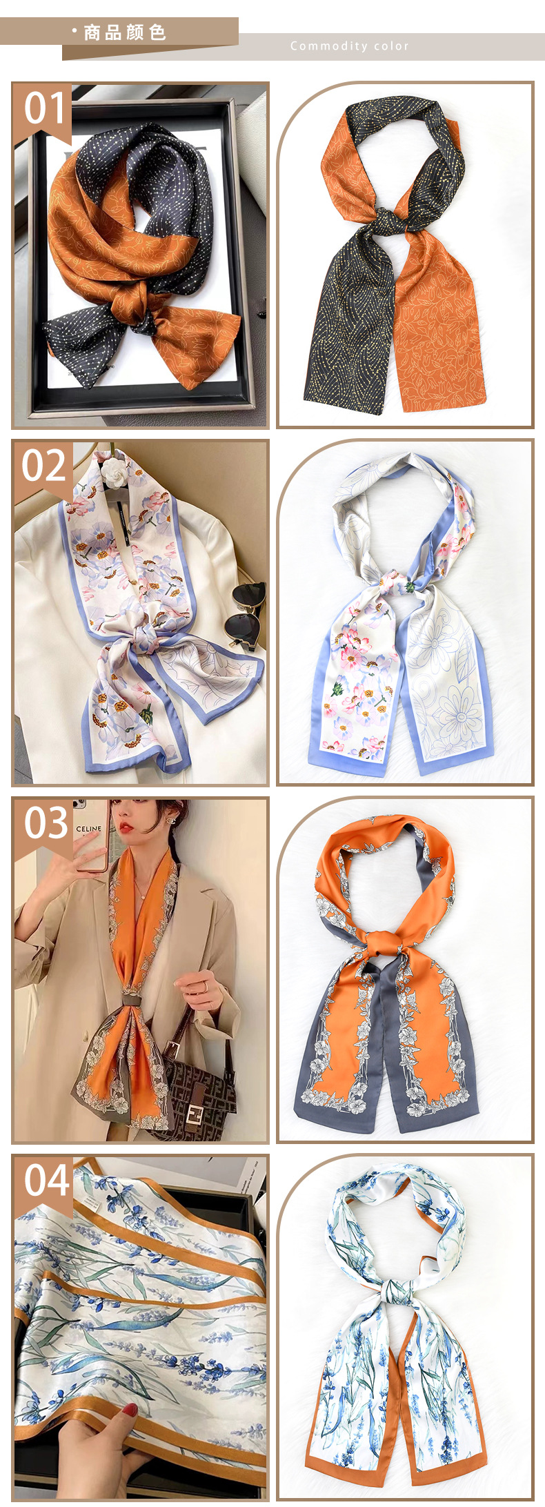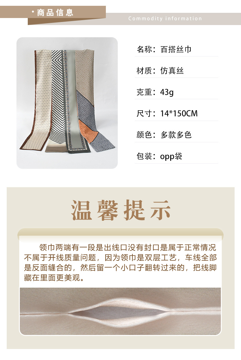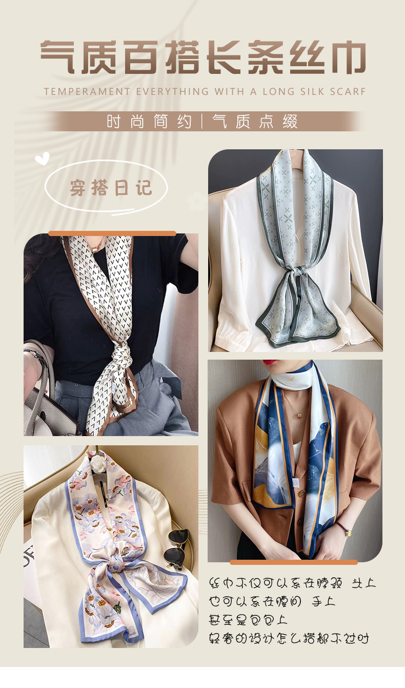 한국 패션 올매치 스트라이프 캐리지 불규칙한 새틴 롱 스카프 실크 스카프 고급 더블 레이어 얇은 좁은 긴 스카프스토어 가기