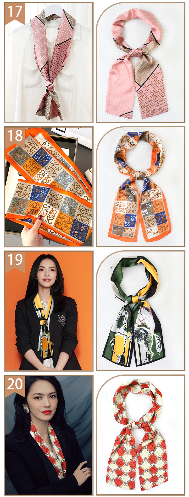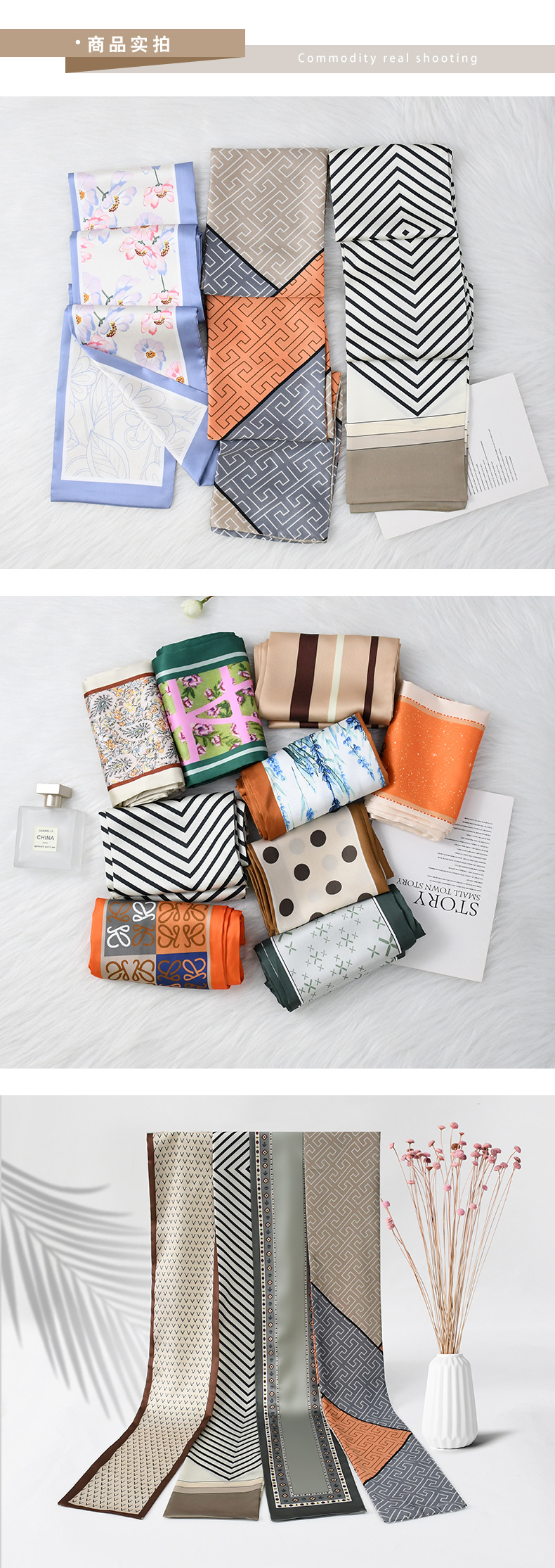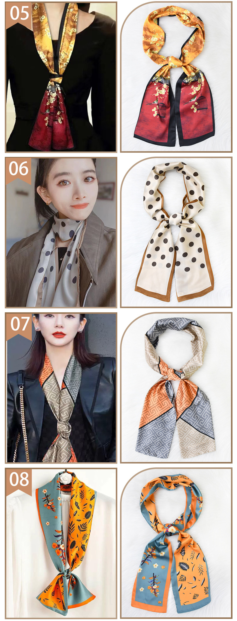 한국 패션 올매치 스트라이프 캐리지 불규칙한 새틴 롱 스카프 실크 스카프 고급 더블 레이어 얇은 좁은 긴 스카프스토어 가기