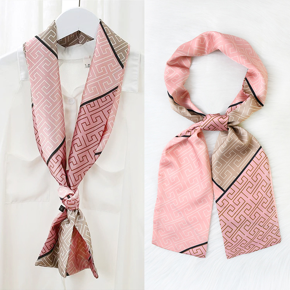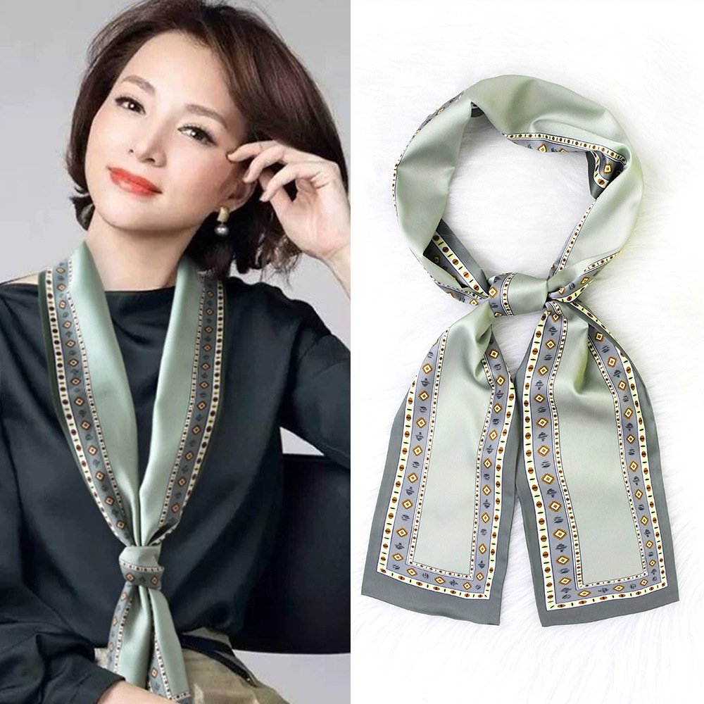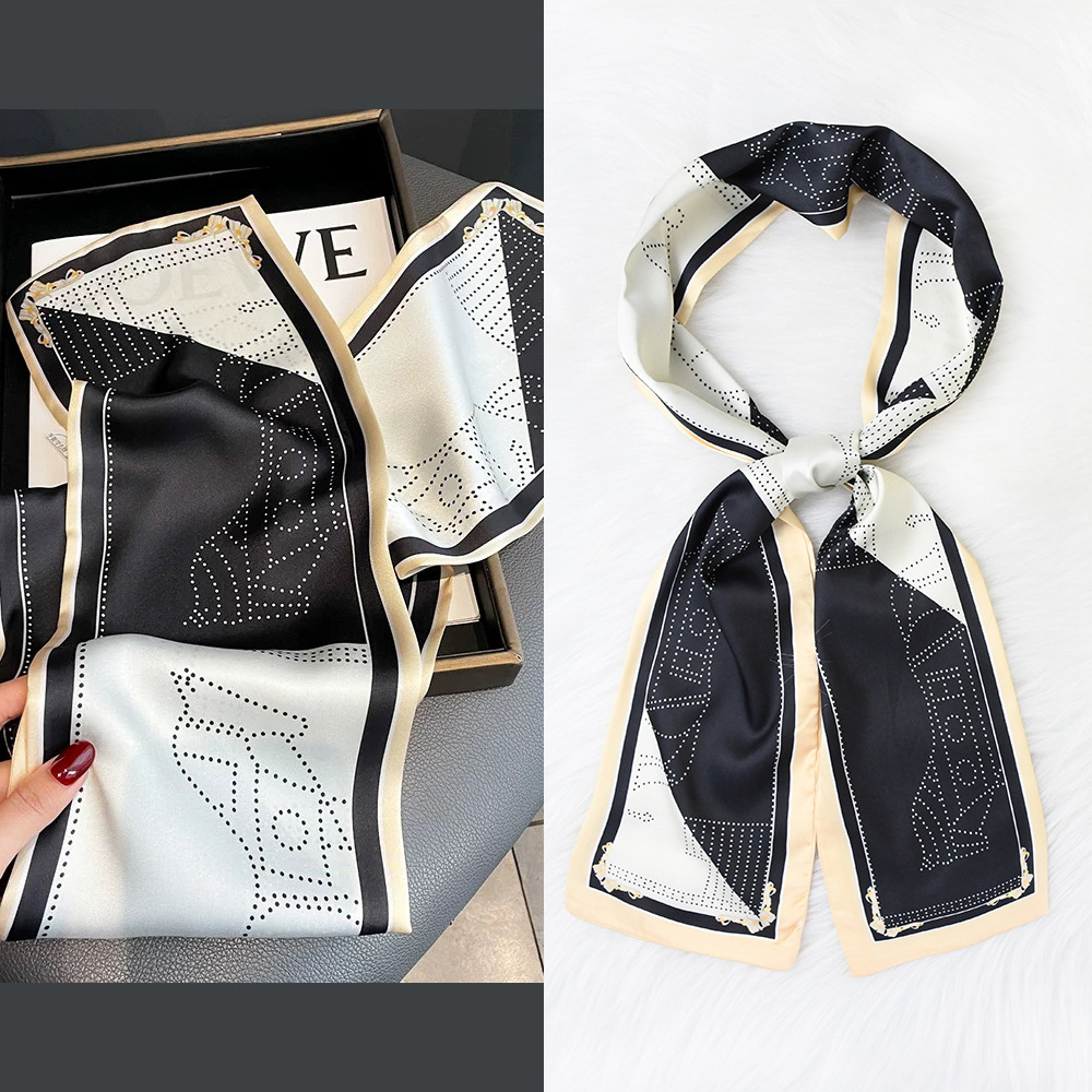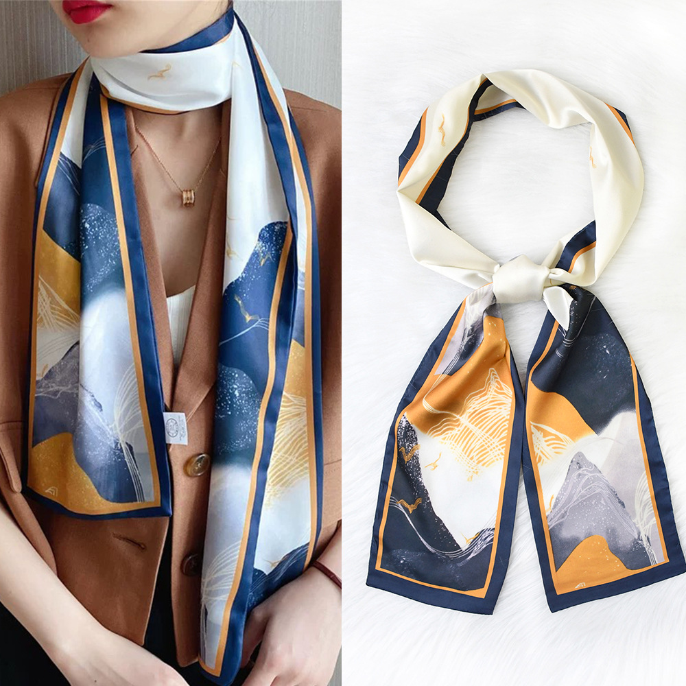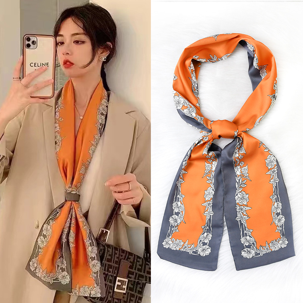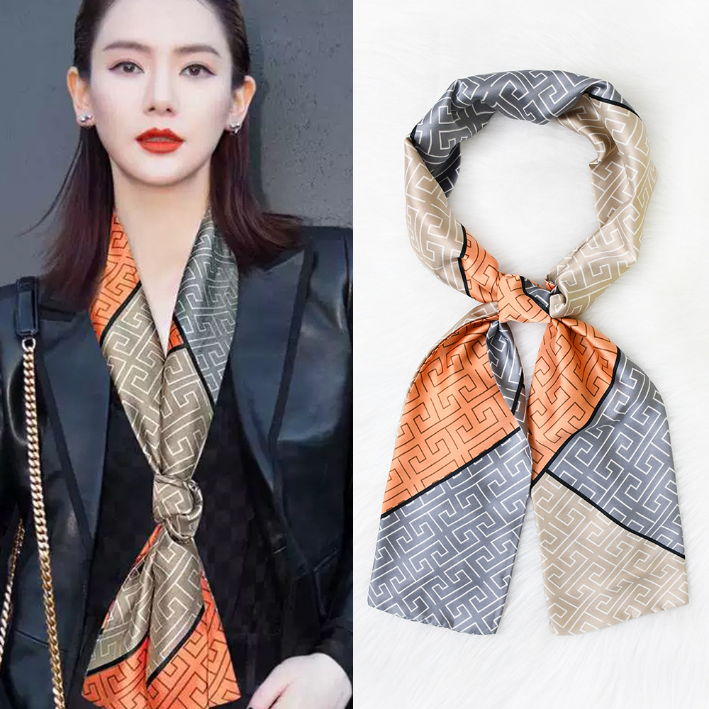 한국 패션 올매치 스트라이프 캐리지 불규칙한 새틴 롱 스카프 실크 스카프 고급 더블 레이어 얇은 좁은 긴 스카프