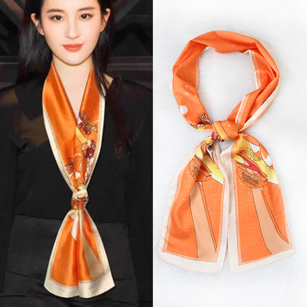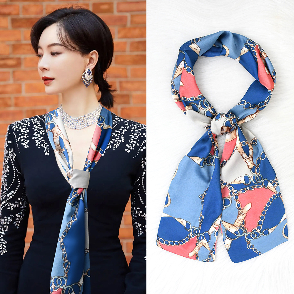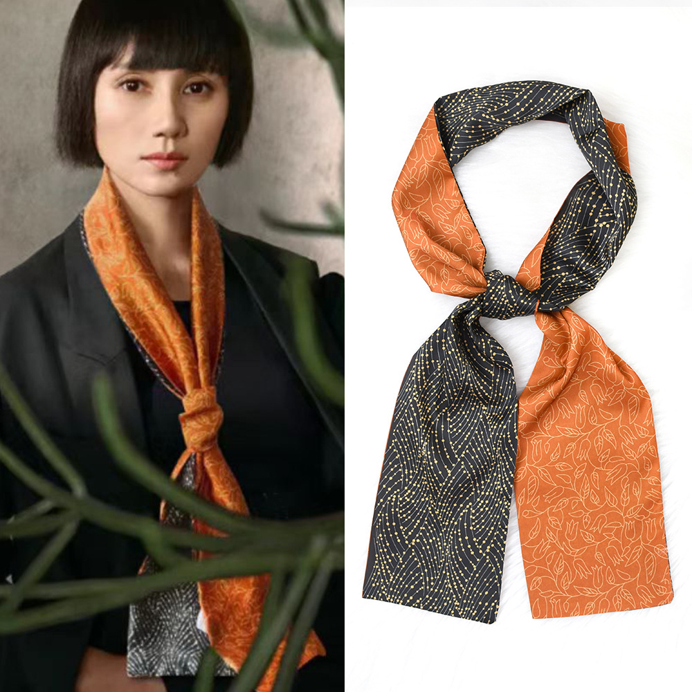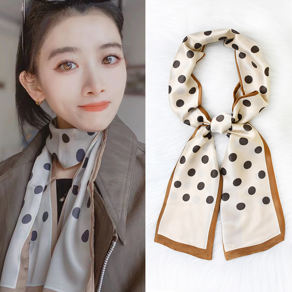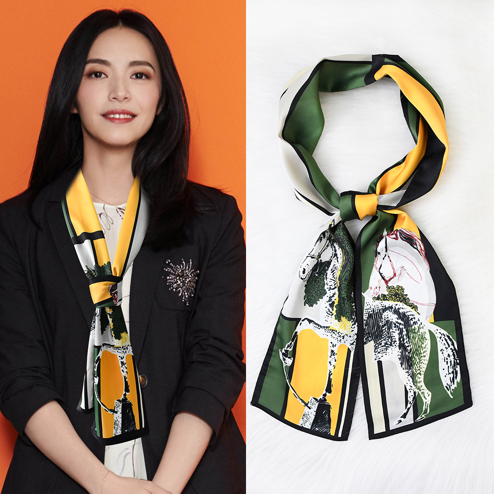 한국 패션 올매치 스트라이프 캐리지 불규칙한 새틴 롱 스카프 실크 스카프 고급 더블 레이어 얇은 좁은 긴 스카프