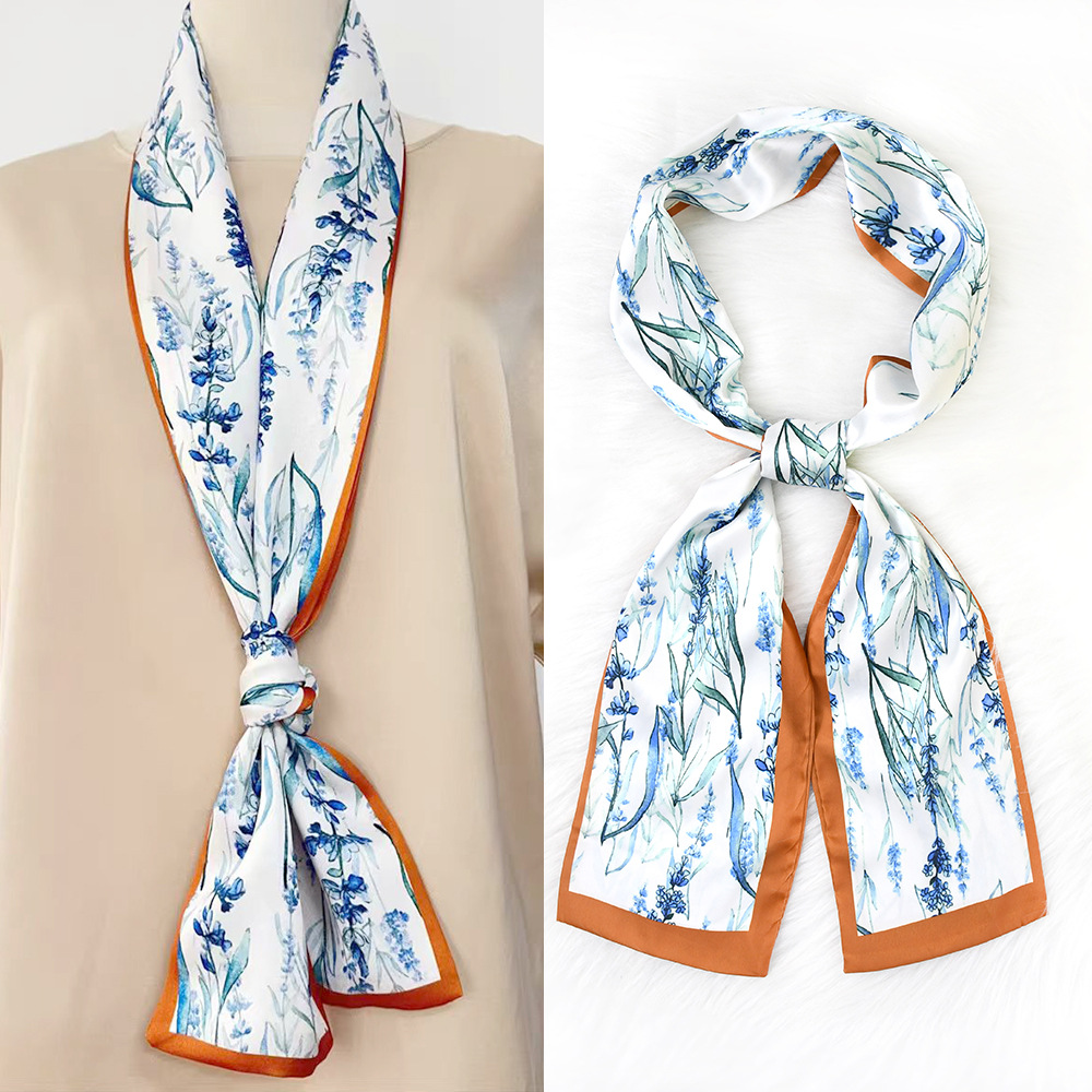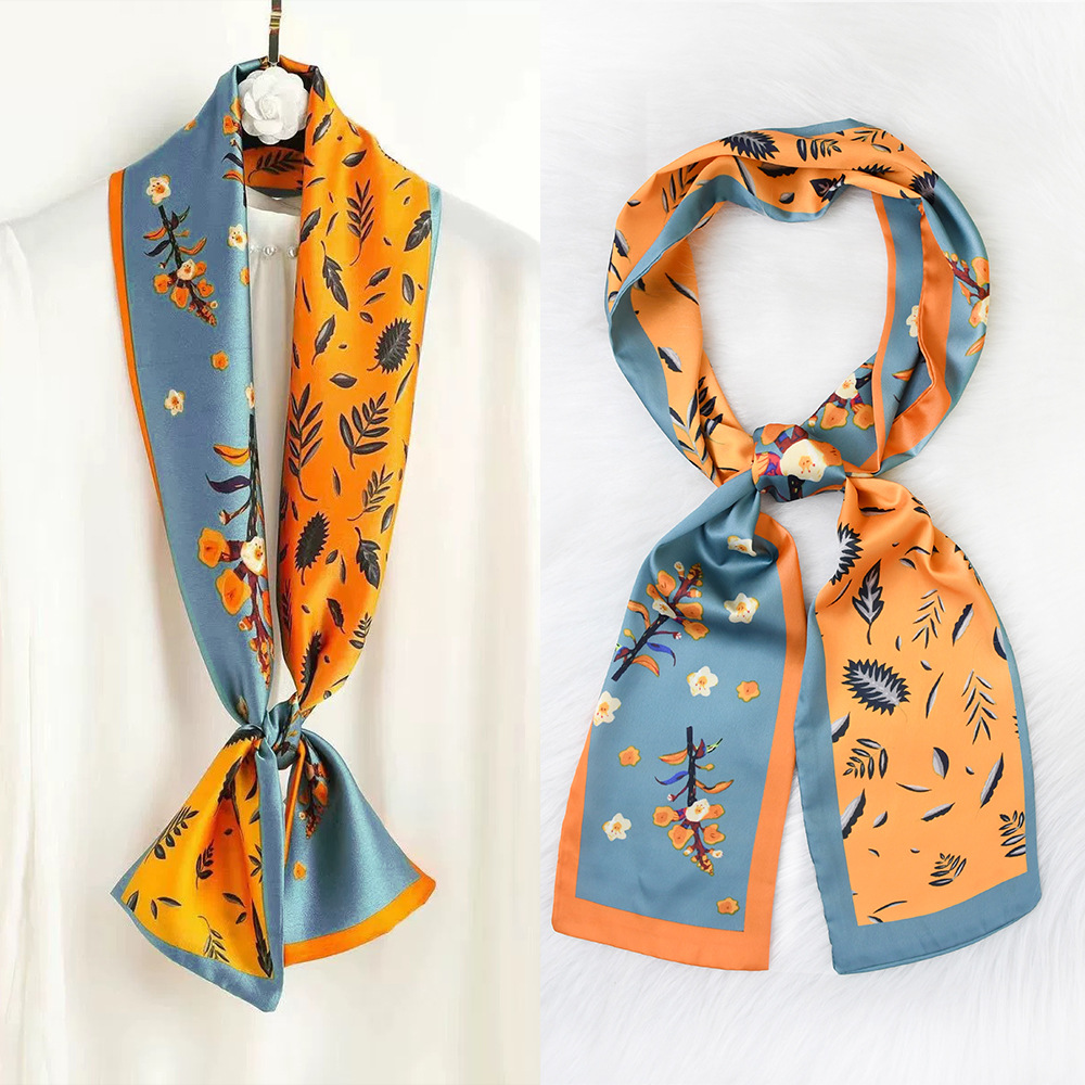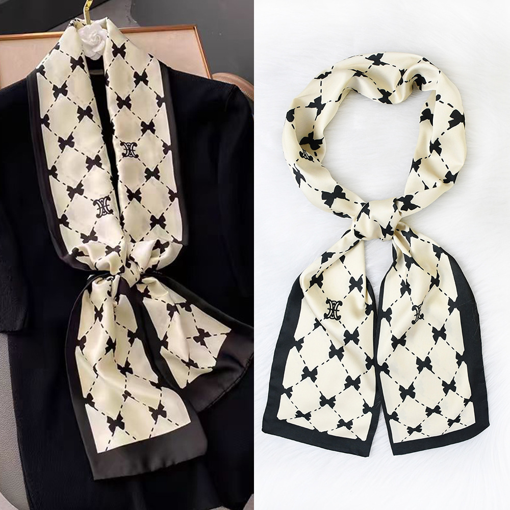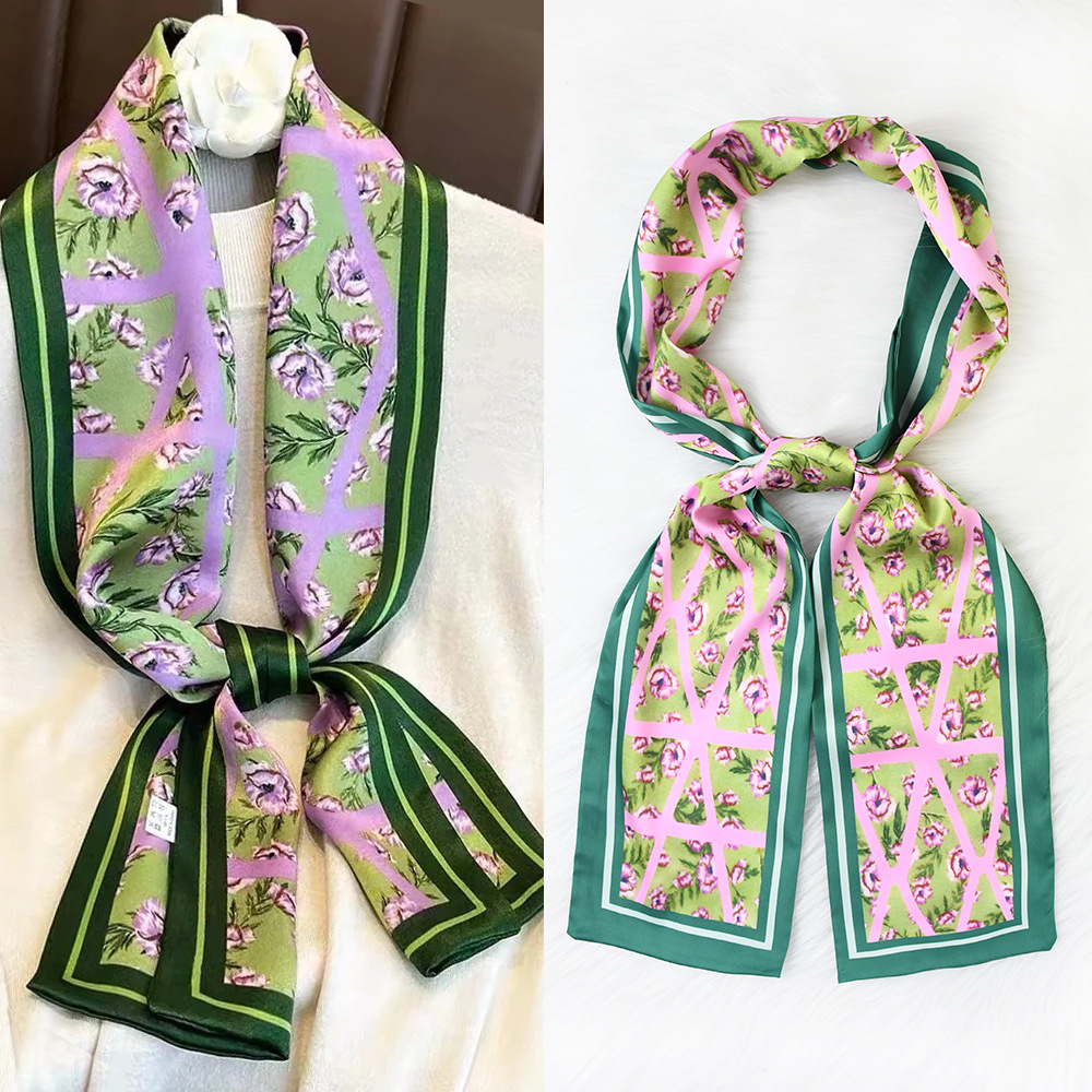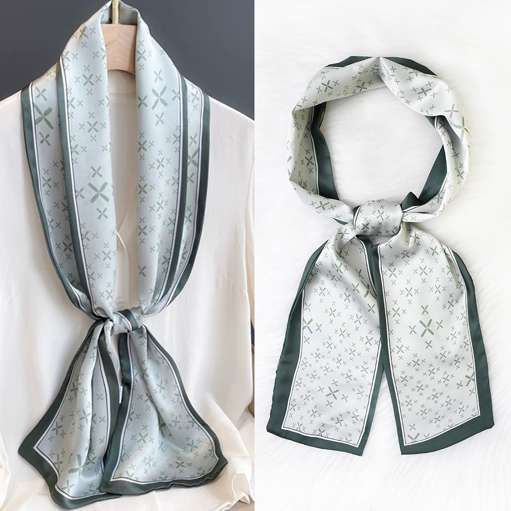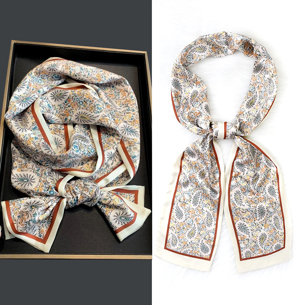 한국 패션 올매치 스트라이프 캐리지 불규칙한 새틴 롱 스카프 실크 스카프 고급 더블 레이어 얇은 좁은 긴 스카프
