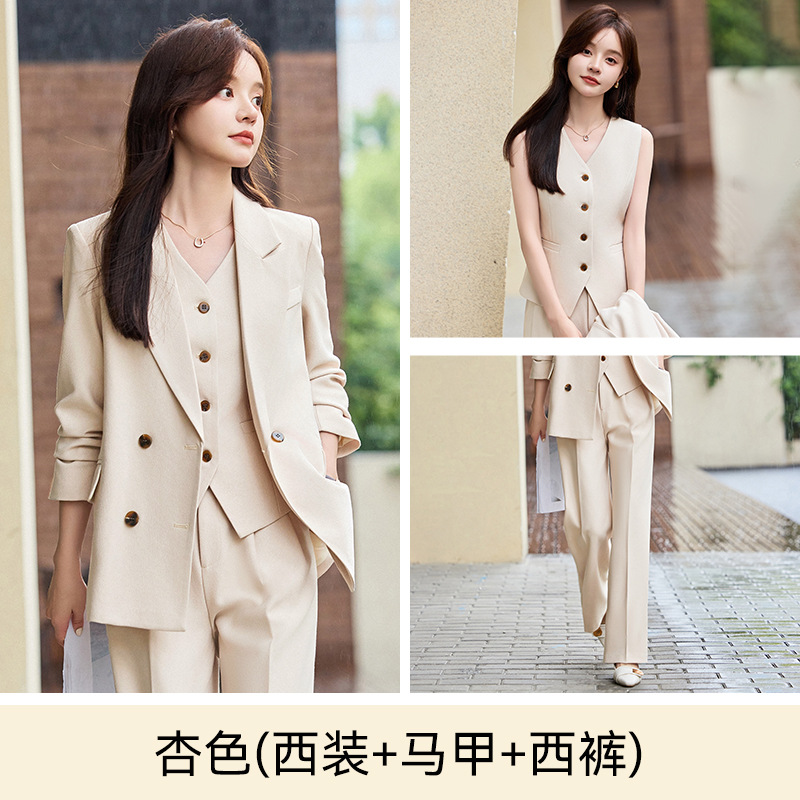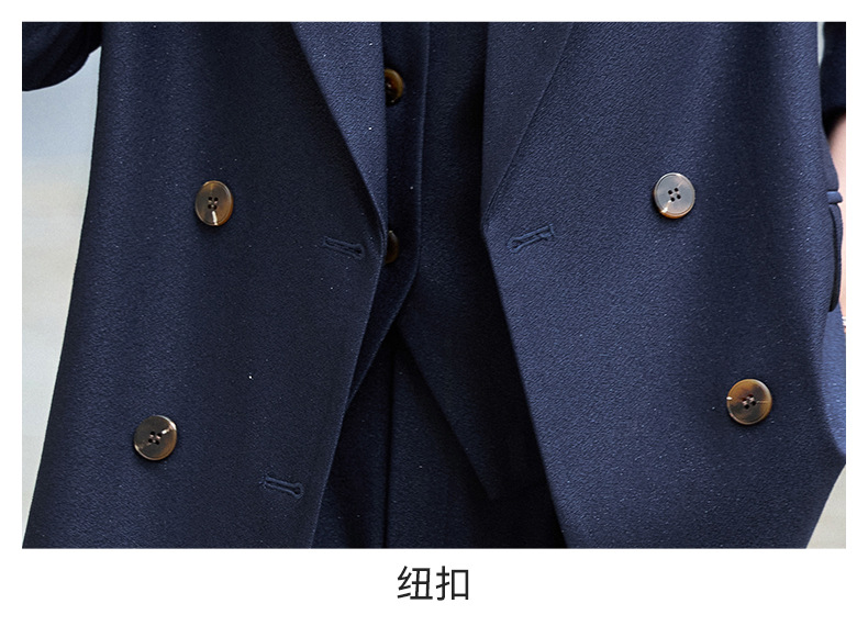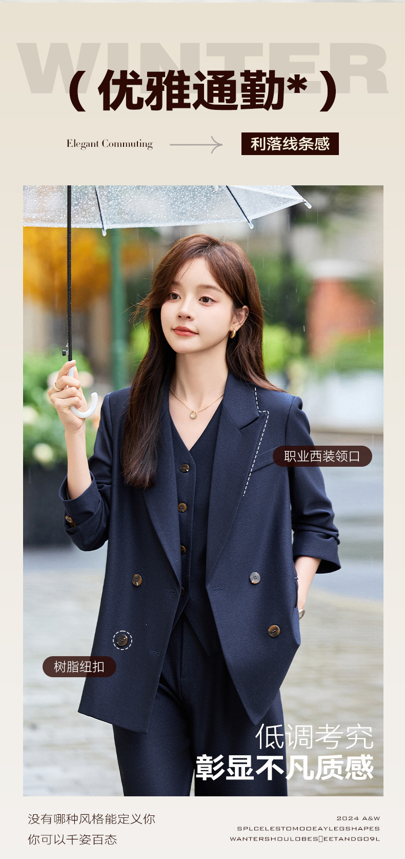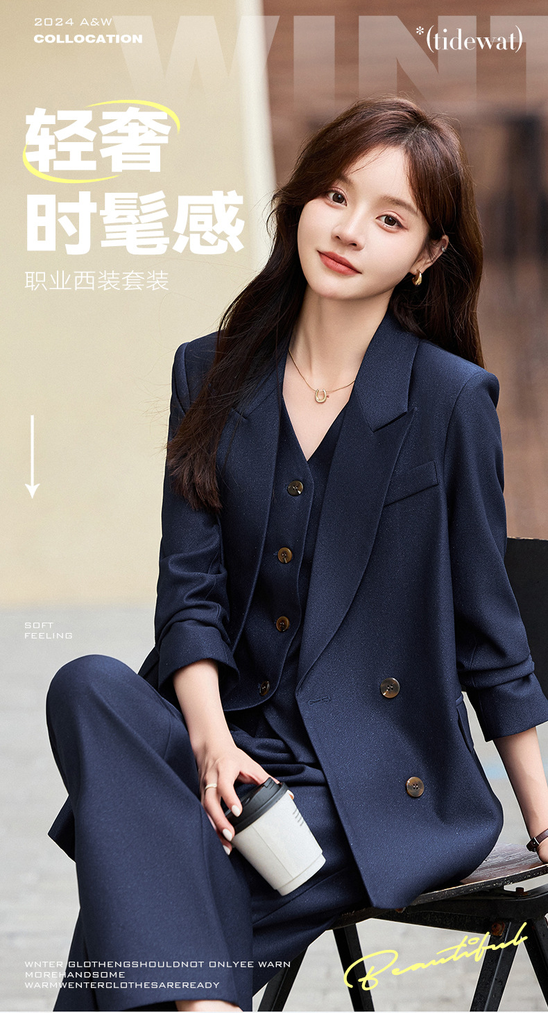 블루 세트 세트 여성 비즈니스 하이 엔드 기질 뱀프 3 피스 세트 재킷 작업복 원피스 가을