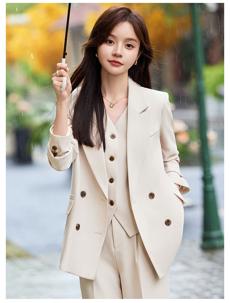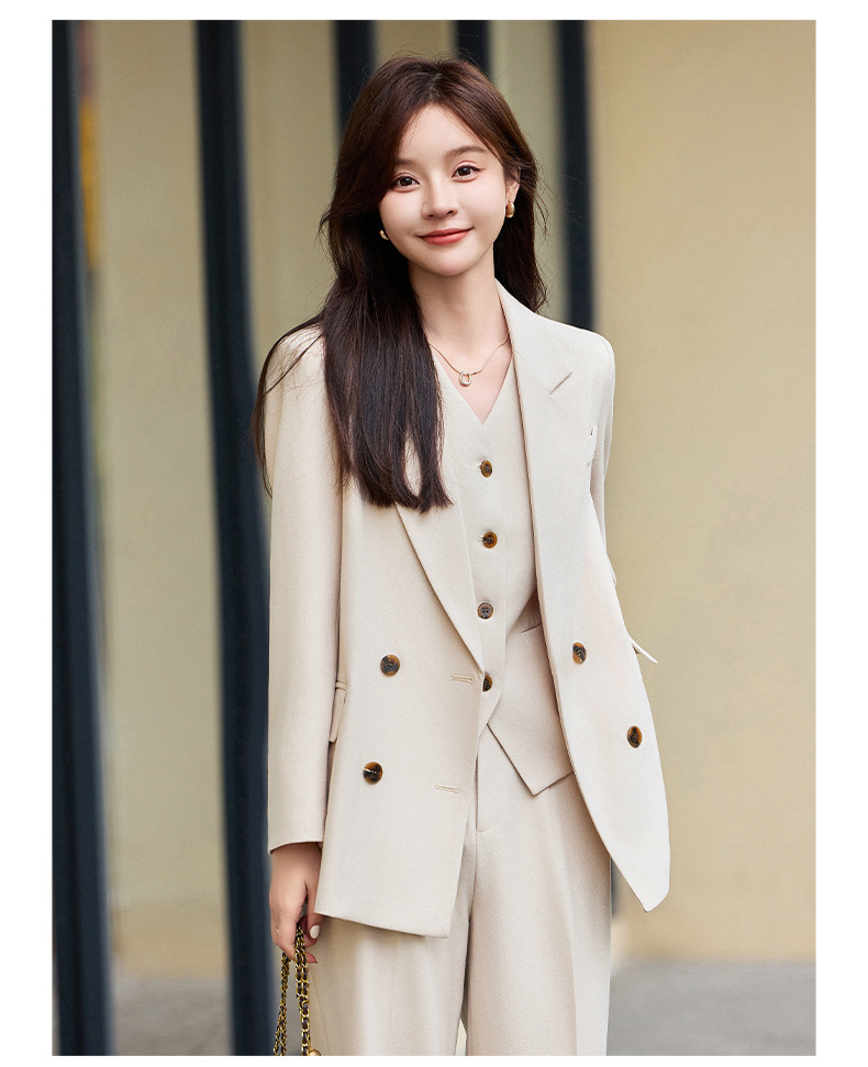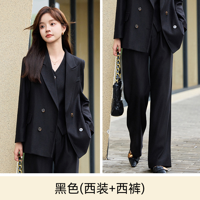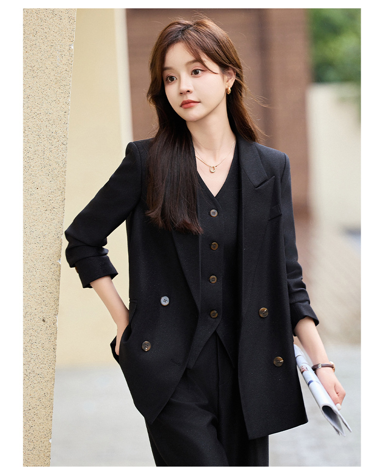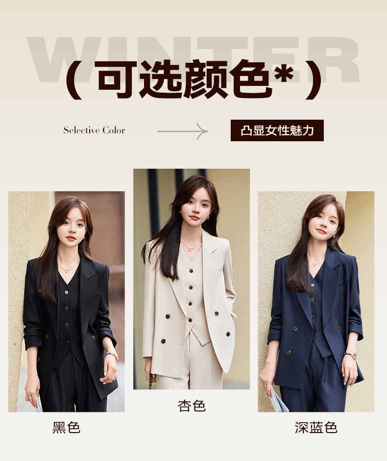 블루 세트 세트 여성 비즈니스 하이 엔드 기질 뱀프 3 피스 세트 재킷 작업복 원피스 가을
