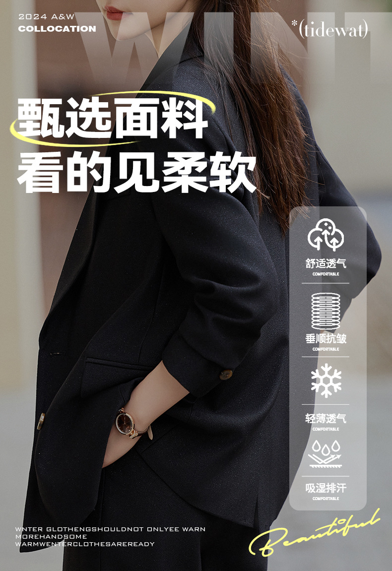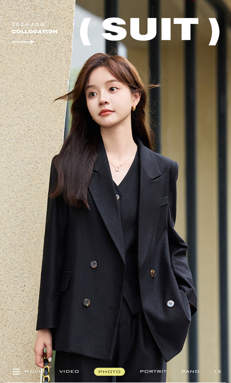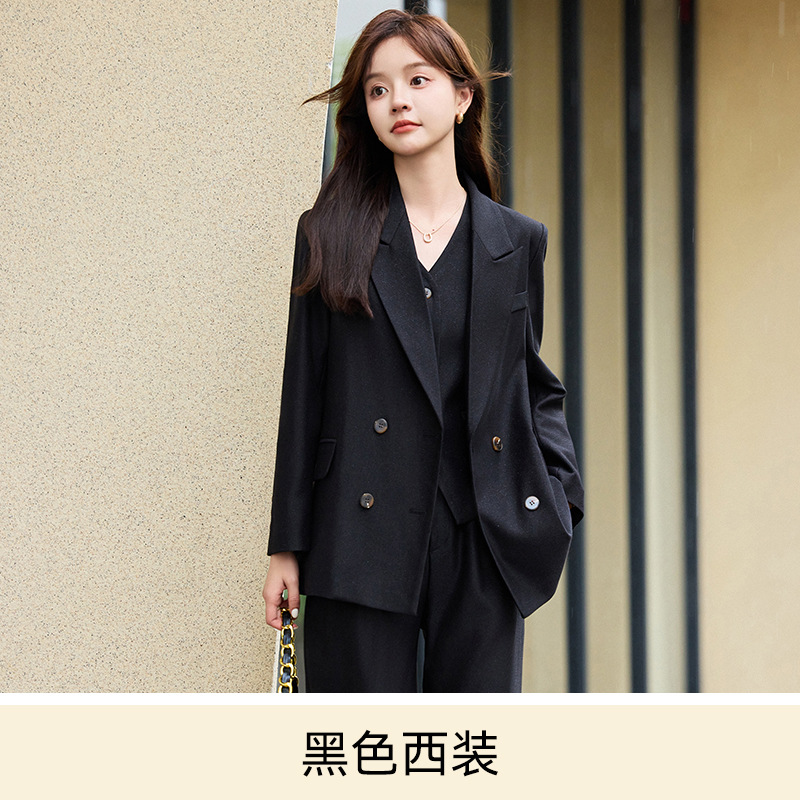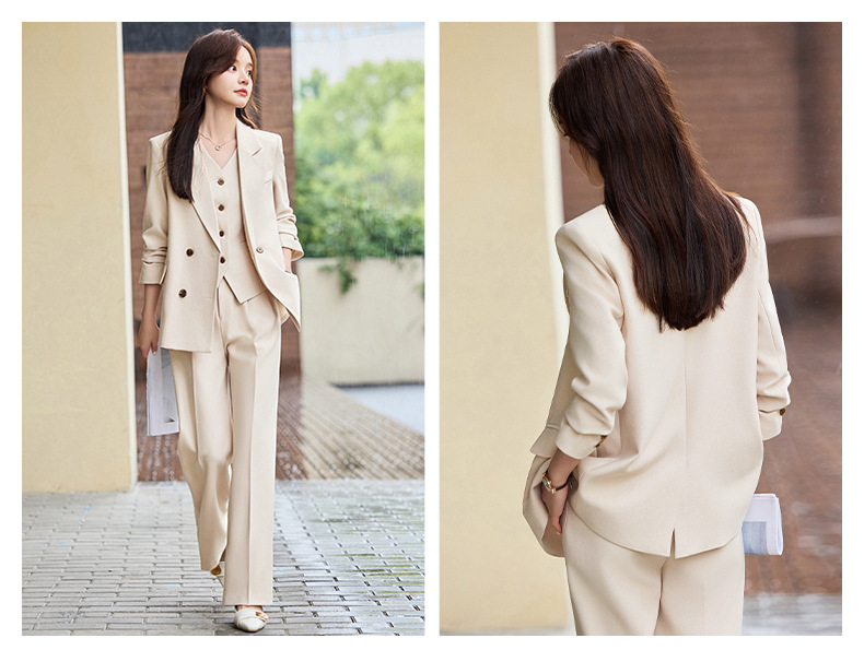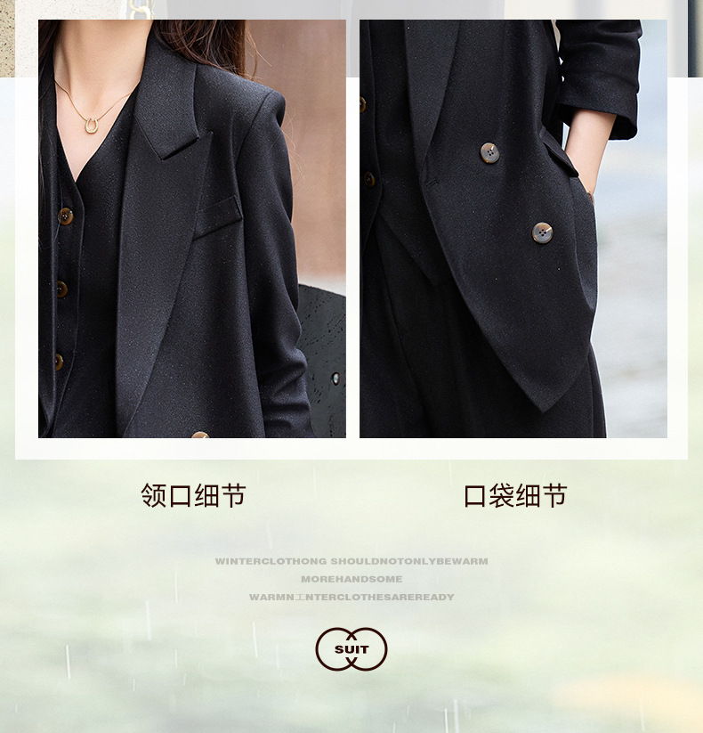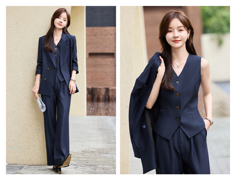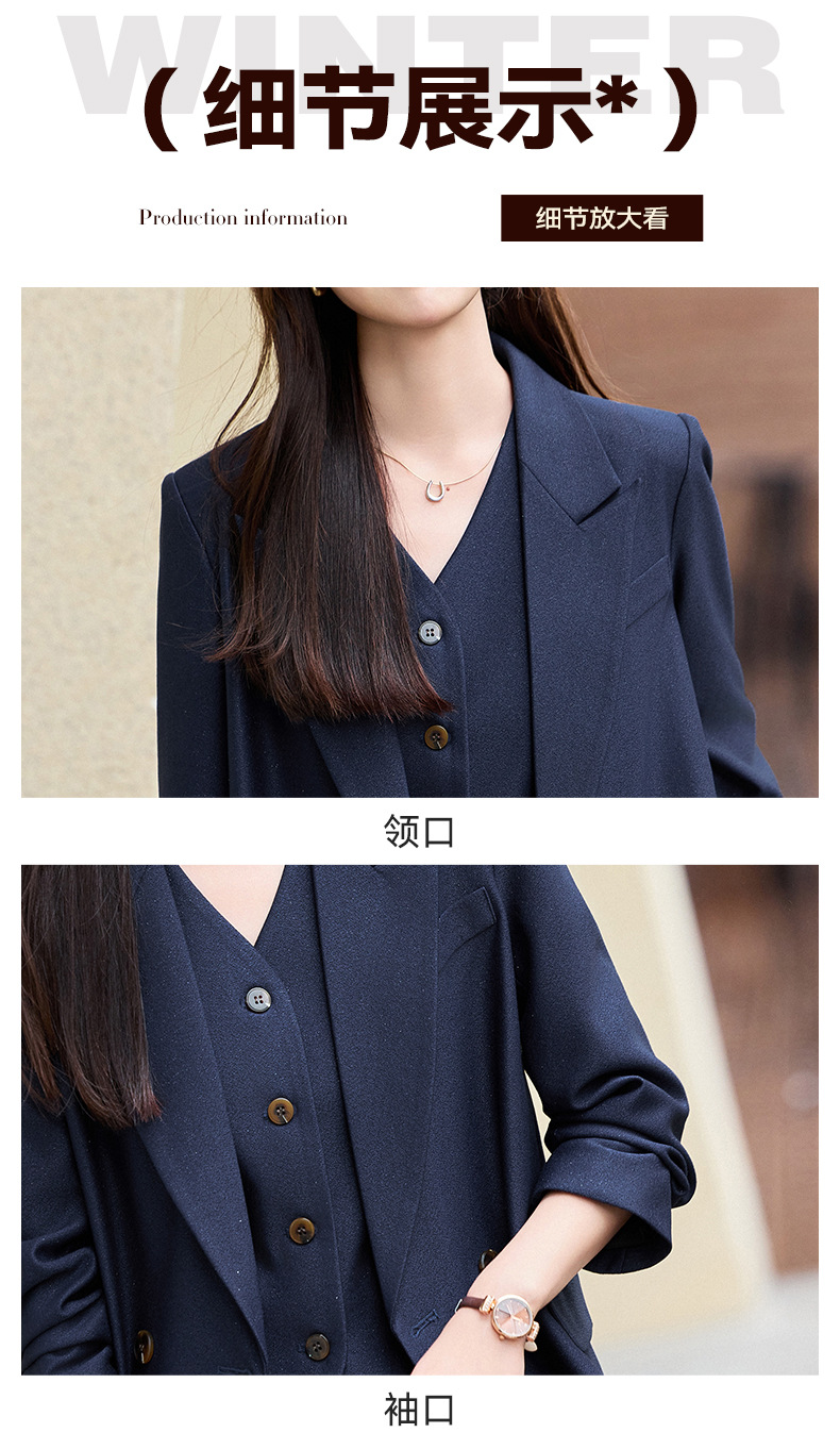 블루 세트 세트 여성 비즈니스 하이 엔드 기질 뱀프 3 피스 세트 재킷 작업복 원피스 가을스토어 가기