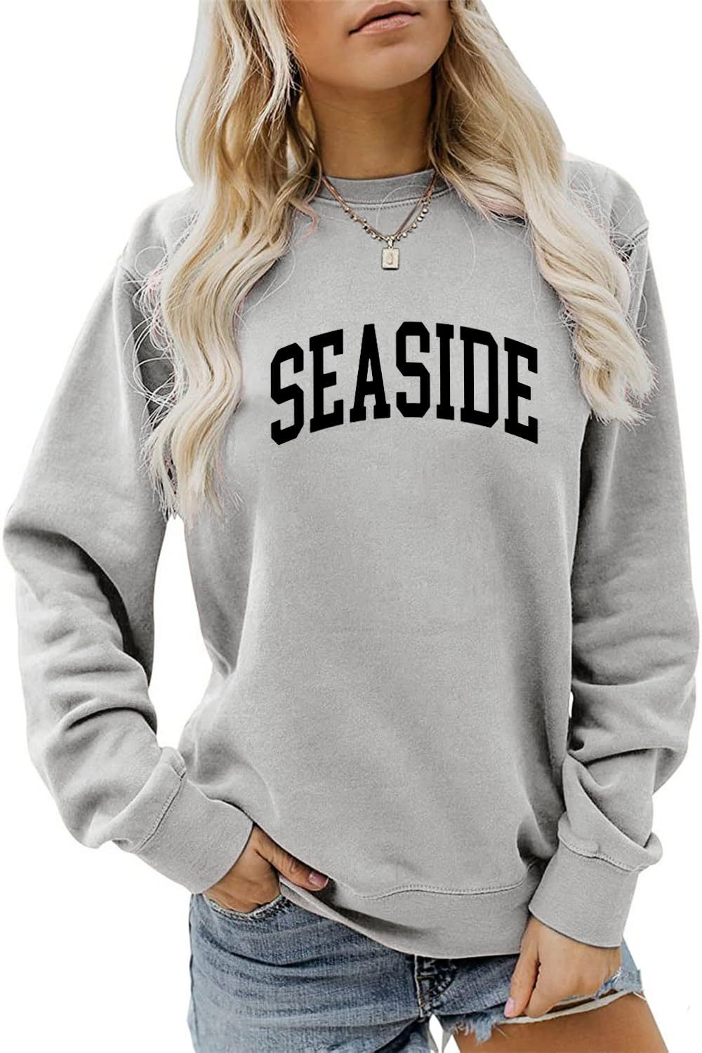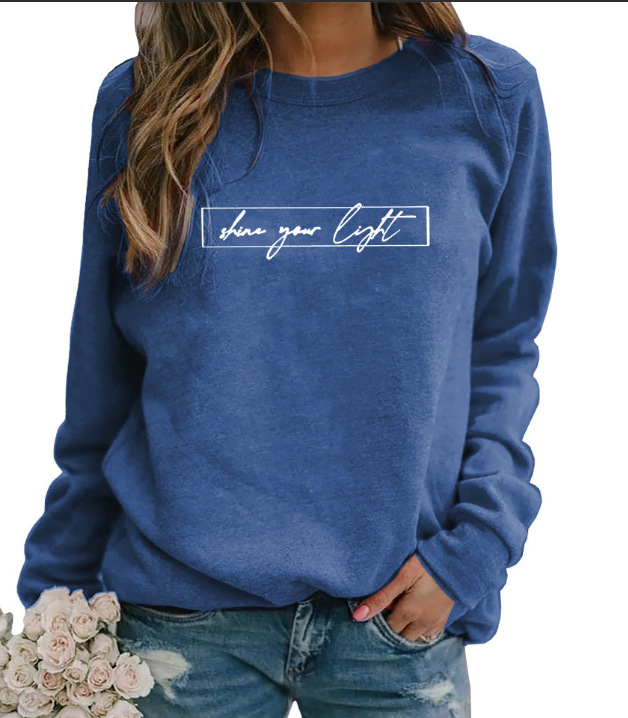 크로스보더 아마존 공급업체 레터 프린트 여성 라운드넥 스웨트셔츠 유럽 사이즈 빅사이즈 루즈핏 다용도 얇은 긴팔스토어 가기