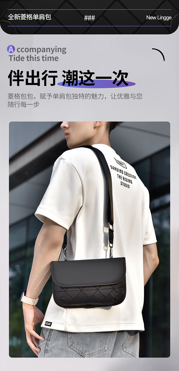 스트리트 트렌디 한 남성 가방 새로운 스타일 개인화 된 마름모꼴 남성 어깨 가방 크로스 바디 작은 가방 남성용 초박형 크로스 바디 백팩
