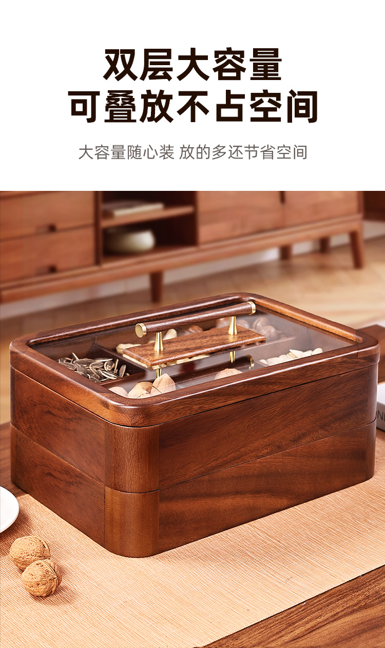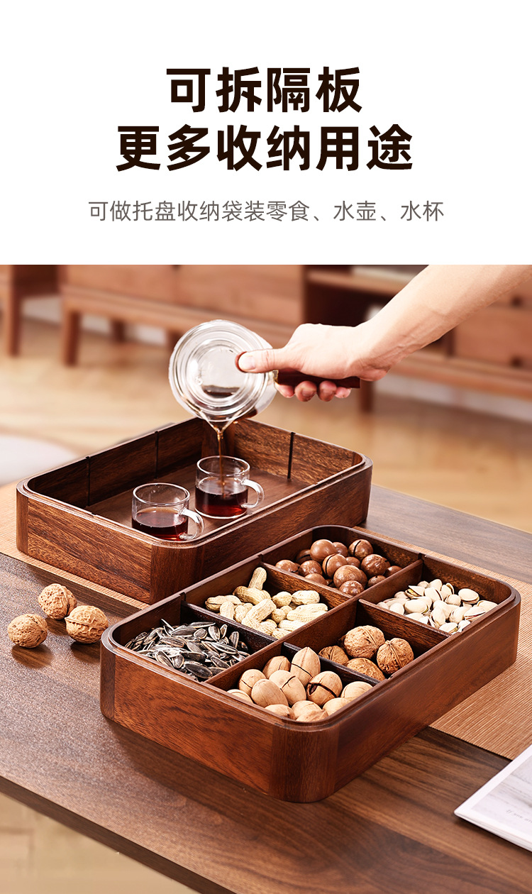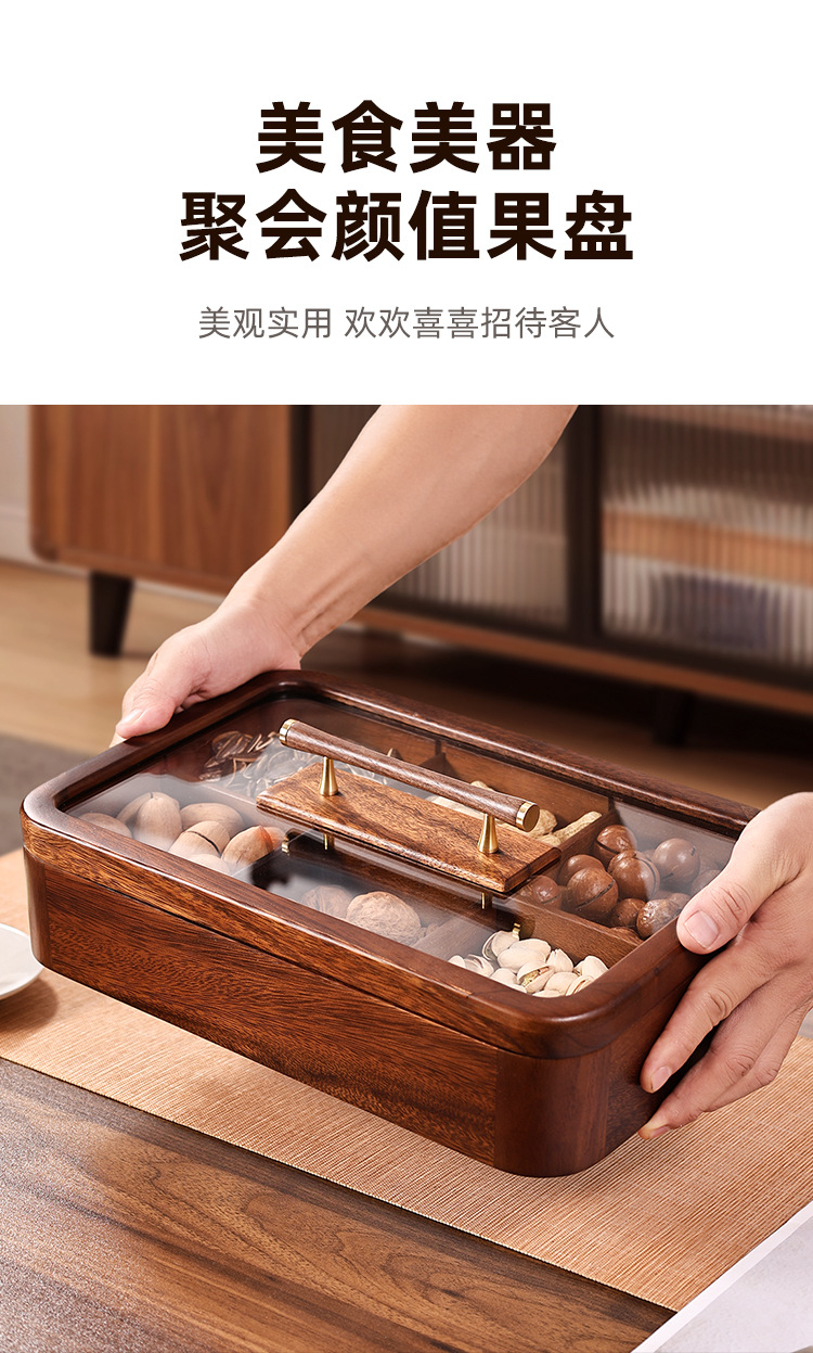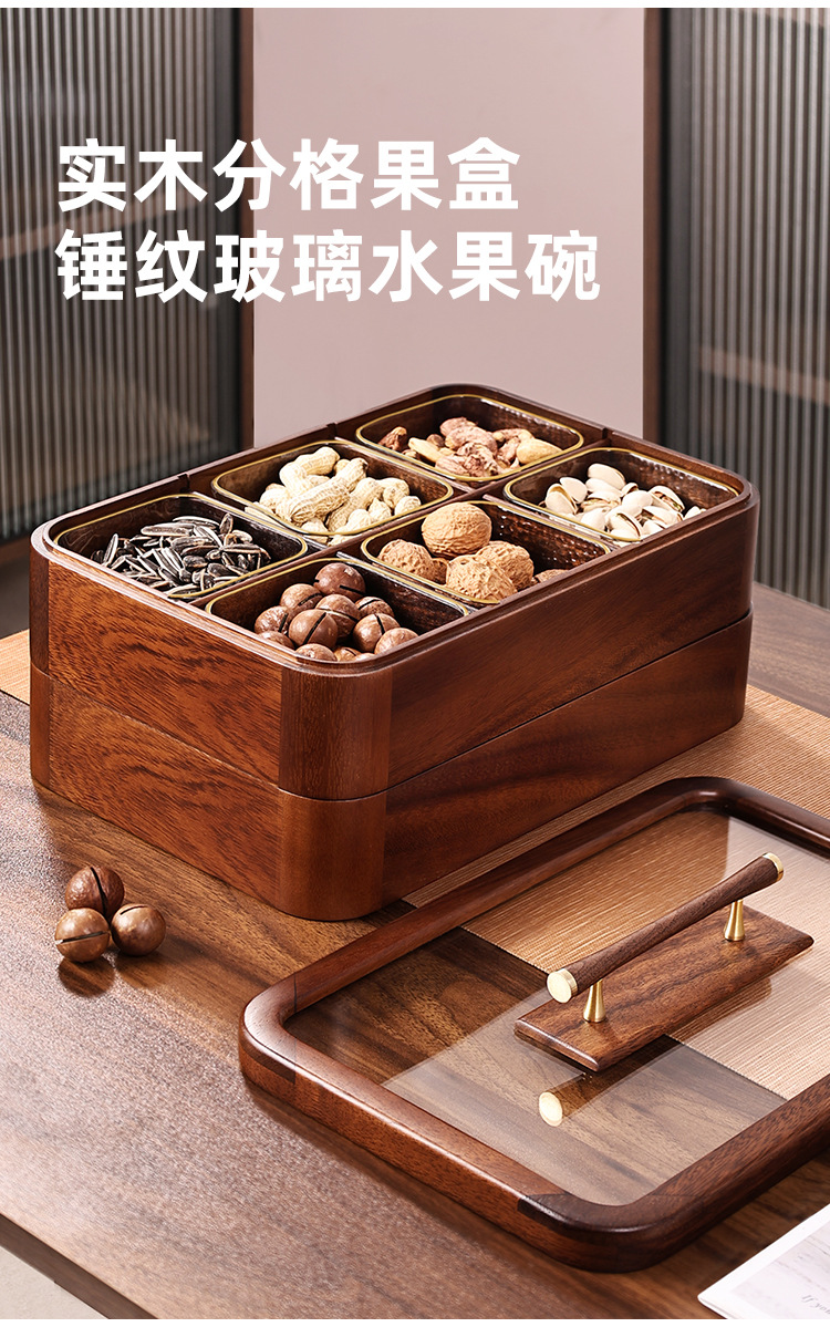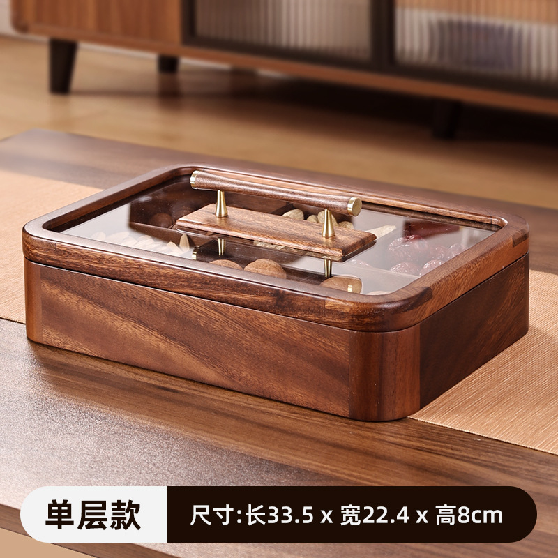 새로운 중국 호두 말린 과일 상자 직사각형 새로운 손잡이 스낵 너트 저장 상자 가정용 나무 트레이