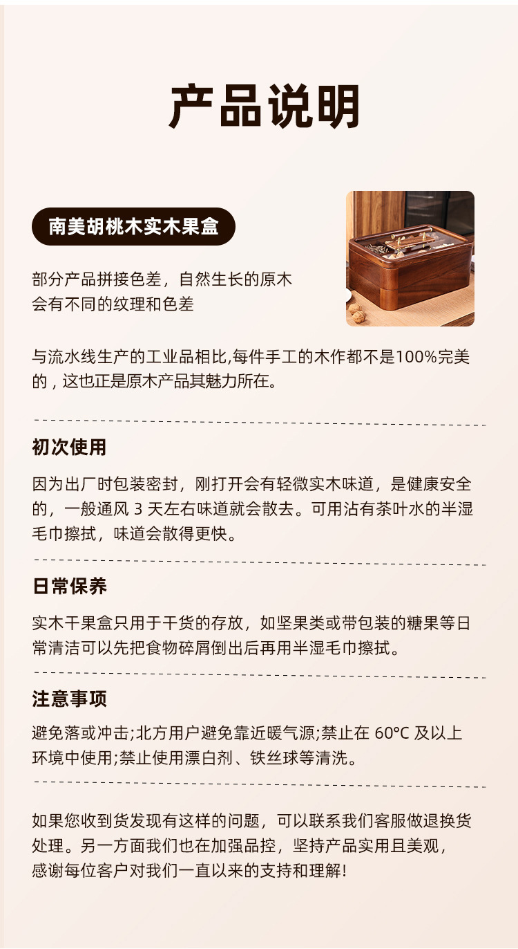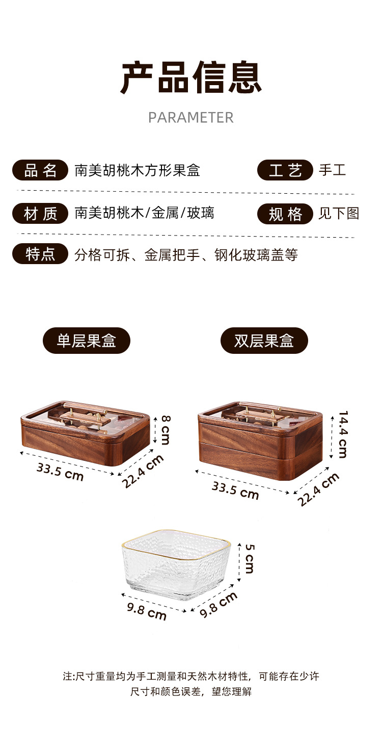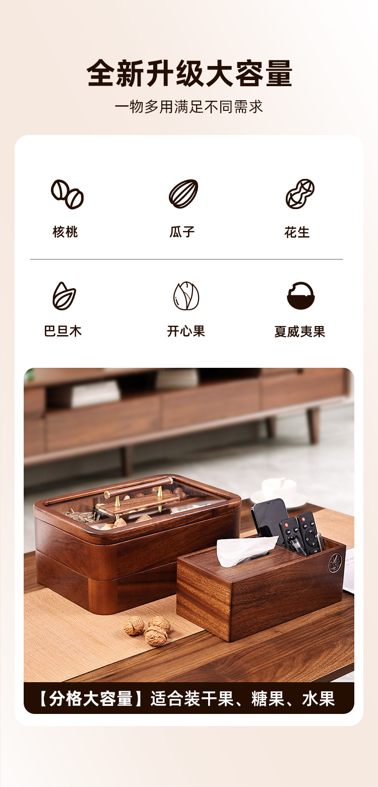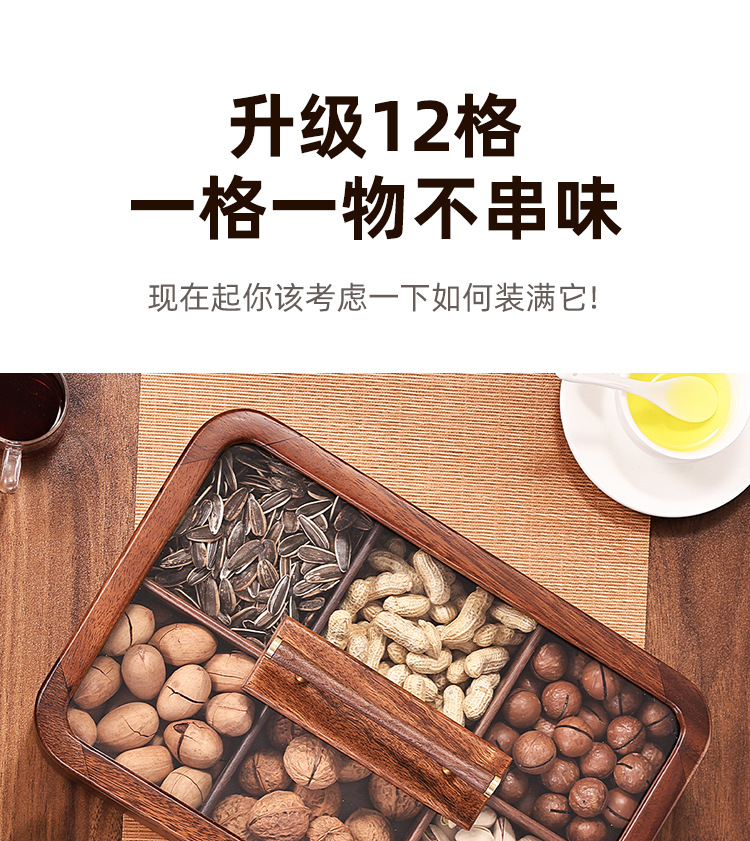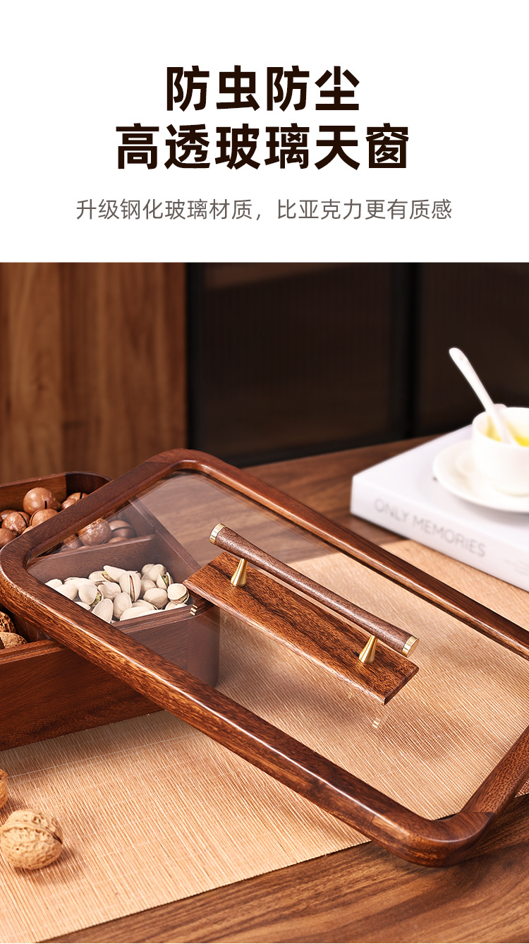 새로운 중국 호두 말린 과일 상자 직사각형 새로운 손잡이 스낵 너트 저장 상자 가정용 나무 트레이