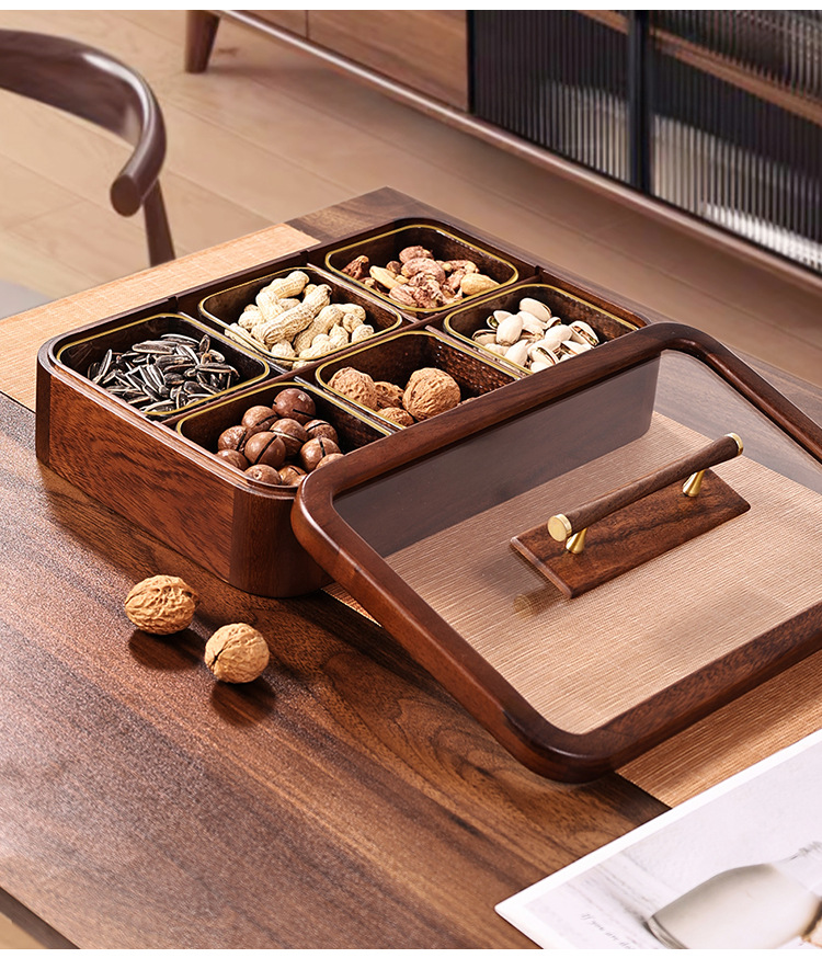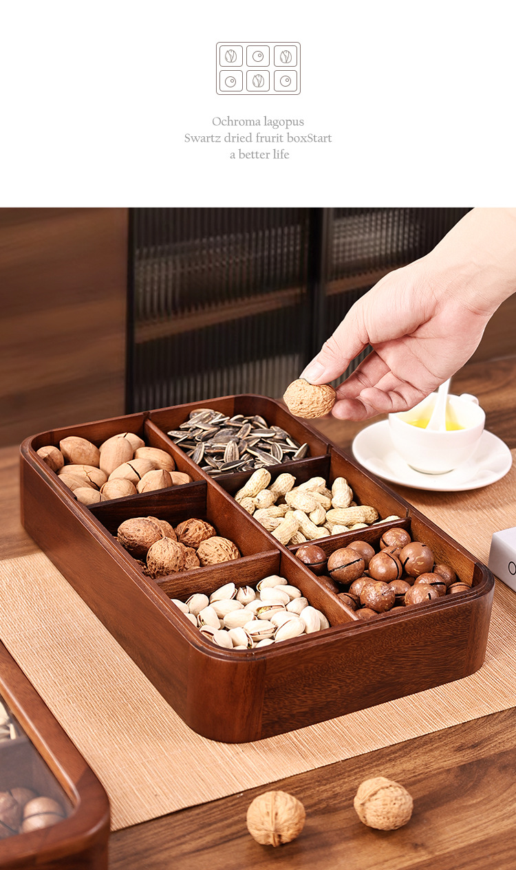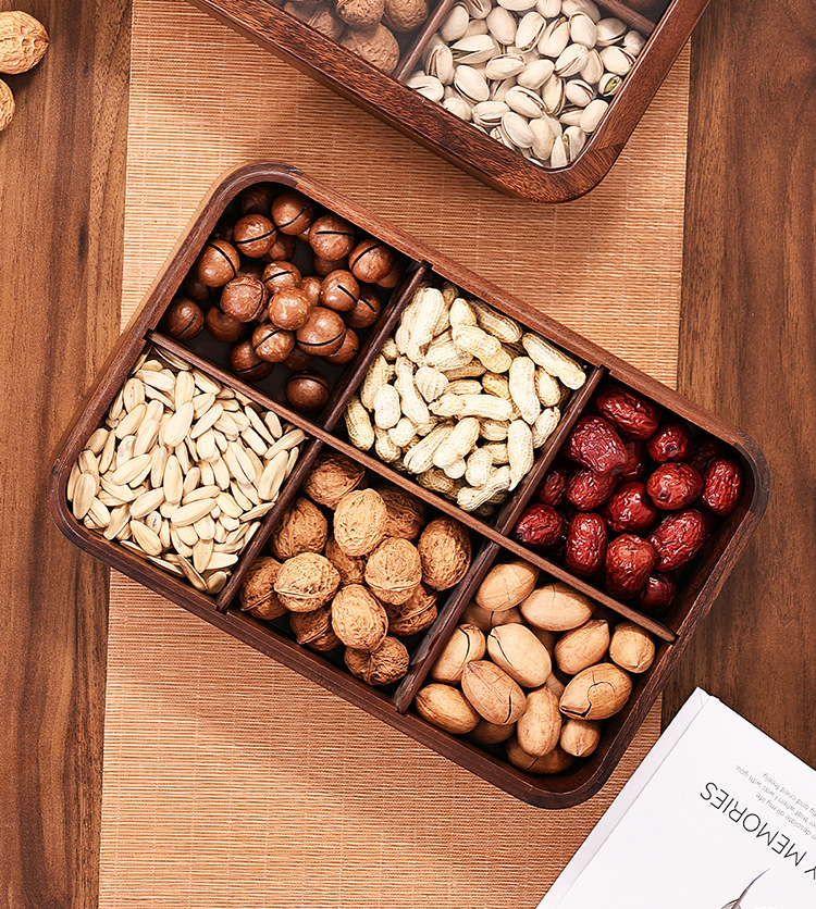 새로운 중국 호두 말린 과일 상자 직사각형 새로운 손잡이 스낵 너트 저장 상자 가정용 나무 트레이스토어 가기