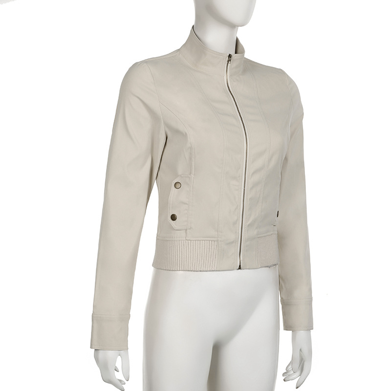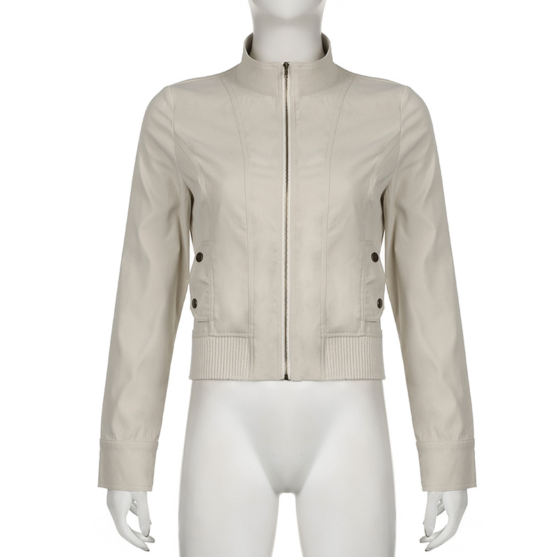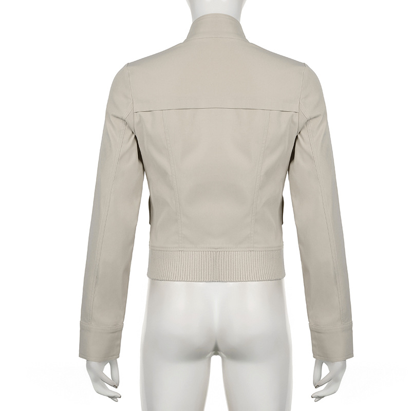 국경 간 여성 유럽과 미국의 작업복 스타일 지퍼 수직 칼라 재킷 탑 심플 스파이스 소녀 캐주얼 올 매치 슬림 핏 짧은 자켓