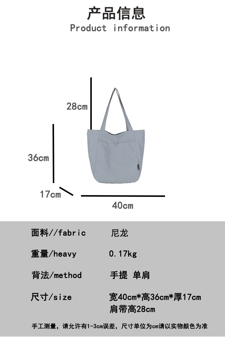 일본의 새로운 방수 나일론 캐주얼 국경 봄과 여름 어깨 헝겊 가방 여성 디자인 센스 대용량 통근 토트 백
