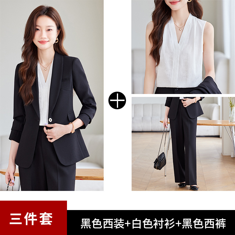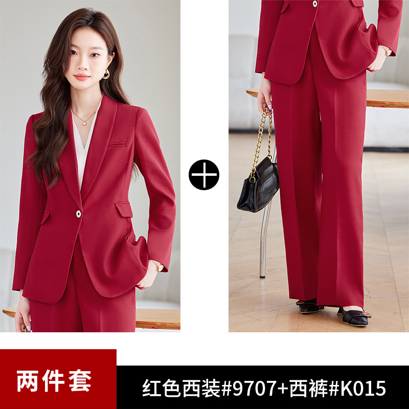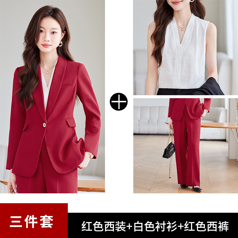 2024 새로운 직장 기질 여신 팬 간 비즈니스 세트 세트 그레이 레드 세트 재킷 여성의 봄과 가을스토어 가기