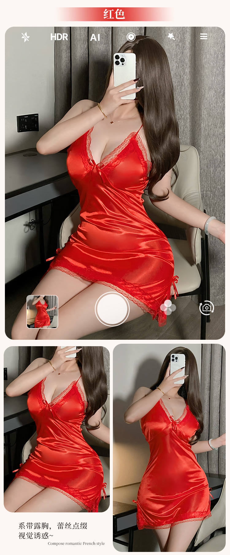 섹시한 란제리 순수한 욕망 나이트가운 여성용 얇은 레이스 하트 스플릿 잠옷 무료 세트 8550스토어 가기