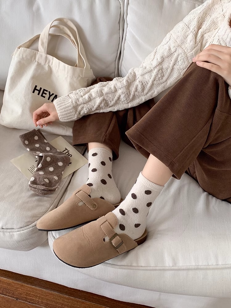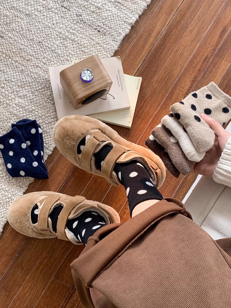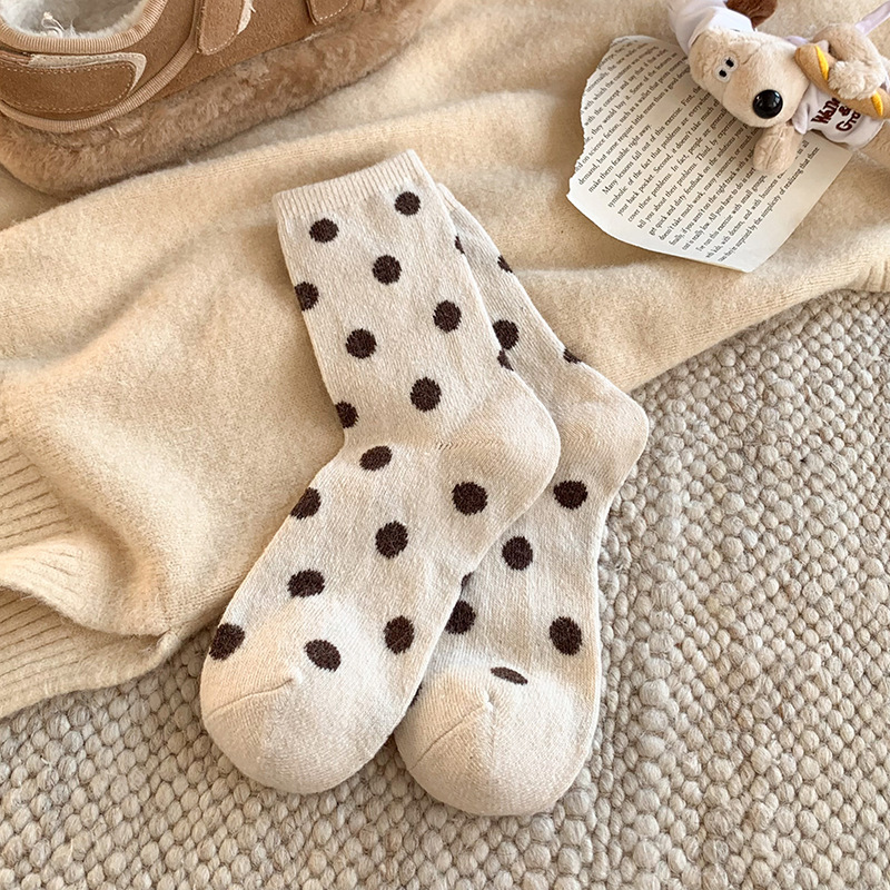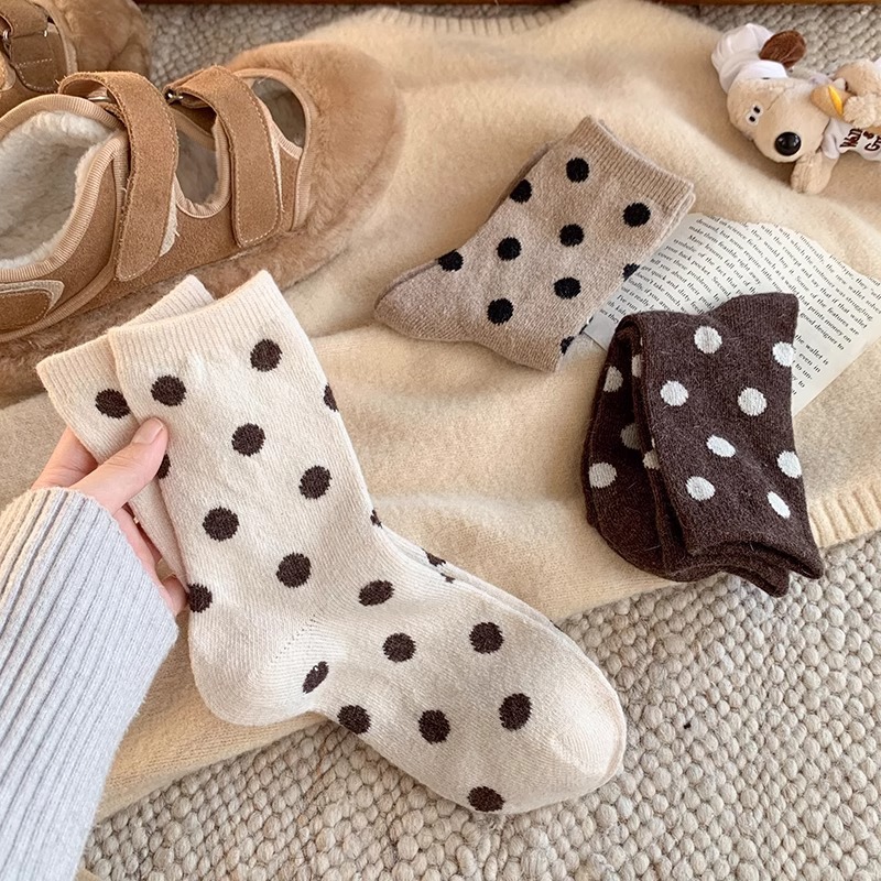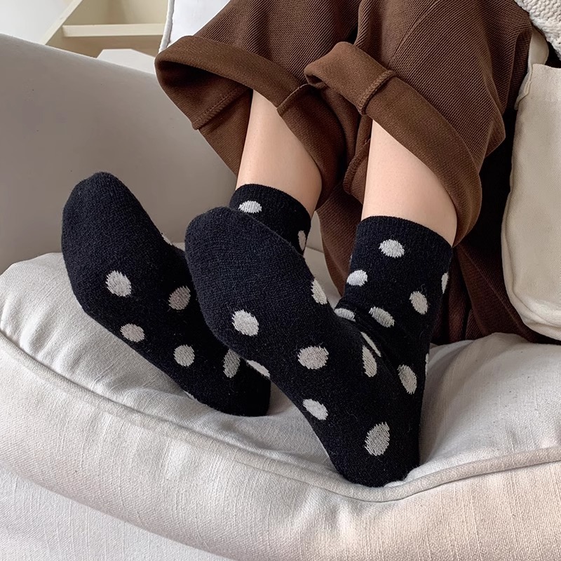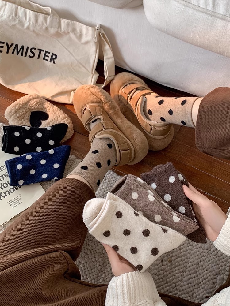 폴카 도트 양모 양말 어린이 중가을과 겨울 두꺼운 따뜻한 일본 스타일 폴카 도트 마일 라드 겨울 스택 양말