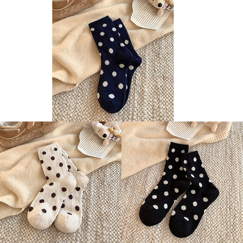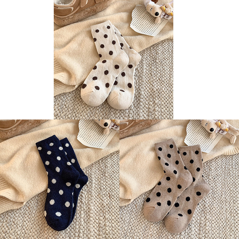 폴카 도트 양모 양말 어린이 중가을과 겨울 두꺼운 따뜻한 일본 스타일 폴카 도트 마일 라드 겨울 스택 양말스토어 가기