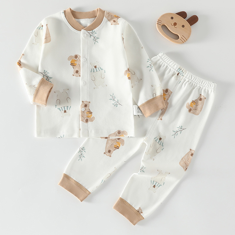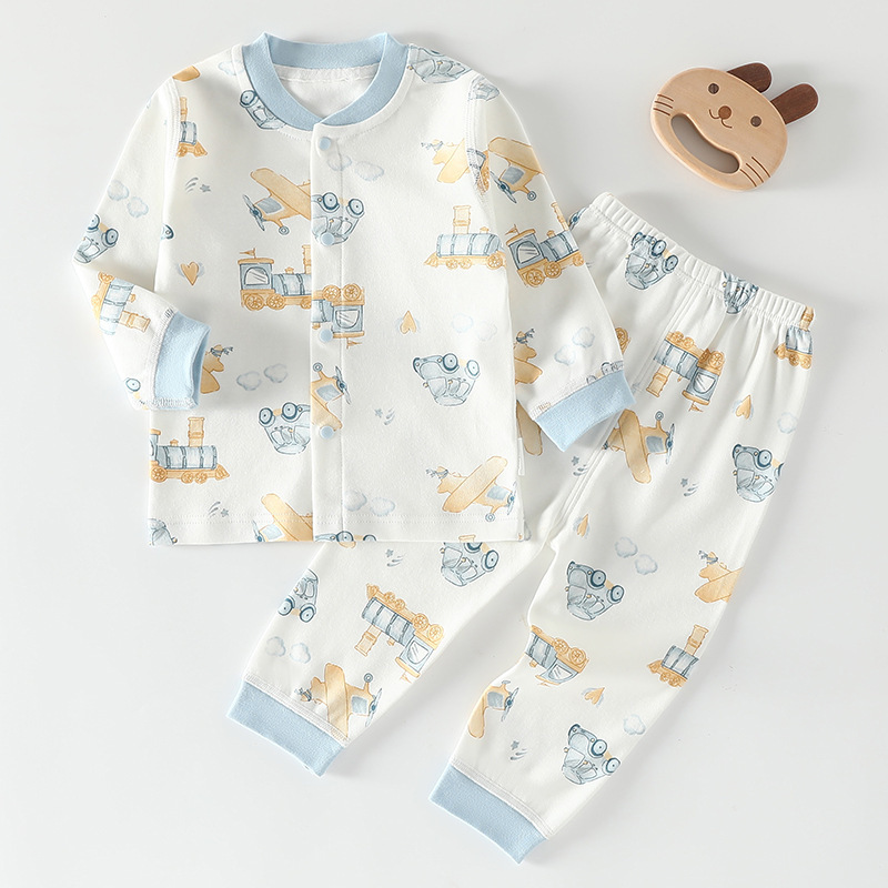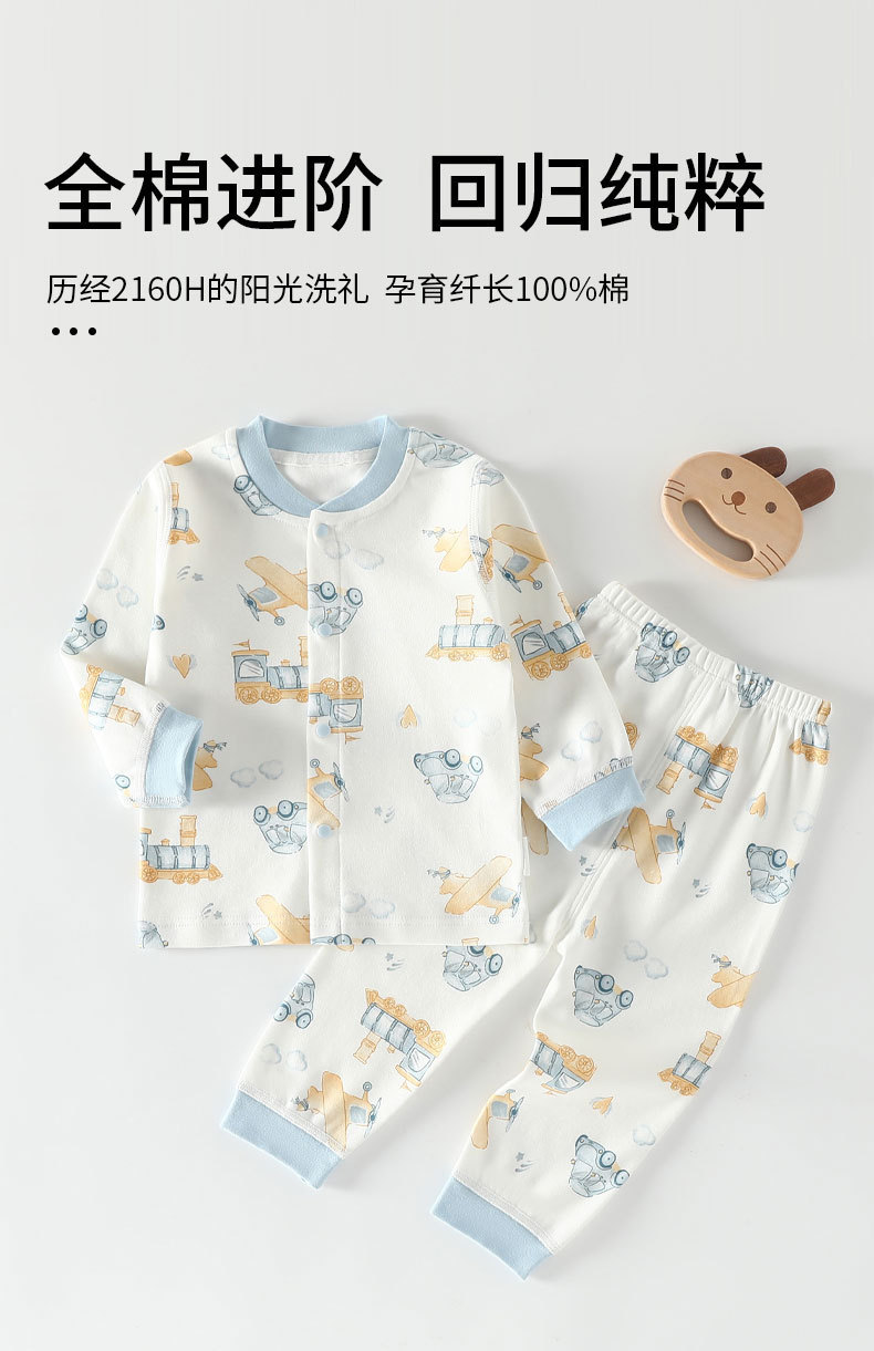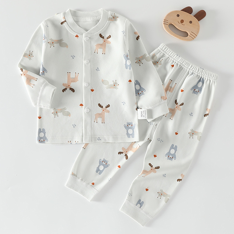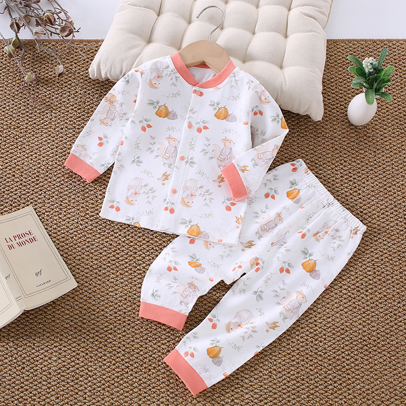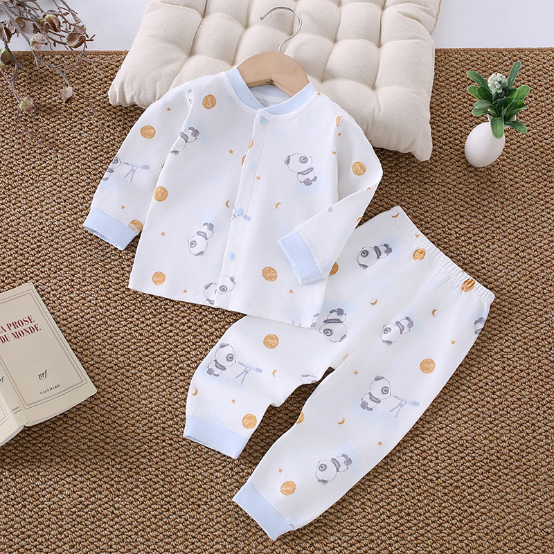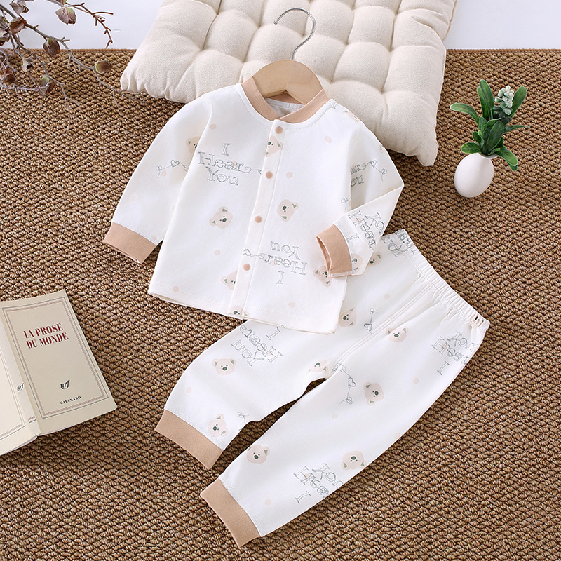 가을 겨울 아동 속옷 세트 A급 무봉제 아기 순면 세트 긴팔 앞뒤 여밈 아기 가을옷 가을바지 세트