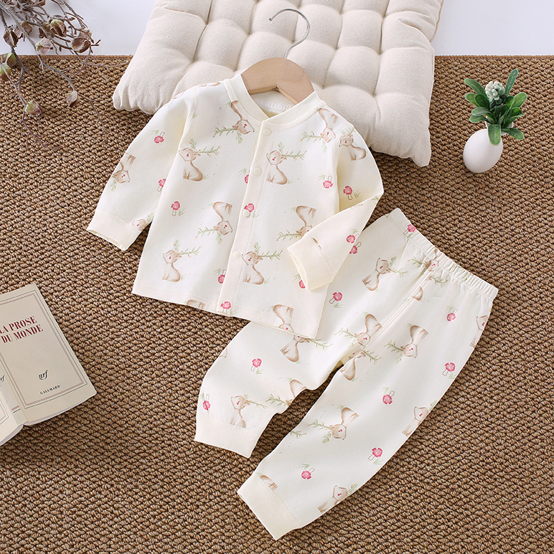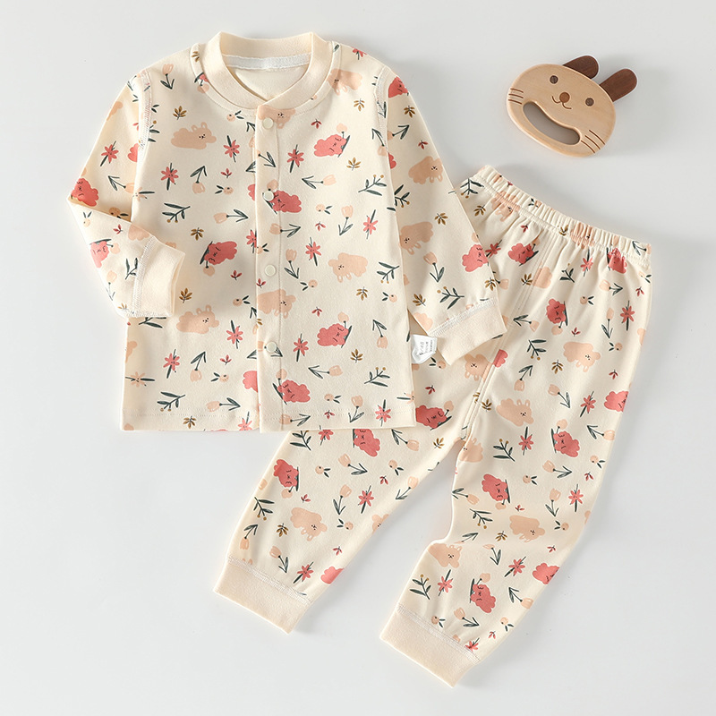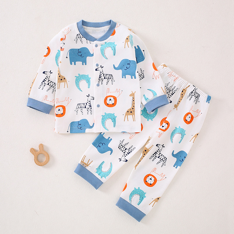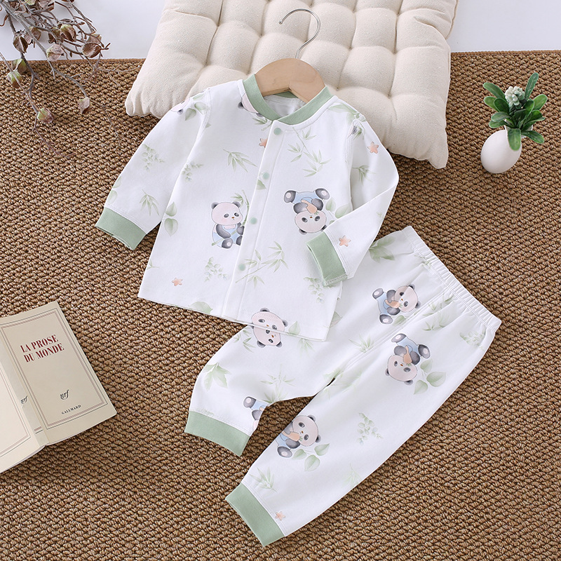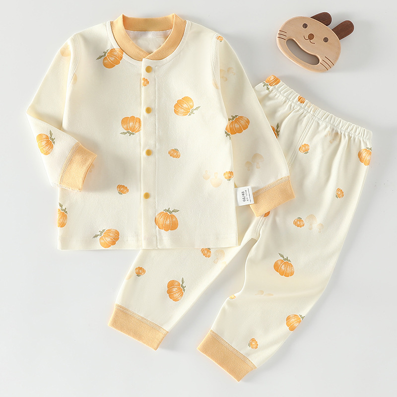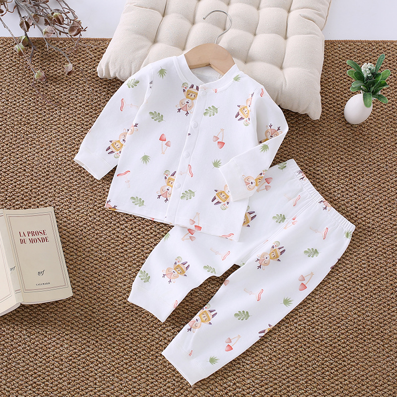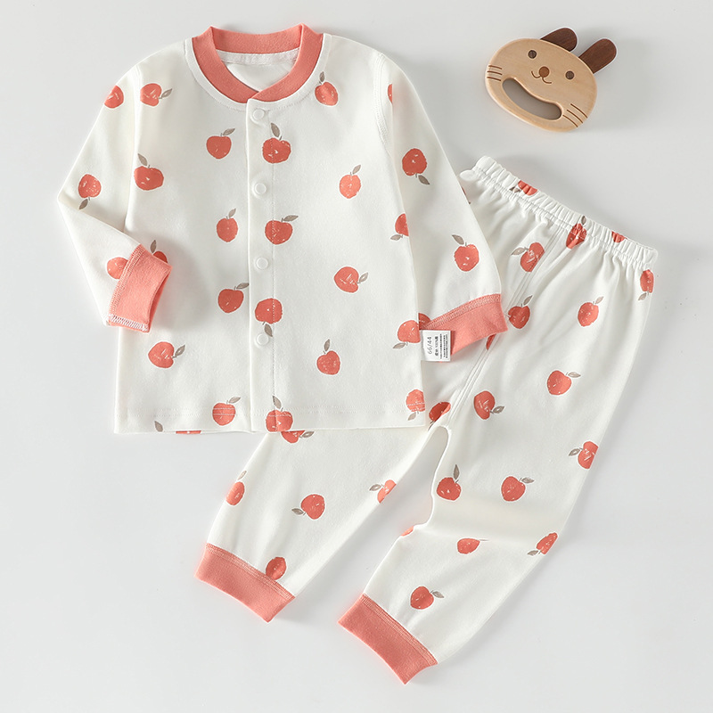 가을 겨울 아동 속옷 세트 A급 무봉제 아기 순면 세트 긴팔 앞뒤 여밈 아기 가을옷 가을바지 세트