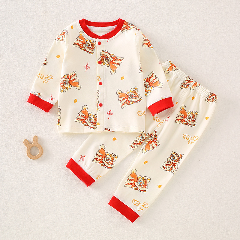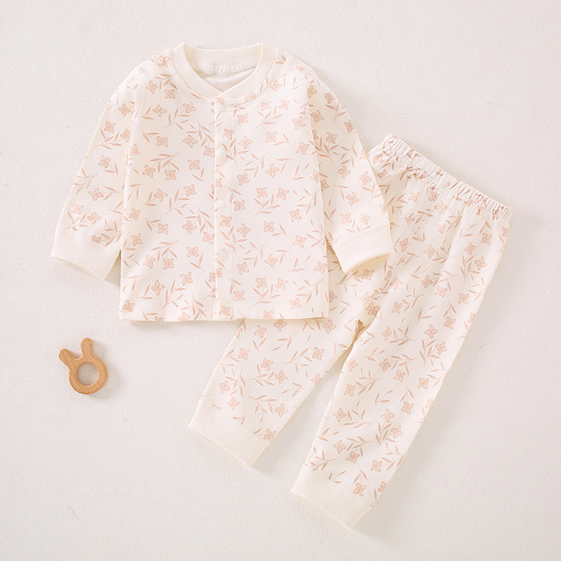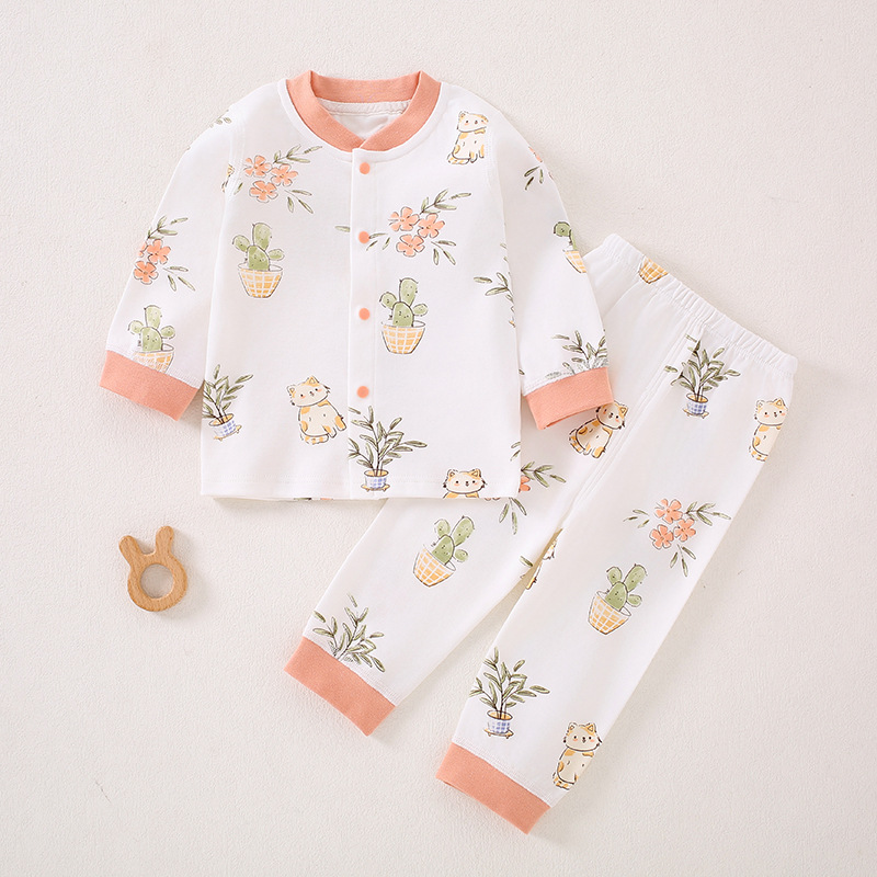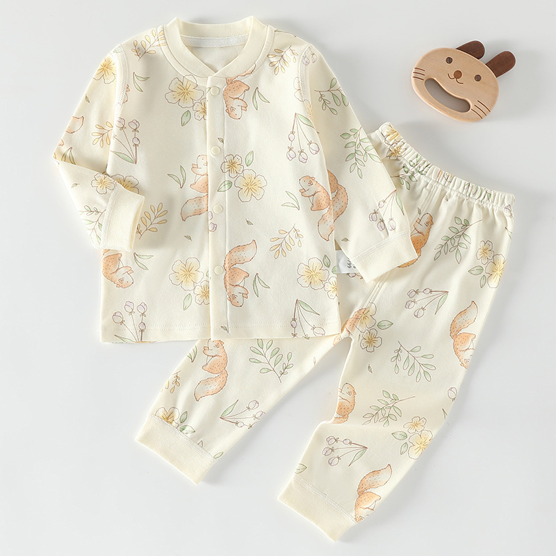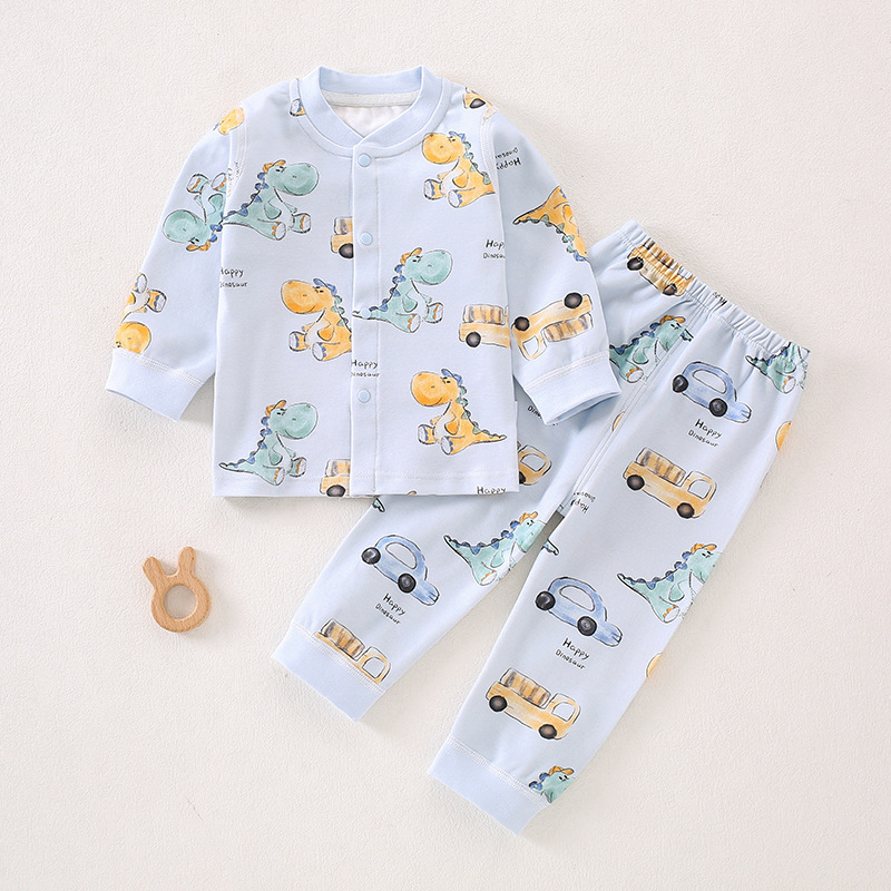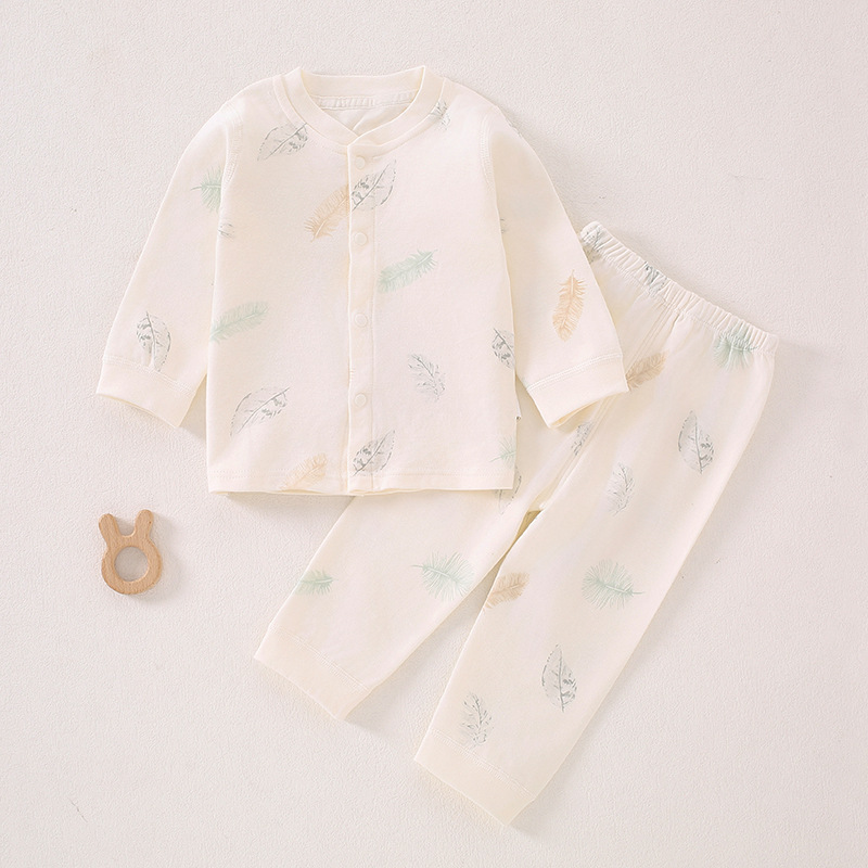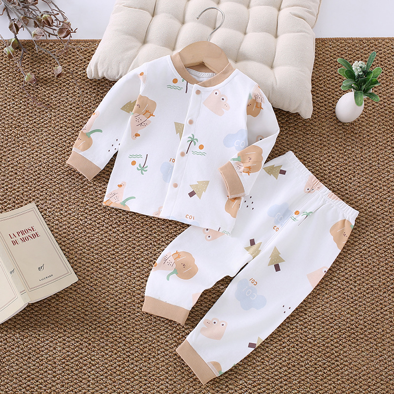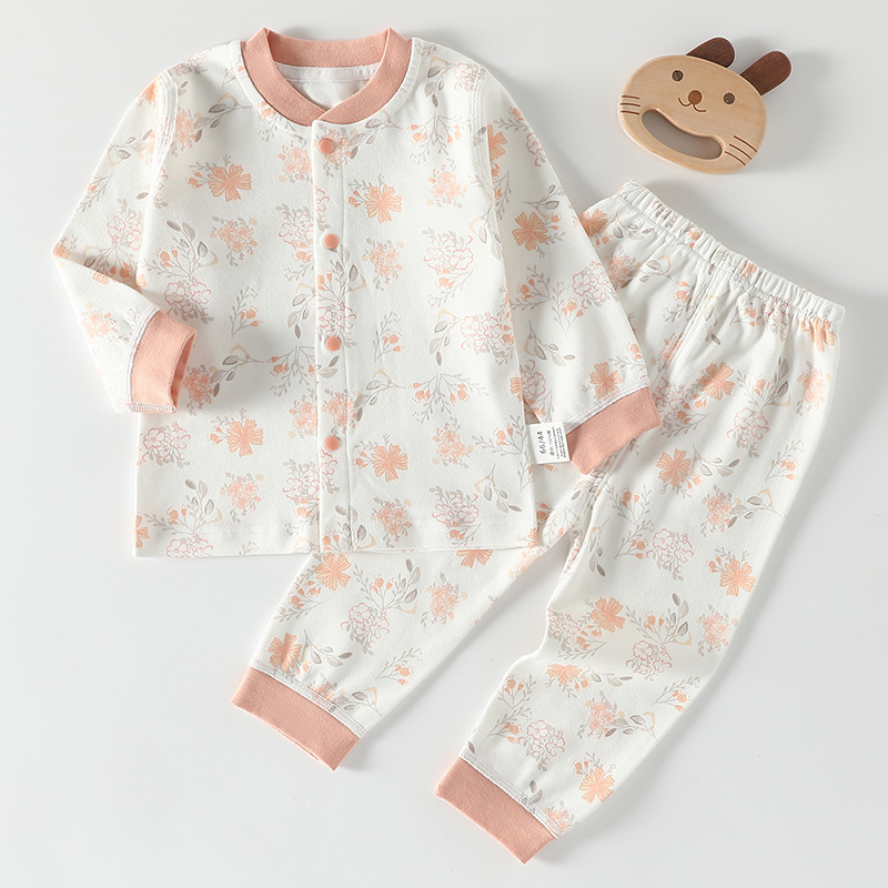 가을 겨울 아동 속옷 세트 A급 무봉제 아기 순면 세트 긴팔 앞뒤 여밈 아기 가을옷 가을바지 세트