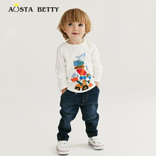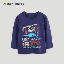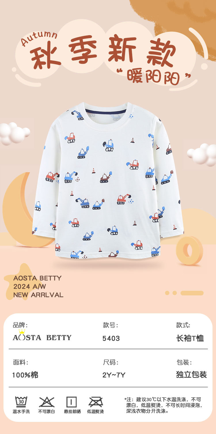 패션 굴삭기 인쇄 어린이 티셔츠 유럽과 미국 스타일의 소년 긴팔 티셔츠 가을 새로운면 아동베이스 셔츠스토어 가기