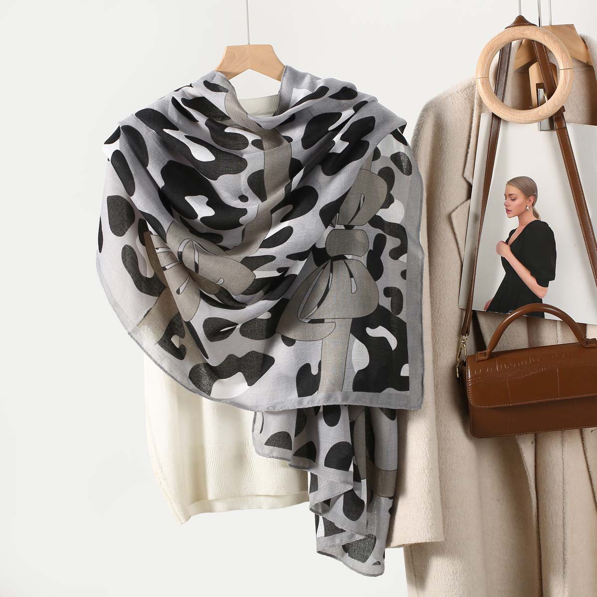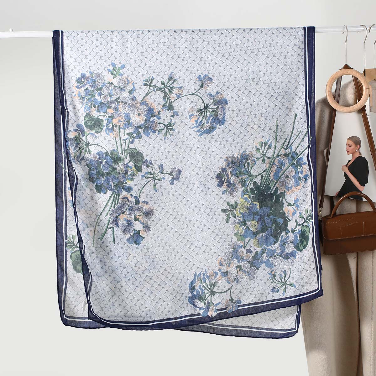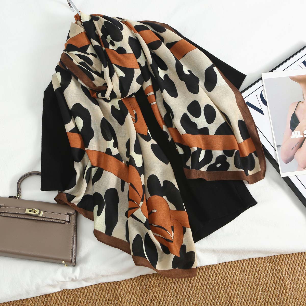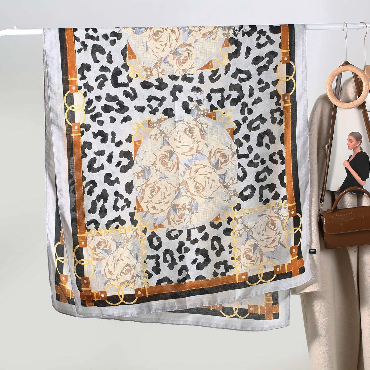 • 레트로 나뭇잎 꽃 롱 스카프 화이트