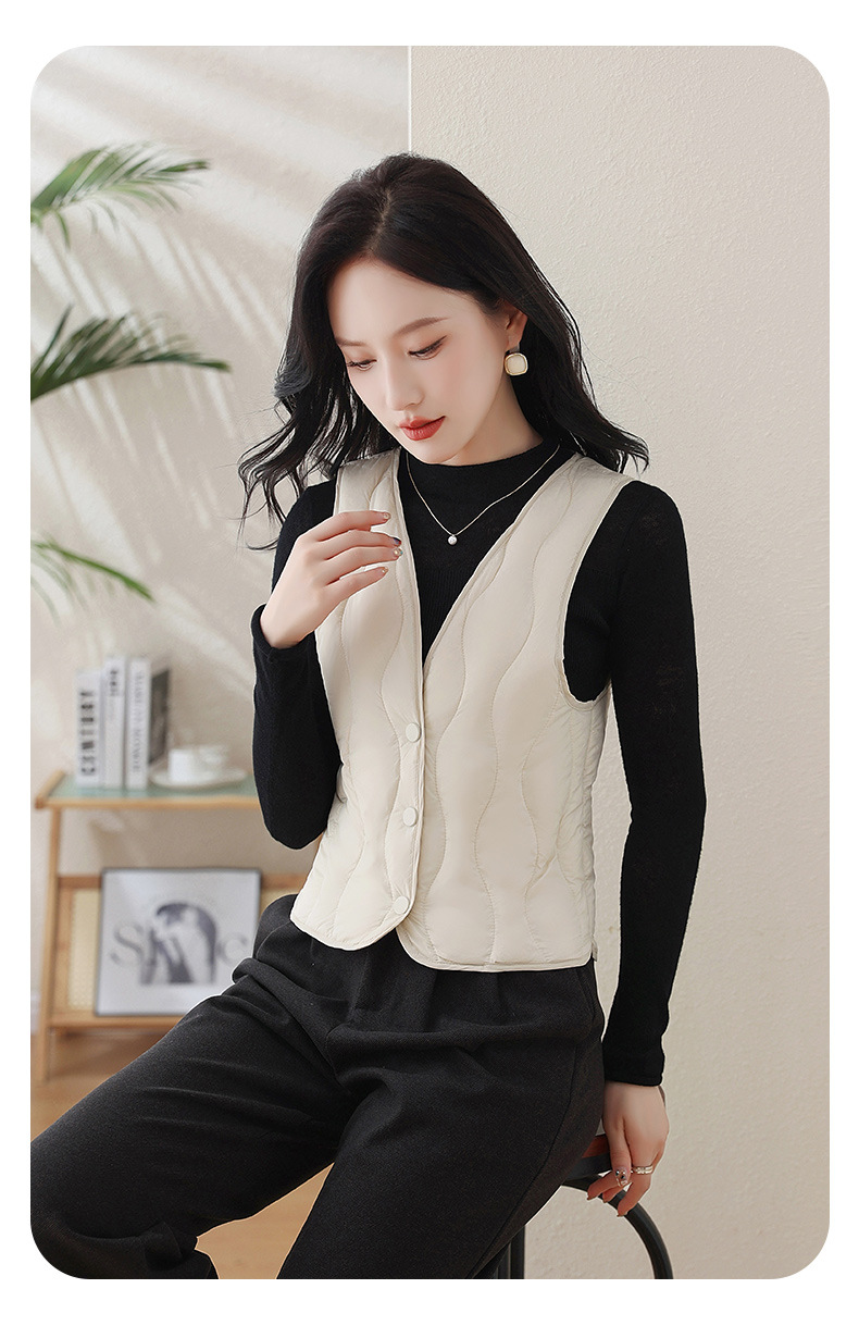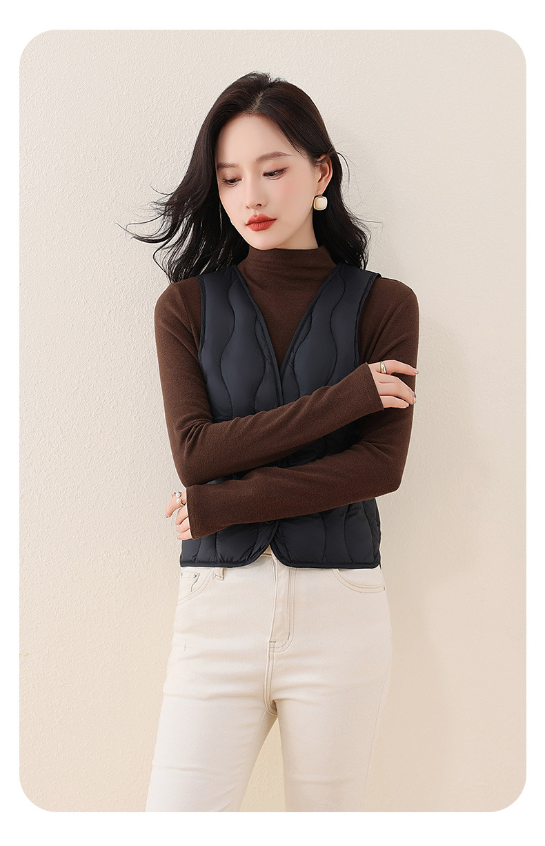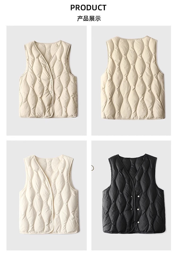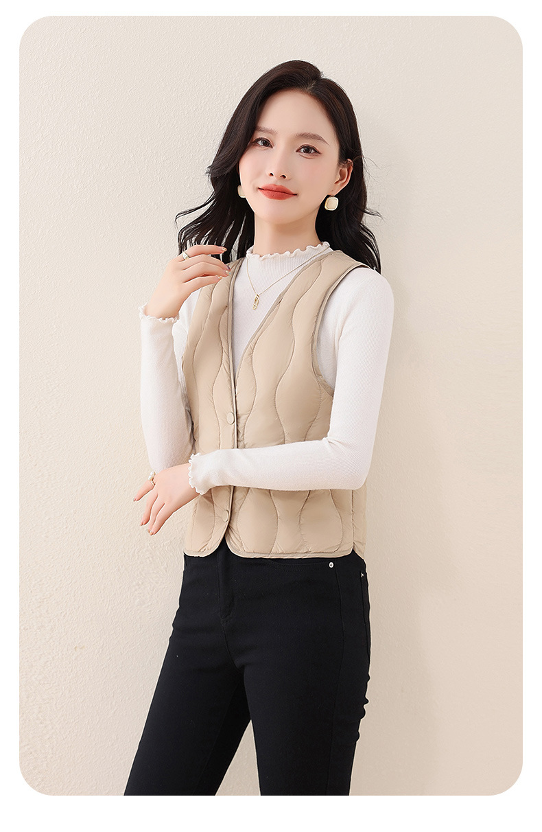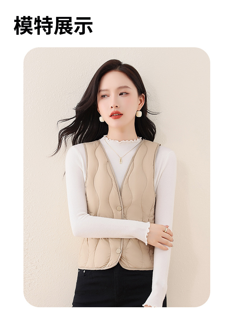 가을 겨울 여성용 깃털 벨벳 조끼, 가볍고 따뜻한 깃털 벨벳 안감, 슬림핏 짧은 V넥 조끼스토어 가기