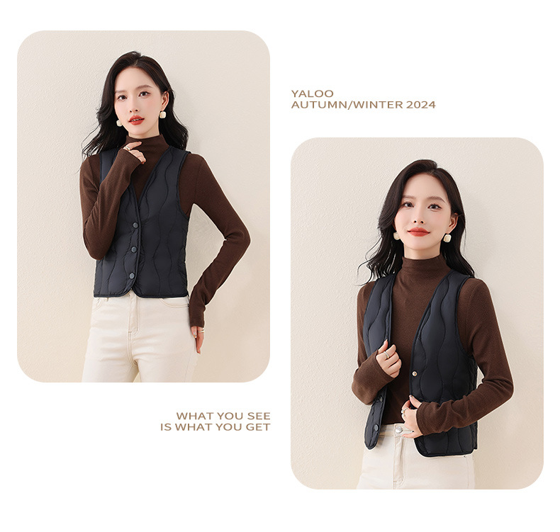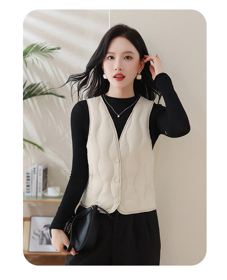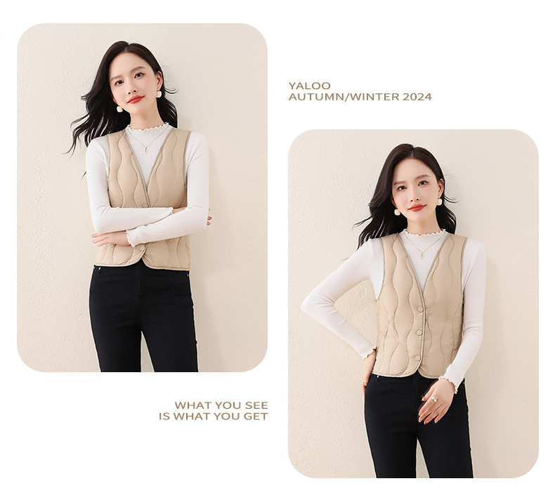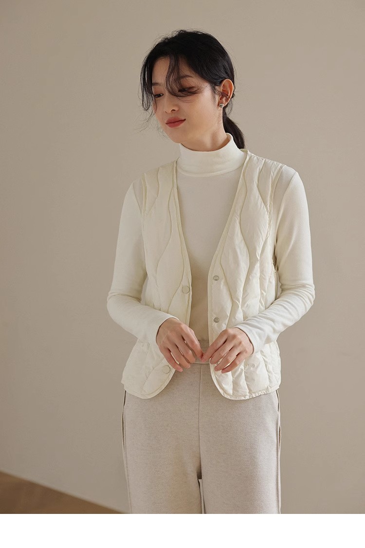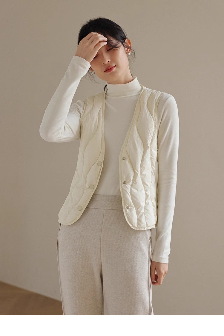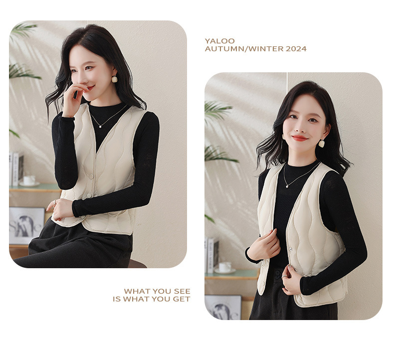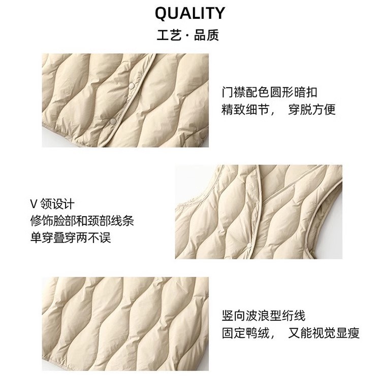 가을 겨울 여성용 깃털 벨벳 조끼, 가볍고 따뜻한 깃털 벨벳 안감, 슬림핏 짧은 V넥 조끼스토어 가기