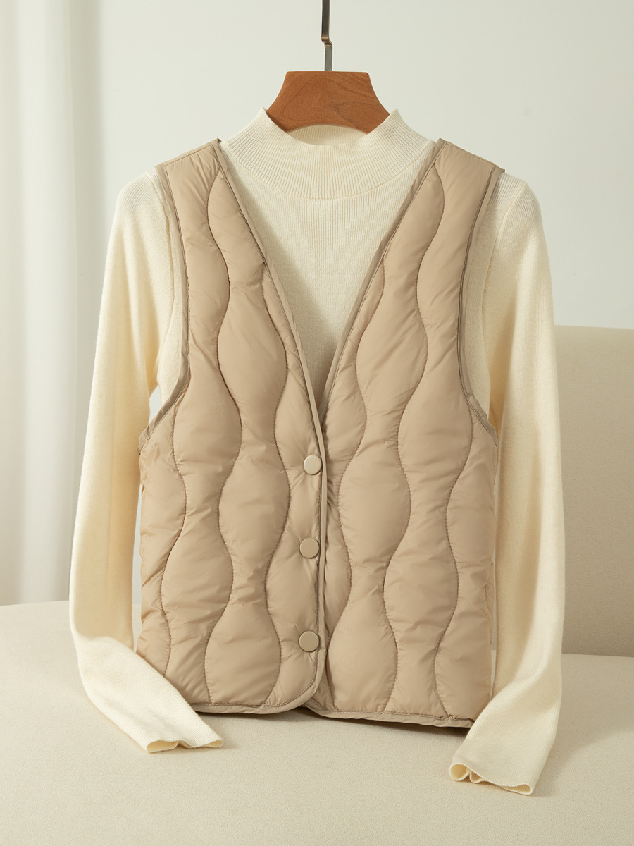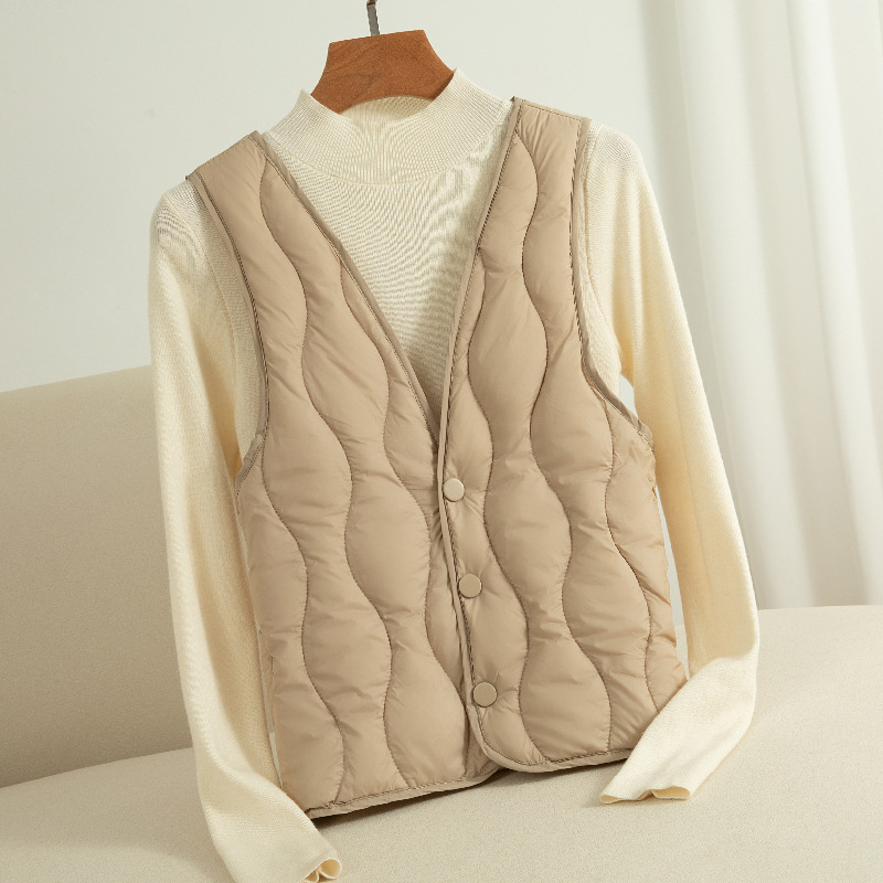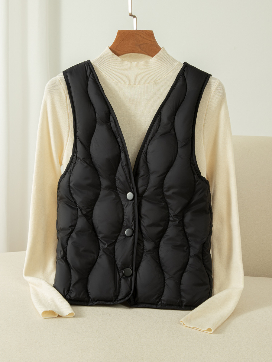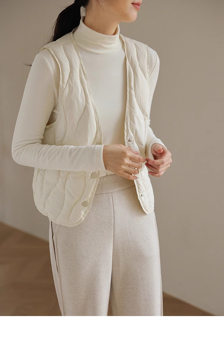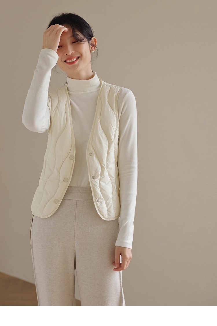 가을 겨울 여성용 깃털 벨벳 조끼, 가볍고 따뜻한 깃털 벨벳 안감, 슬림핏 짧은 V넥 조끼스토어 가기
