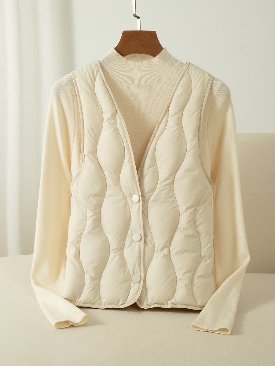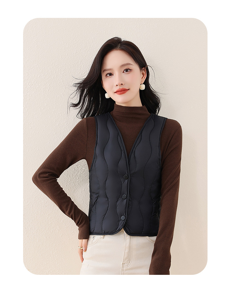 가을 겨울 여성용 깃털 벨벳 조끼, 가볍고 따뜻한 깃털 벨벳 안감, 슬림핏 짧은 V넥 조끼