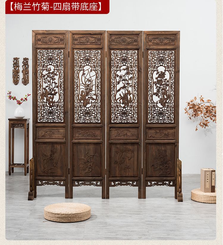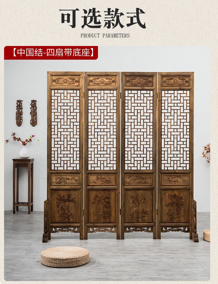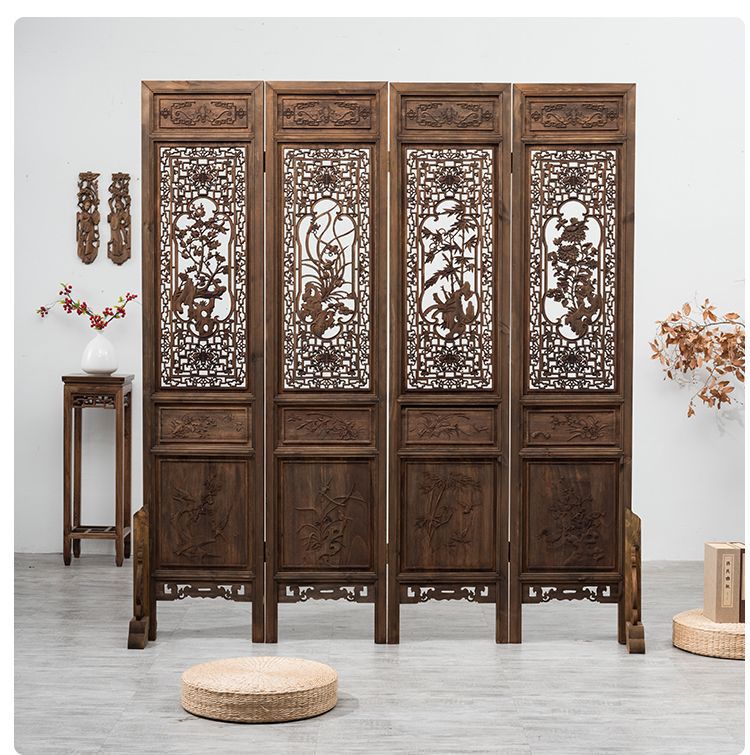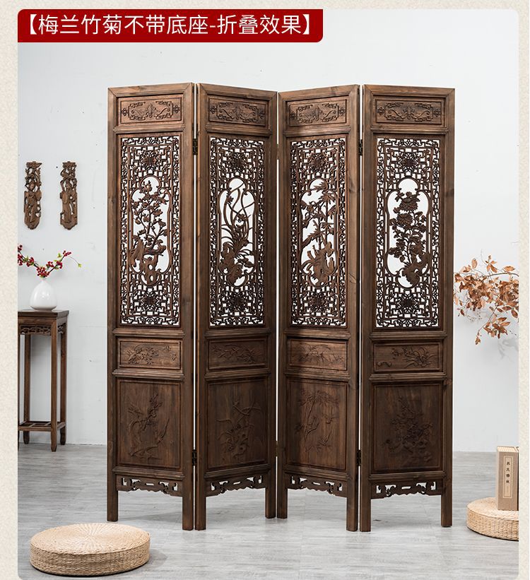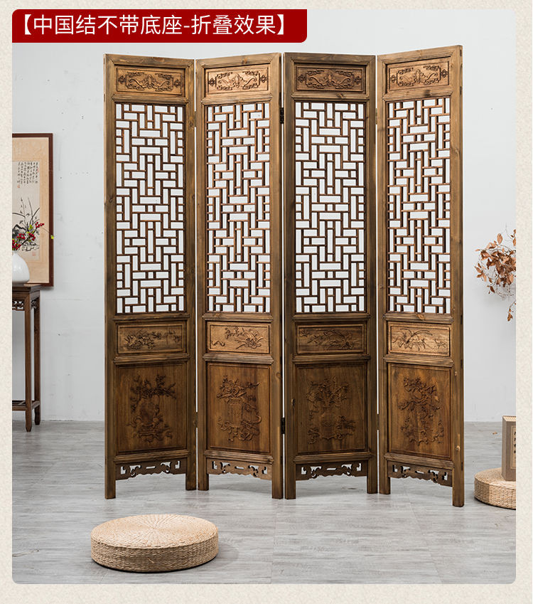 스크린 레트로 오래 된 접이식 스크린 조각 중국 스타일 입구 거실 새로운 중국 스타일 솔리드 우드 골동품 모바일 꽃 격자