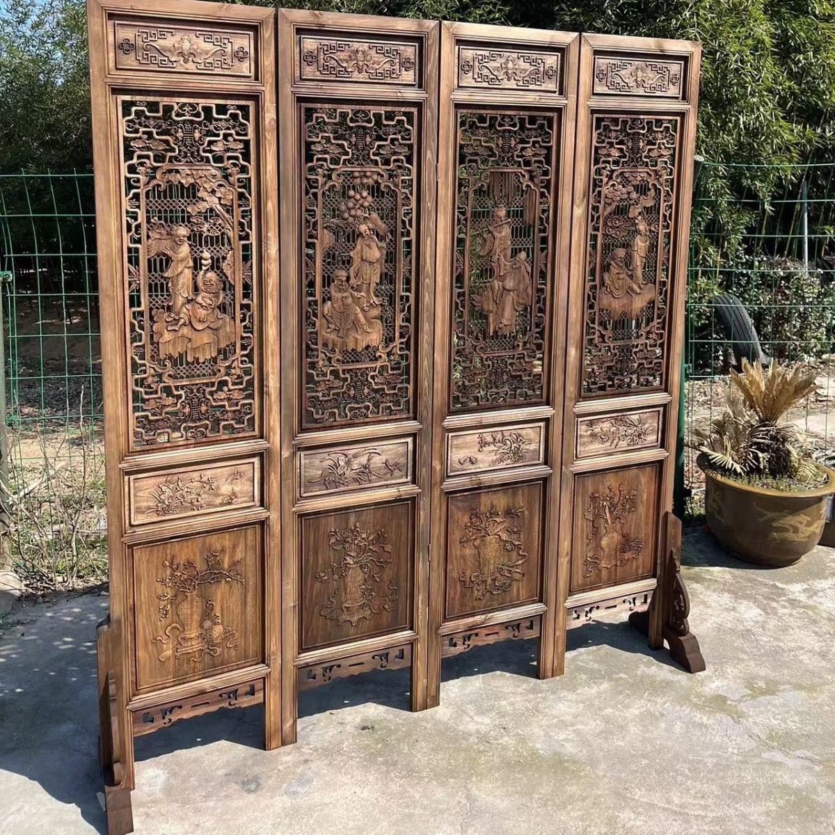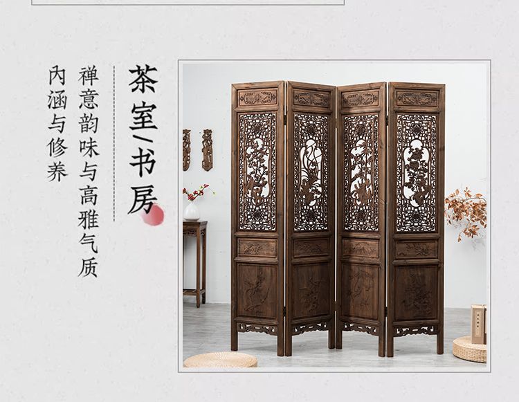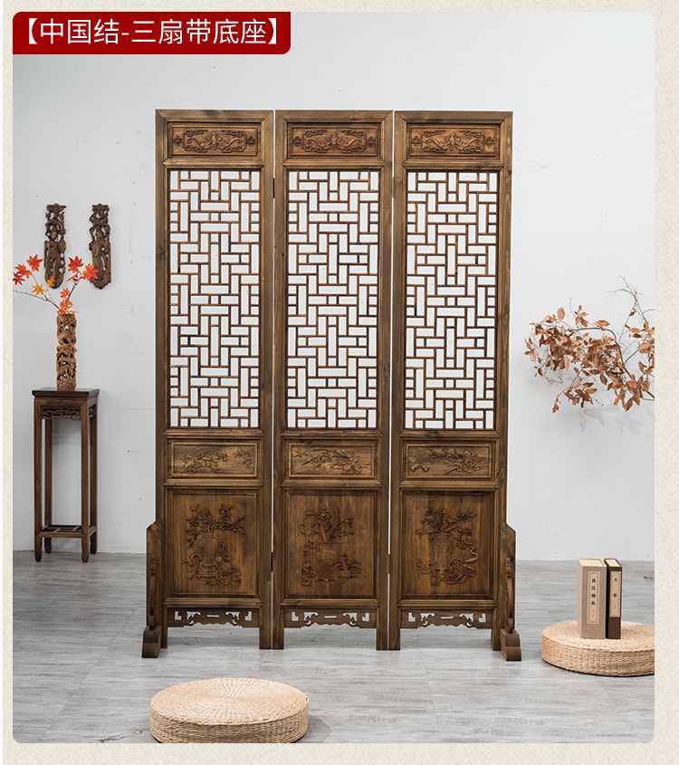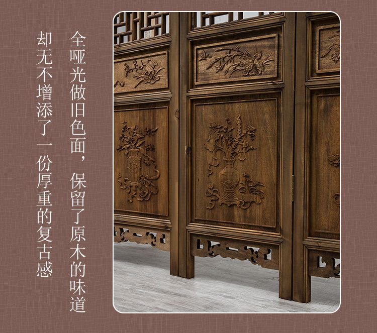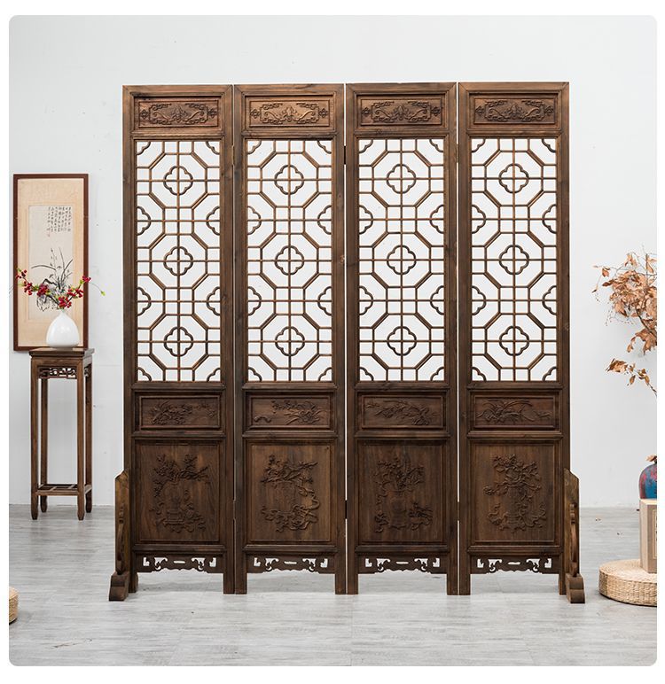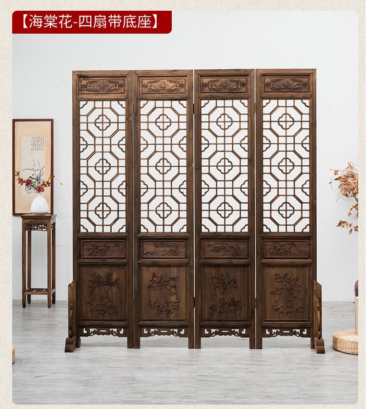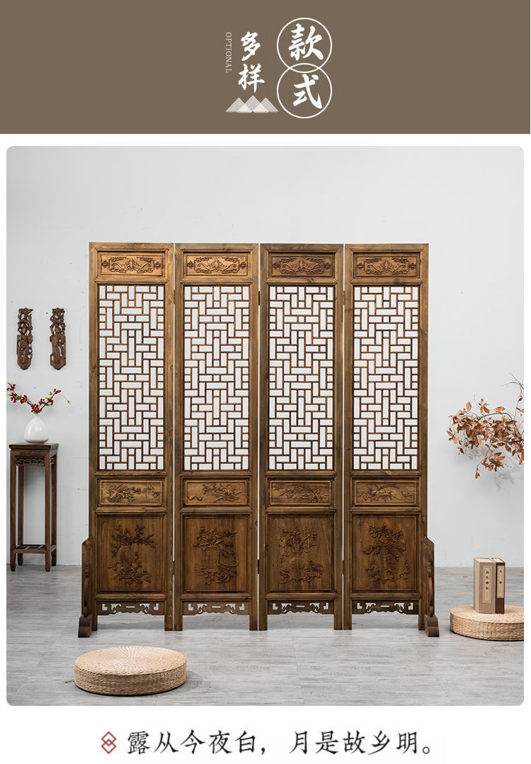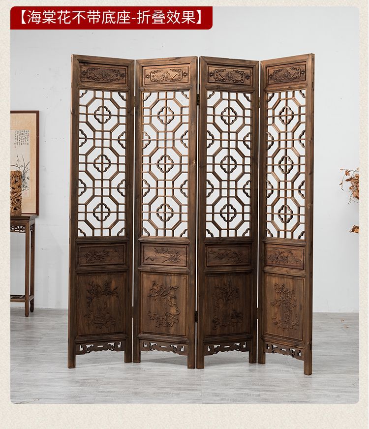스크린 레트로 오래 된 접이식 스크린 조각 중국 스타일 입구 거실 새로운 중국 스타일 솔리드 우드 골동품 모바일 꽃 격자스토어 가기