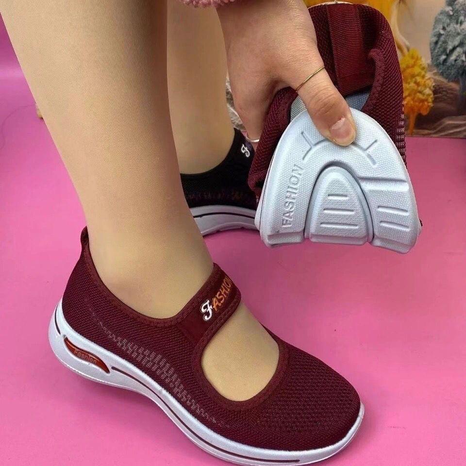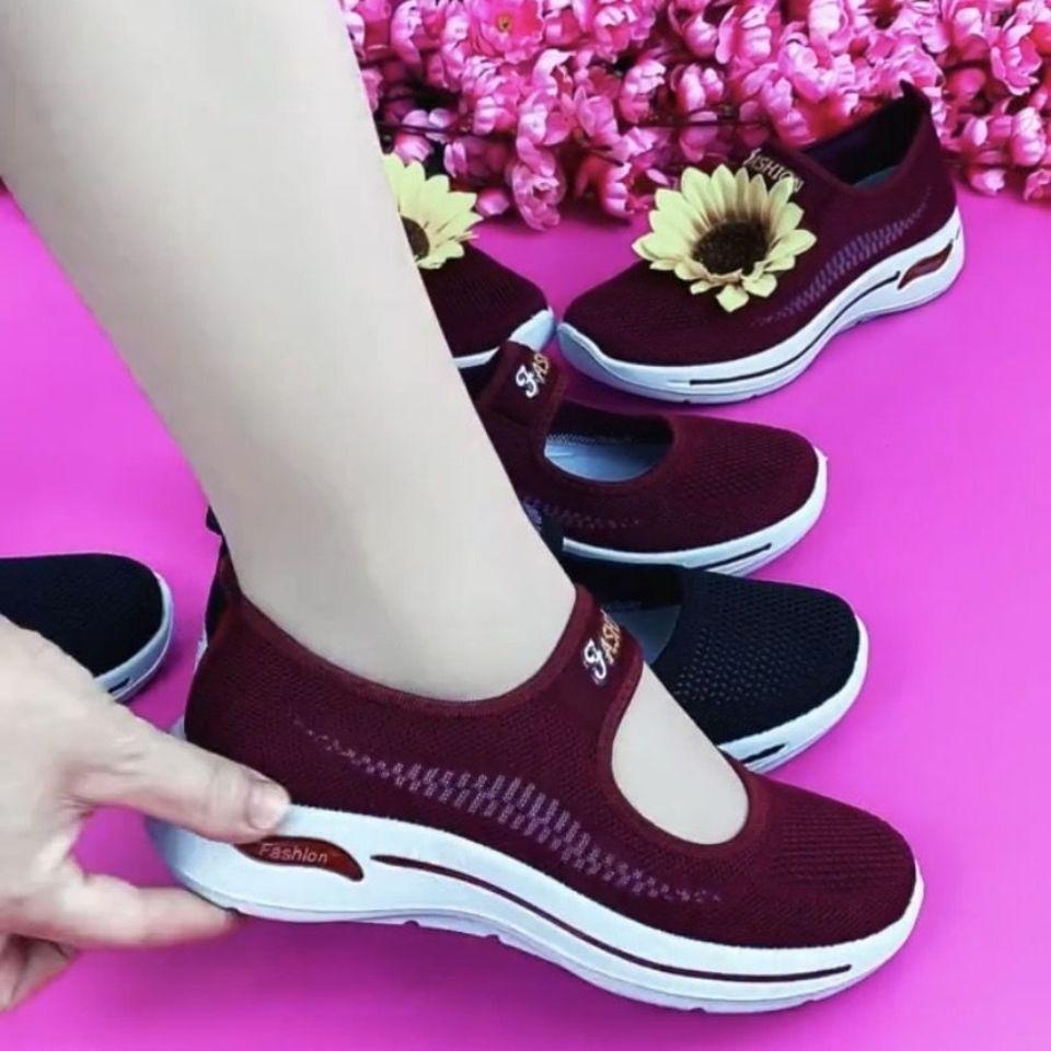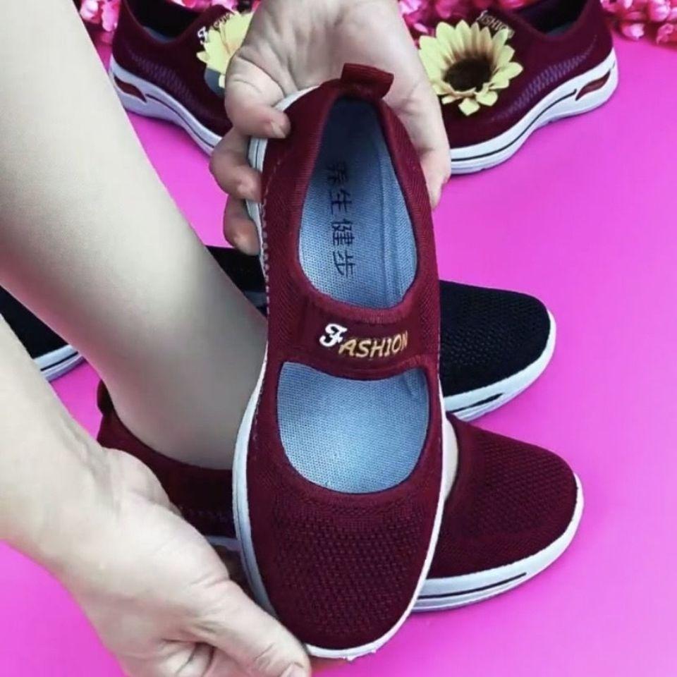 오래 된 베이징 천 신발 여성의 어머니 신발 통기성 미끄럼 방지 소프트 솔 편안한 플라이 짠 게으른 신발 중년 및 노인 걷기 신발스토어 가기