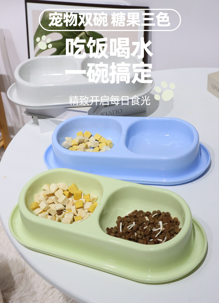 Leyoupai Double-Mouth Cat Bowl 안티 노크 및 누출 방지 고양이 음주 더블 보울 대용량 비스듬한 애완 동물 그릇 자궁 경부 척추 보호스토어 가기