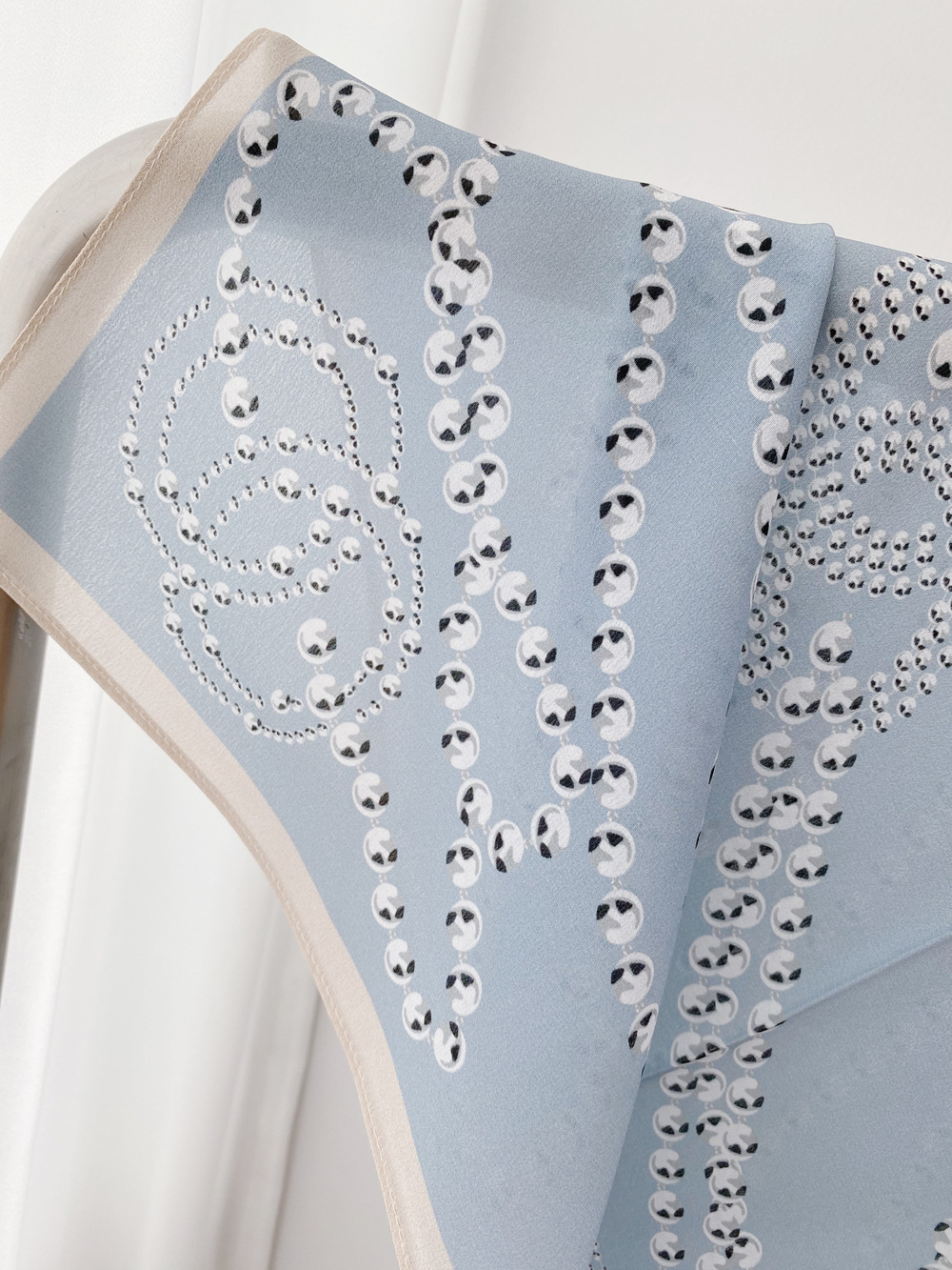 2024 얇은 실크 스카프 크레이프 드 친 스퀘어 스카프 여름 통기성 목 보호 작은 스카프 68*68 블루 비드 체인