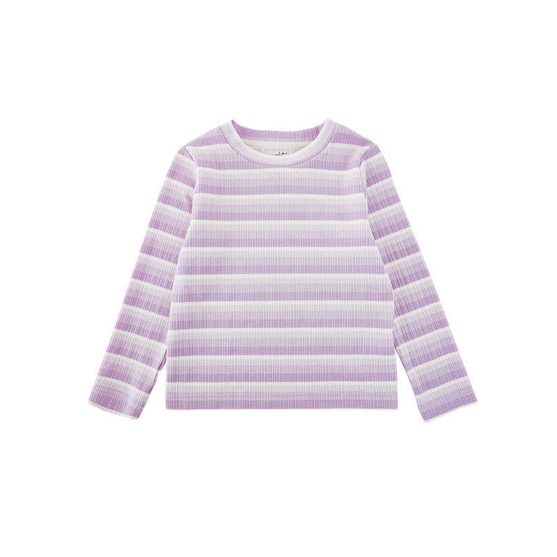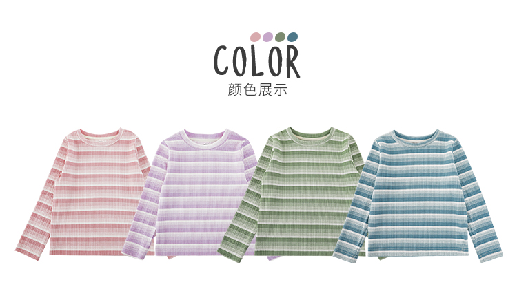 우리부이 여아 그라데이션 스트라이프 이너웨어 2025 가을 아동 캔디 컬러 슬림핏 라운드넥 티셔츠 트렌디