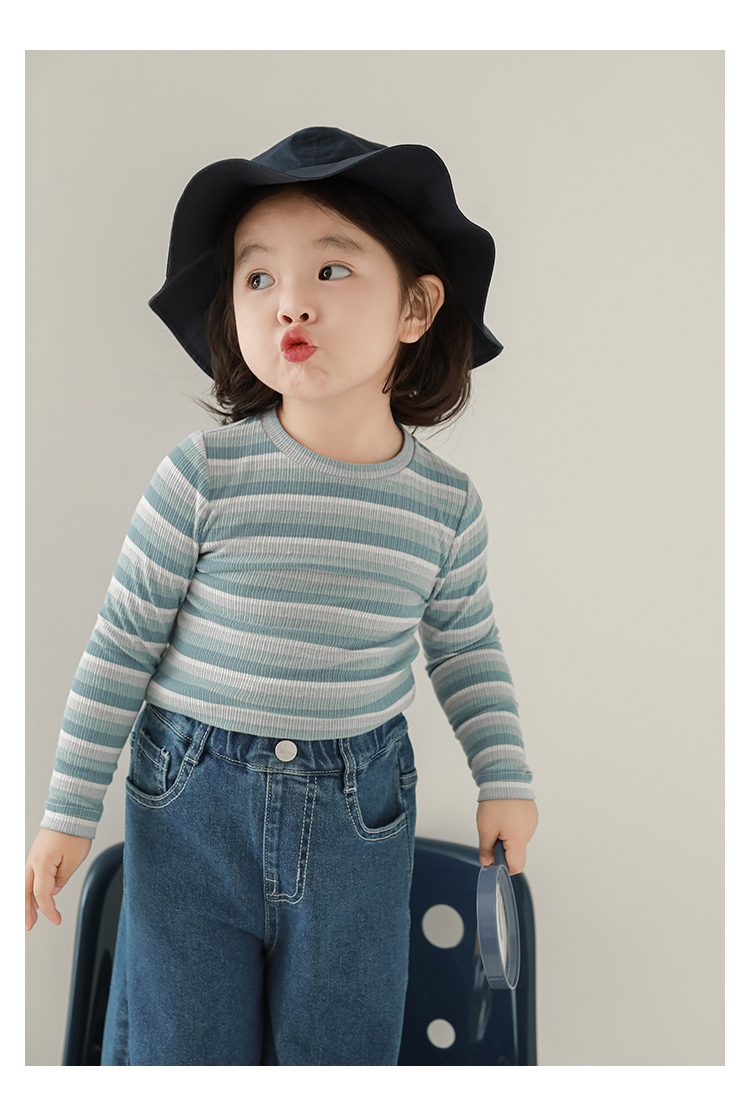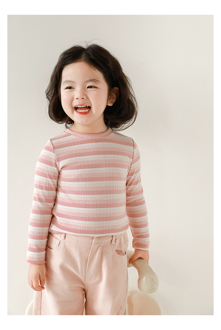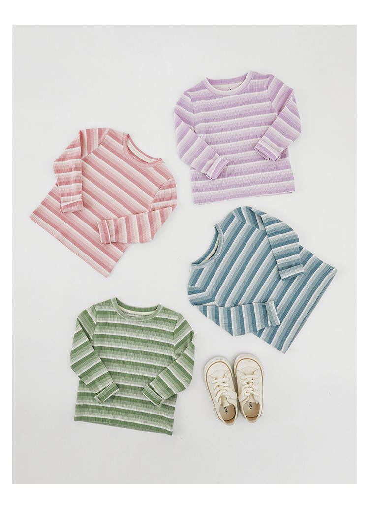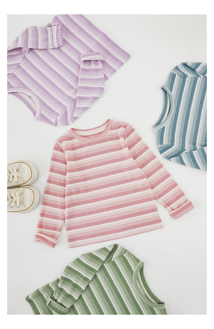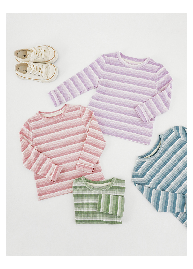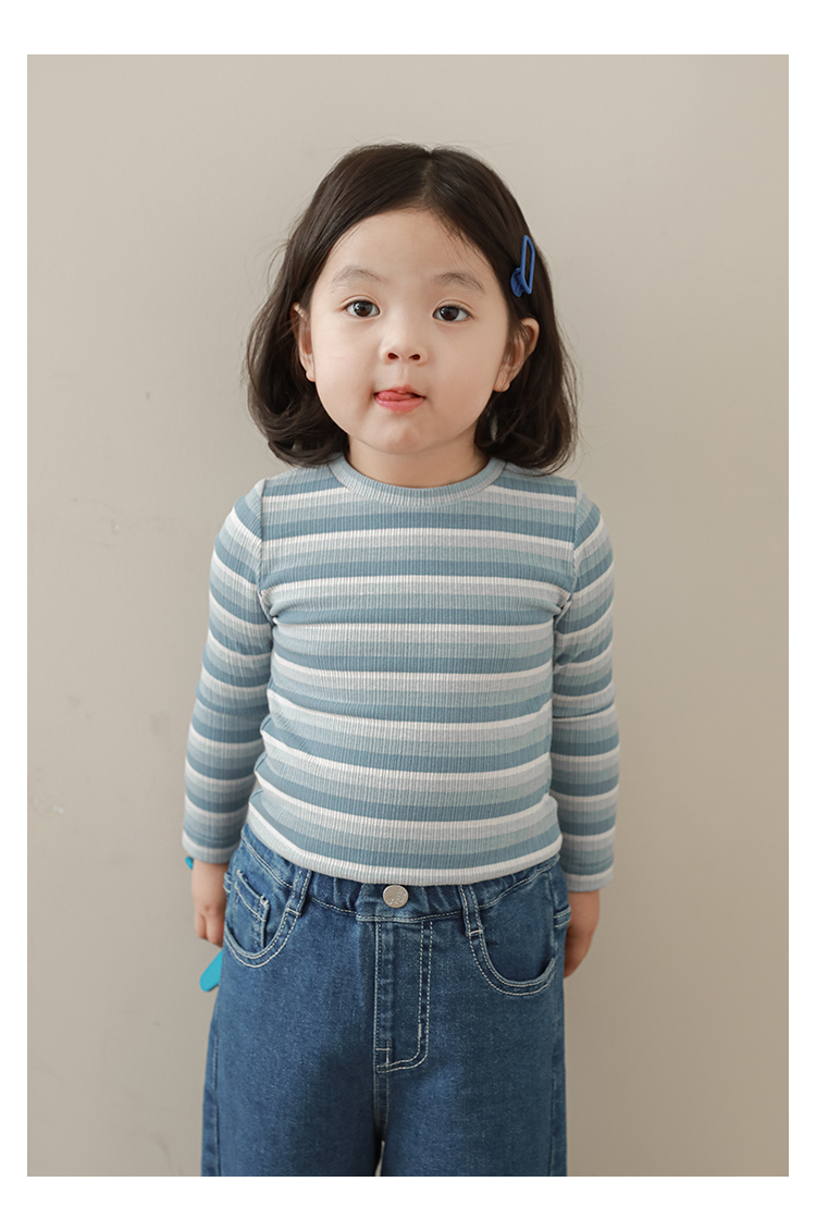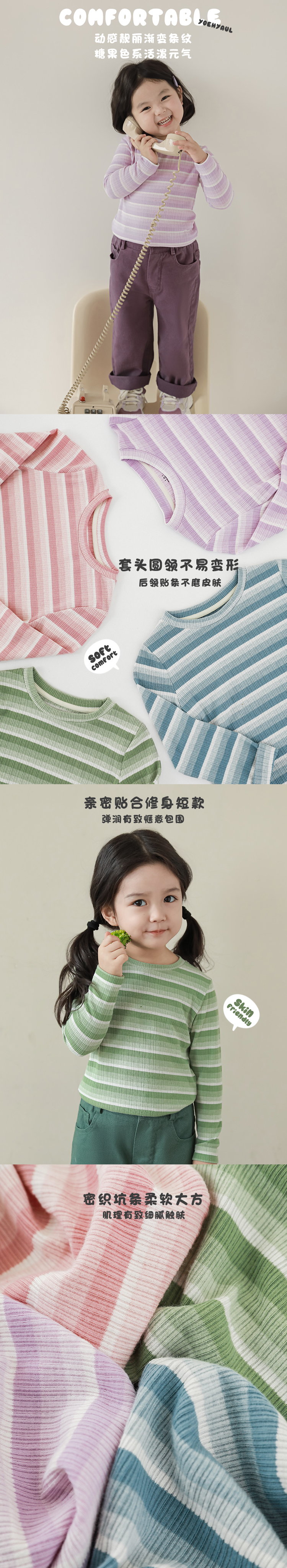 우리부이 여아 그라데이션 스트라이프 이너웨어 2025 가을 아동 캔디 컬러 슬림핏 라운드넥 티셔츠 트렌디스토어 가기