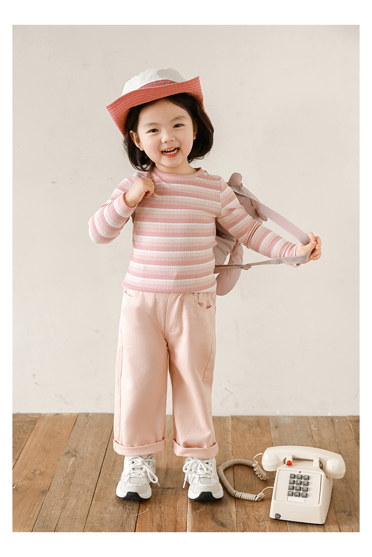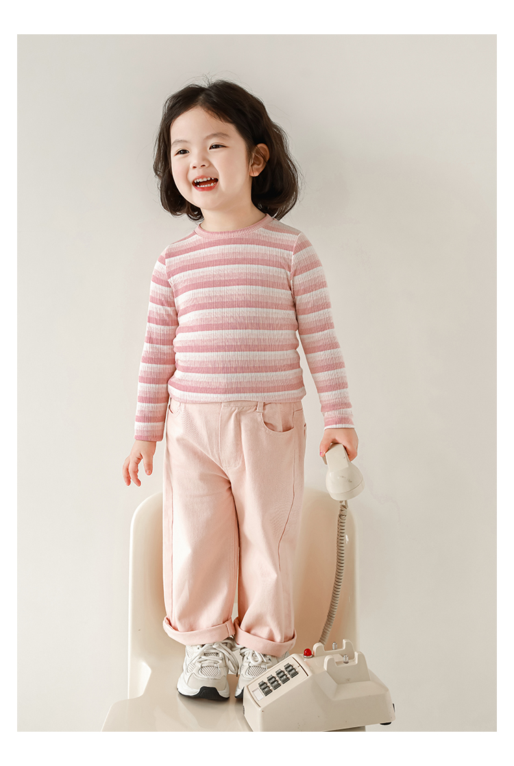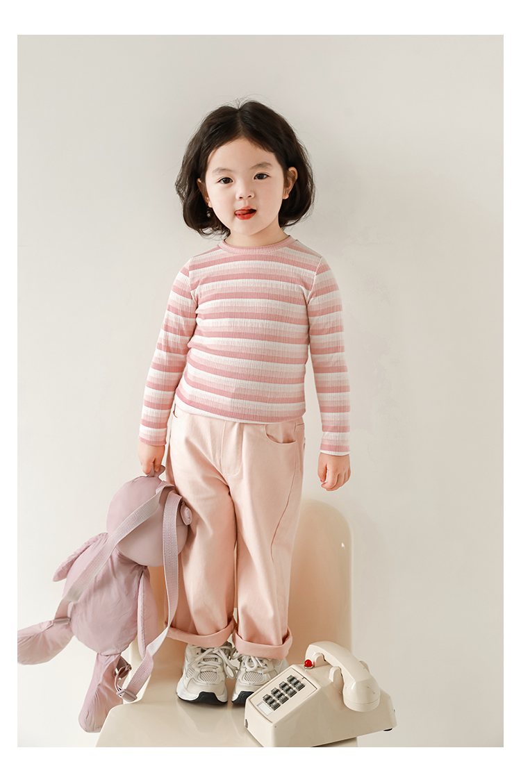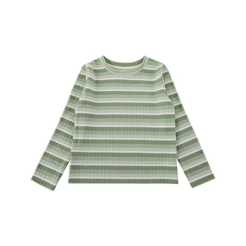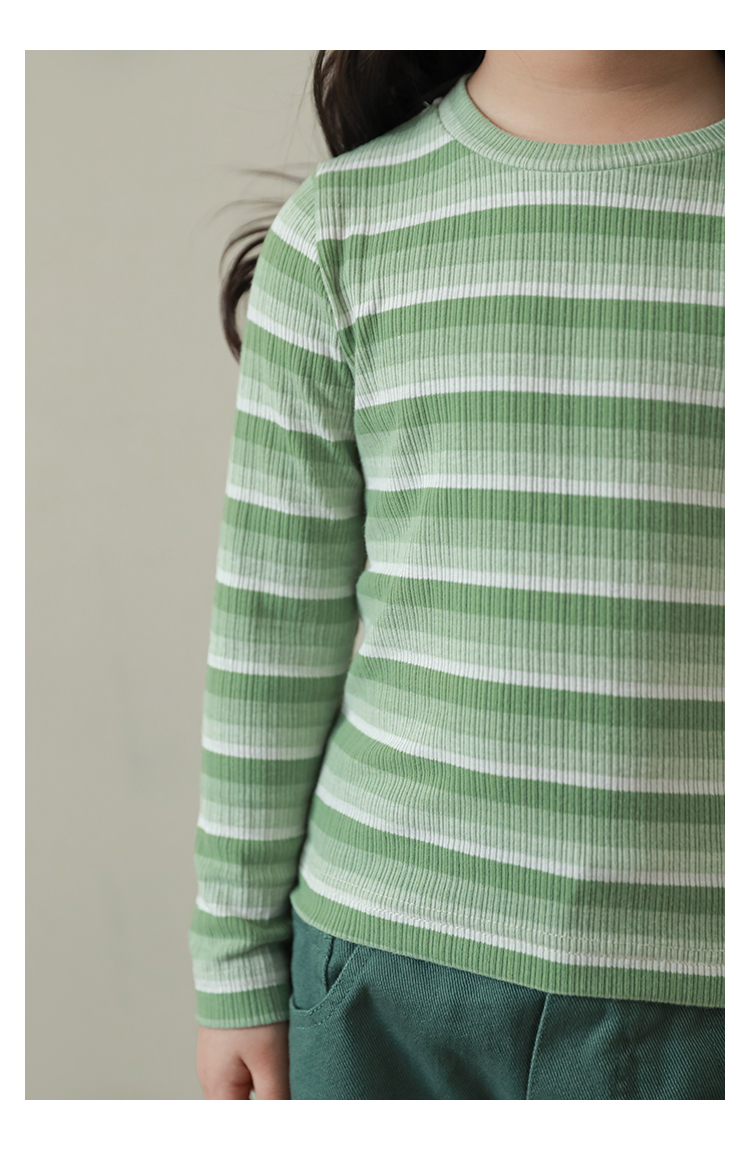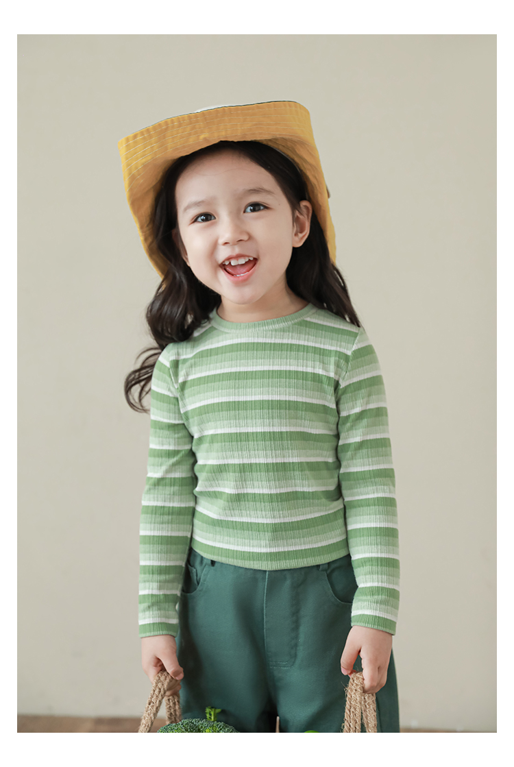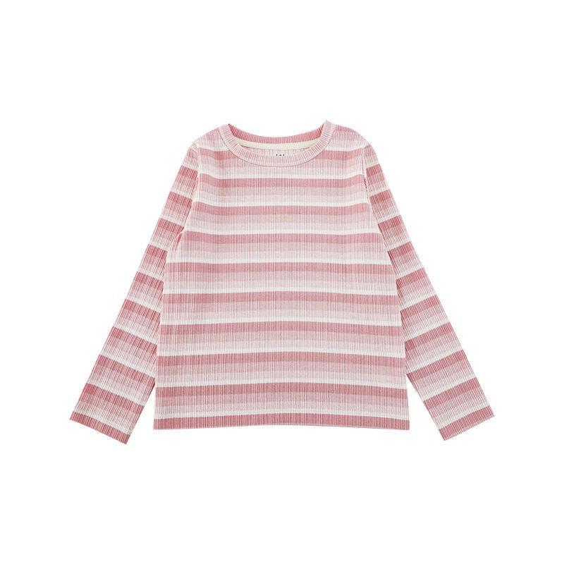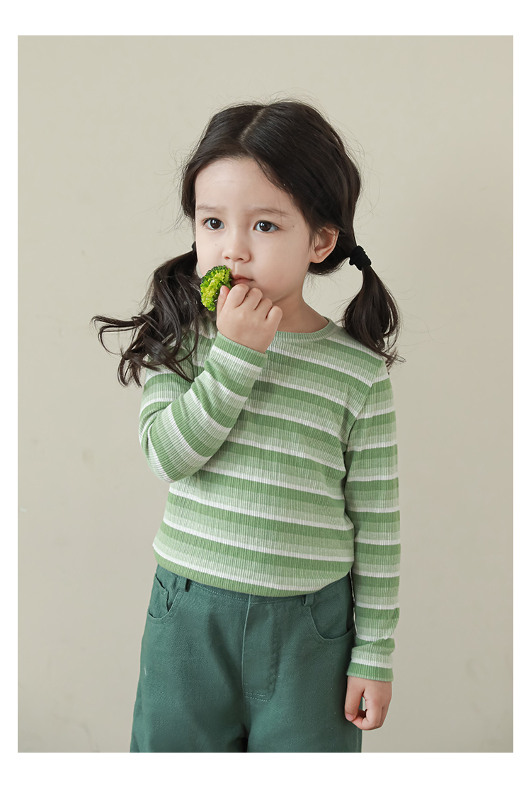 우리부이 여아 그라데이션 스트라이프 이너웨어 2025 가을 아동 캔디 컬러 슬림핏 라운드넥 티셔츠 트렌디스토어 가기